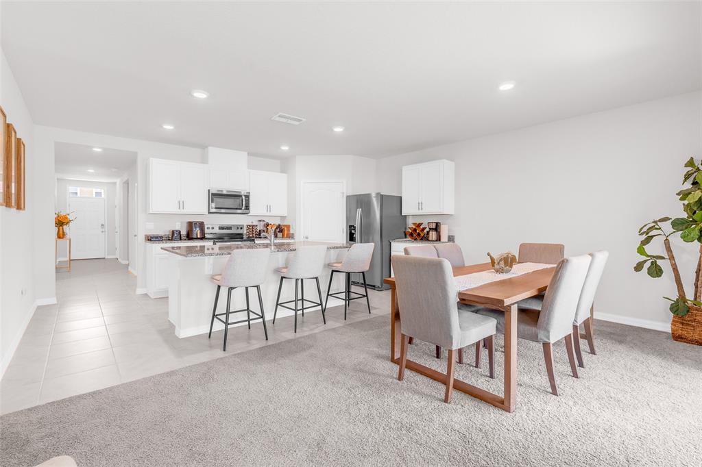 The kitchen is the heart of the home with stainless steel appliances, a large island, and plenty of counter space, all flowing seamlessly into the living and dining areas. The primary suite offers a private retreat with double vanity, walk-in closet, and ensuite bath. Additional bedrooms are well positioned for family or guests.