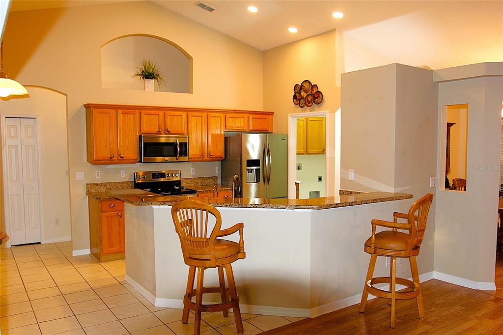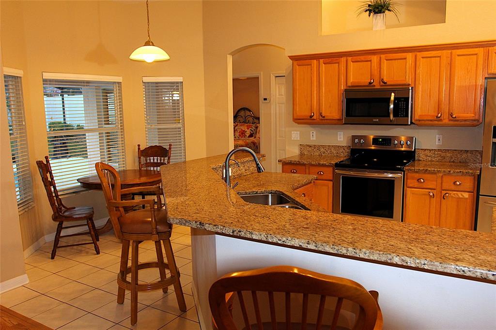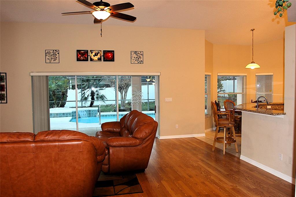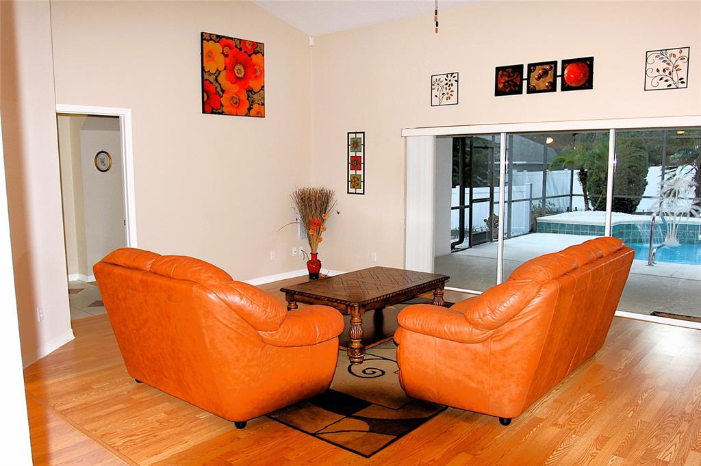 A rare gem of a home… talk about pride of ownership… let me introduce you to this beautiful four bedroom, two bathroom, two car garage home; a Florida pool home featuring a split bedroom plan (the fourth bedroom with French doors would make a great home office), solid wood cabinetry, gorgeous granite counters, and gleaming wood floors… all existing appliances and furnishings can convey. The backyard is privacy fenced. The spacious screen enclosed patio and sparkling pool area is perfect for year round barbecues, swimming, working-out, and just relaxing and loving the Florida sunshine. Welcome To Paradise! The enchanting oak tree canopy’s make the Lakes of Sawmill neighborhood very special; boasting desirable character and charm as you enter the neighborhood and approach your most lovely ‘newly acquired’ home. The Lakes of Sawmill is a neighborhood of well-kept homes and beautiful landscapes… lots of peace and quiet with great walk-ability around the neighborhood’s Carlson Circle. Homes in the Lakes of Sawmill rarely come available for sale. A few of the upgrades this home offers: a new roof 2025, re-screened pool enclosure 2025, new pool pump motor 2025, new exterior paint 2024, granite kitchen counters, an abundance of solid wood cabinetry, pantry closet, HVAC air purifier, full-house water softener, reverse osmosis at kitchen faucet, yard has an irrigation system with timer. This home is ready for it’s next loving owner.