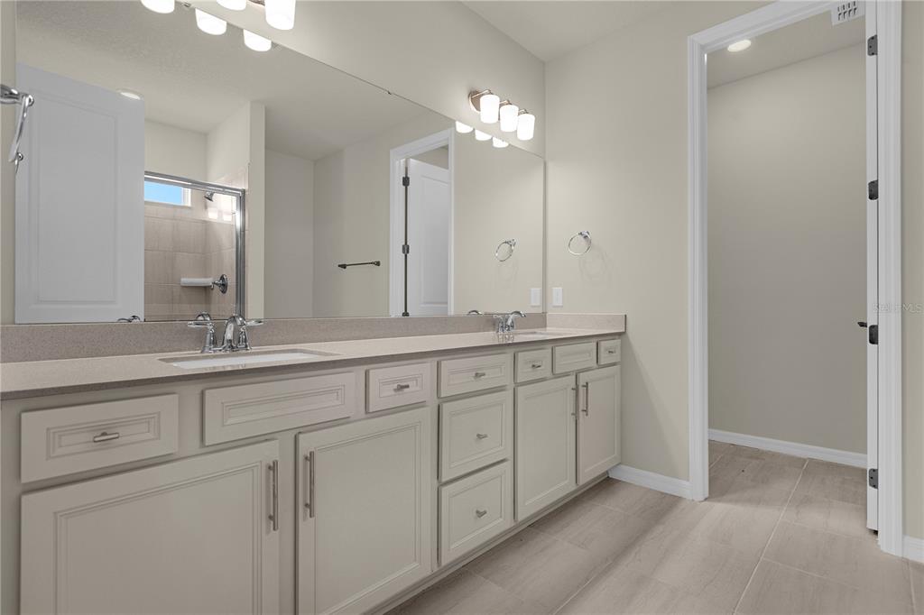 Upstairs, the primary owner’s suite offers a spacious walk-in closet, dual vanity sinks, and a spa-style en suite bathroom with a walk-in shower. The second floor also includes a spacious loft, three additional bedrooms, two bathrooms, and a conveniently located laundry room.