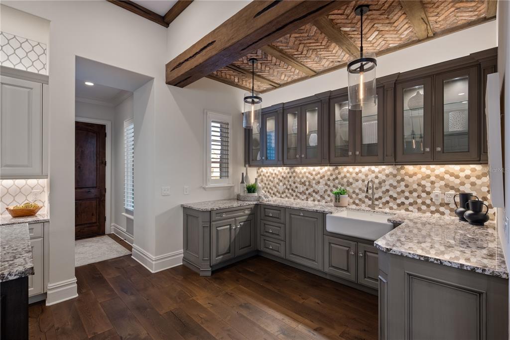 the line appliances. A beautifully designed butler’s pantry enhances the space,