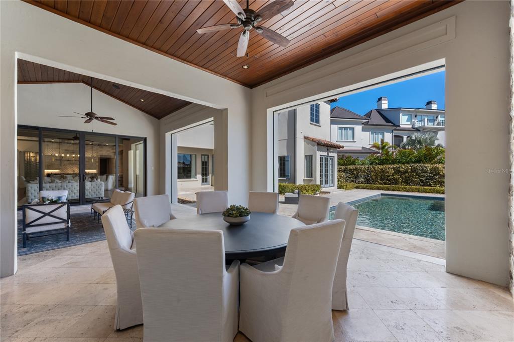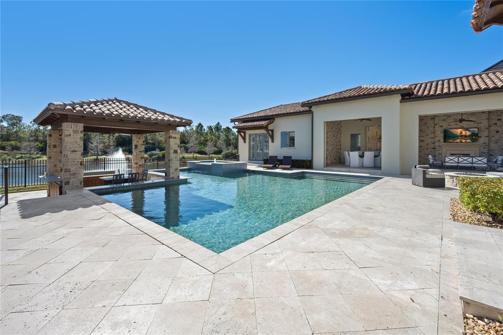summer kitchen opens to a spectacular pool and spa with a dramatic swim-up bar, all