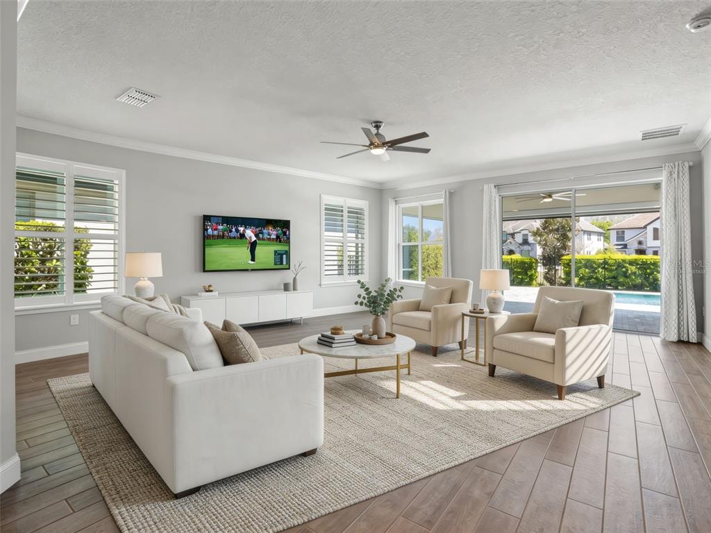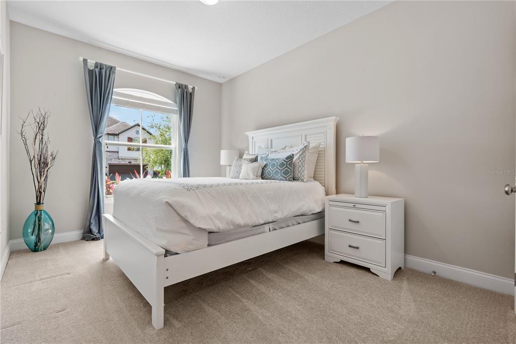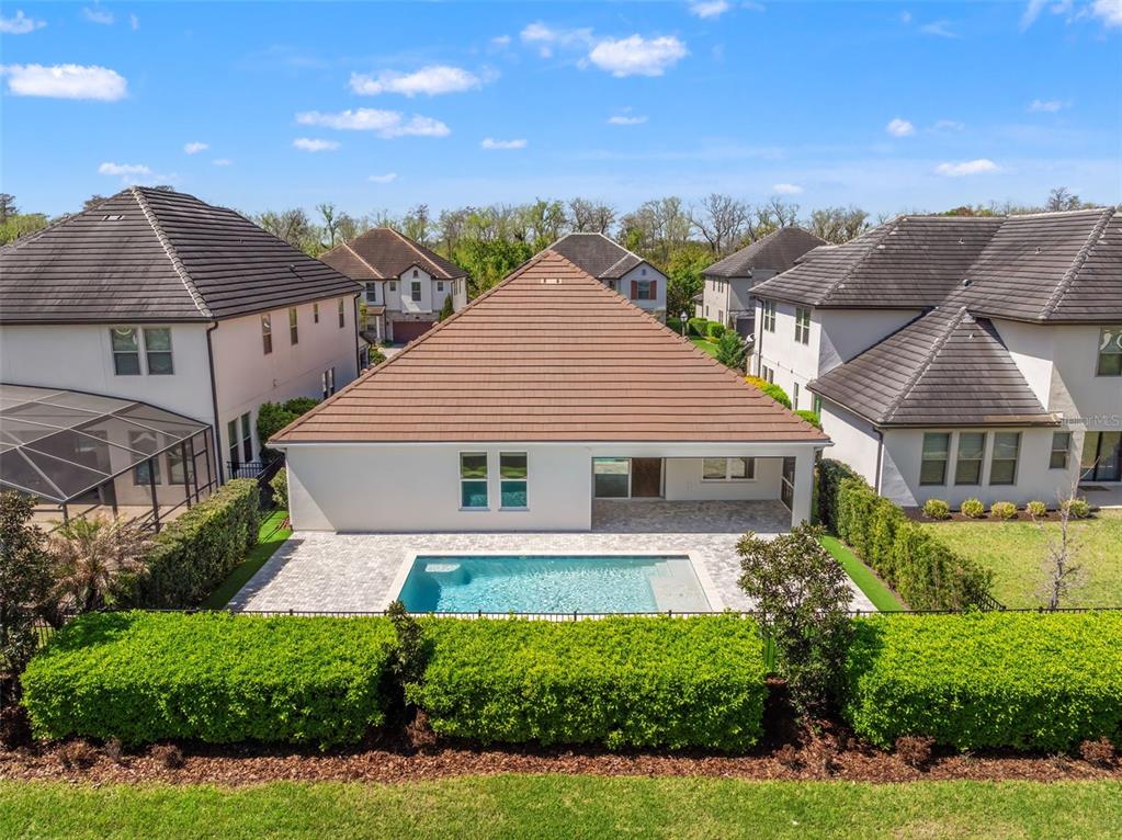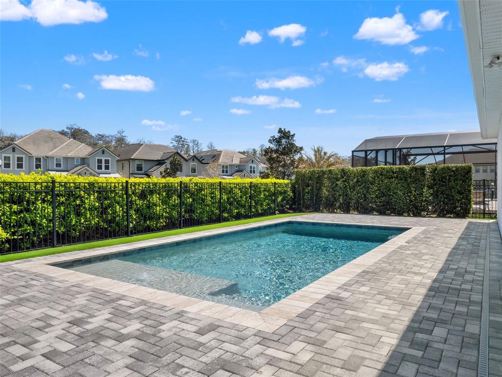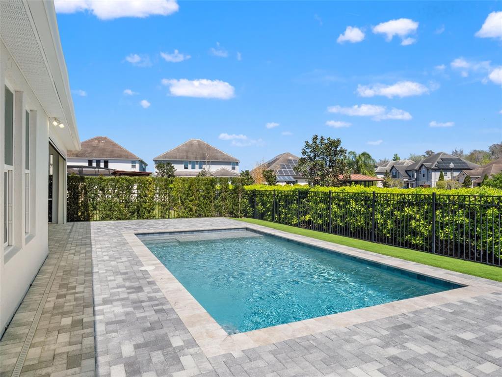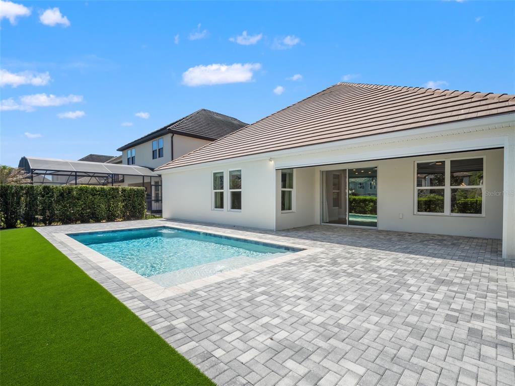 One or more photo(s) has been virtually staged. BACK ON MARKET! PRICED TO SELL! Incredible value! Welcome to Belle Vie, Lake Nona’s French Country inspired community of only 80 homes, where charm meets luxury living. With scenic parks, walking trails, a peaceful wetlands boardwalk and no CDD, this sought after enclave is truly one of a kind. Homes here rarely become available, only one has sold in the past year! This immaculate one-story pool home stands out for its pristine condition, thoughtful design, and ideal setting. Perfectly positioned on a private, fenced lot with low-maintenance turf and views of a lush green park space, it offers a serene backdrop just steps from the community mailbox pavilion. From the moment you arrive, you’ll be captivated by the charming curb appeal, mature landscaping, and a welcoming covered front porch that perfectly complements the home’s French Country architecture. Inside, an open-concept layout combines comfort and elegance, featuring wood-look tile floors throughout the main areas and plush carpeting in the bedrooms. The gourmet kitchen is the heart of the home, complete with an expansive quartz island with seating, stainless steel Whirlpool appliances, double ovens, 42″ cabinetry, and a walk-in pantry. A dedicated office area with built-in cabinetry and desk space offers both function and flexibility, ideal for today’s work-from-home lifestyle. The spacious primary suite provides a private retreat with access to a spa-inspired bath featuring a garden tub, glass-enclosed shower, dual vanities with quartz counters, and a large walk-in closet. Three additional bedrooms and two full baths ensure ample space for family and guests. Step outside to the covered lanai with remote-controlled shade screens, the perfect spot to unwind and enjoy the sparkling private pool surrounded by tranquility. Located just 15 minutes from Orlando International Airport, 10 minutes from Lake Nona’s Boxi Park, 25 minutes from Disney, and 30 minutes from Cape Canaveral, this home offers both luxury and convenience in one of Central Florida’s most desirable areas. Homes like this in Belle Vie rarely come available, don’t miss your chance to make this exceptional property your own!