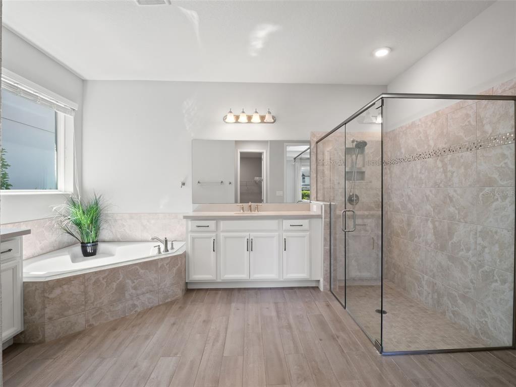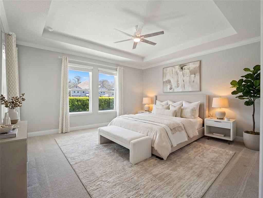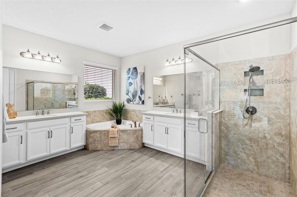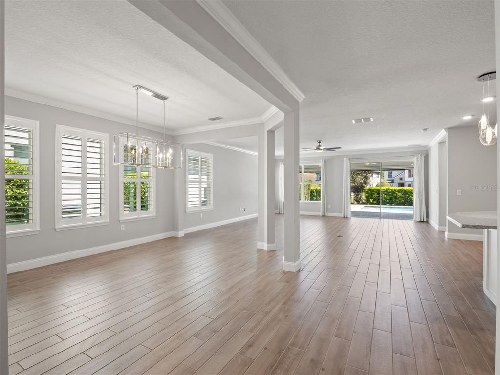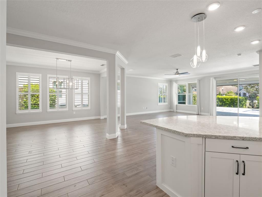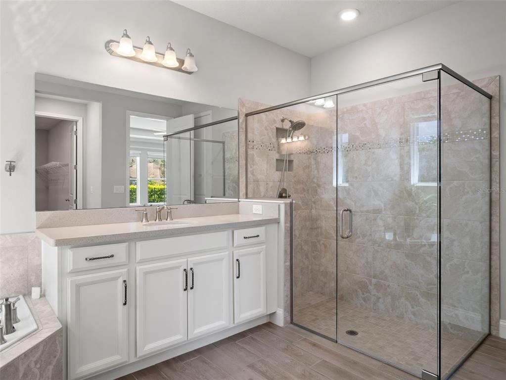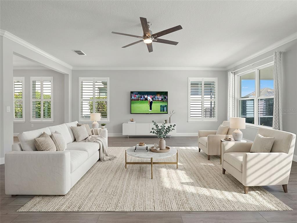 One or more photo(s) has been virtually staged. BACK ON MARKET! PRICED TO SELL! Incredible value! Welcome to Belle Vie, Lake Nona’s French Country inspired community of only 80 homes, where charm meets luxury living. With scenic parks, walking trails, a peaceful wetlands boardwalk and no CDD, this sought after enclave is truly one of a kind. Homes here rarely become available, only one has sold in the past year! This immaculate one-story pool home stands out for its pristine condition, thoughtful design, and ideal setting. Perfectly positioned on a private, fenced lot with low-maintenance turf and views of a lush green park space, it offers a serene backdrop just steps from the community mailbox pavilion. From the moment you arrive, you’ll be captivated by the charming curb appeal, mature landscaping, and a welcoming covered front porch that perfectly complements the home’s French Country architecture. Inside, an open-concept layout combines comfort and elegance, featuring wood-look tile floors throughout the main areas and plush carpeting in the bedrooms. The gourmet kitchen is the heart of the home, complete with an expansive quartz island with seating, stainless steel Whirlpool appliances, double ovens, 42″ cabinetry, and a walk-in pantry. A dedicated office area with built-in cabinetry and desk space offers both function and flexibility, ideal for today’s work-from-home lifestyle. The spacious primary suite provides a private retreat with access to a spa-inspired bath featuring a garden tub, glass-enclosed shower, dual vanities with quartz counters, and a large walk-in closet. Three additional bedrooms and two full baths ensure ample space for family and guests. Step outside to the covered lanai with remote-controlled shade screens, the perfect spot to unwind and enjoy the sparkling private pool surrounded by tranquility. Located just 15 minutes from Orlando International Airport, 10 minutes from Lake Nona’s Boxi Park, 25 minutes from Disney, and 30 minutes from Cape Canaveral, this home offers both luxury and convenience in one of Central Florida’s most desirable areas. Homes like this in Belle Vie rarely come available, don’t miss your chance to make this exceptional property your own!