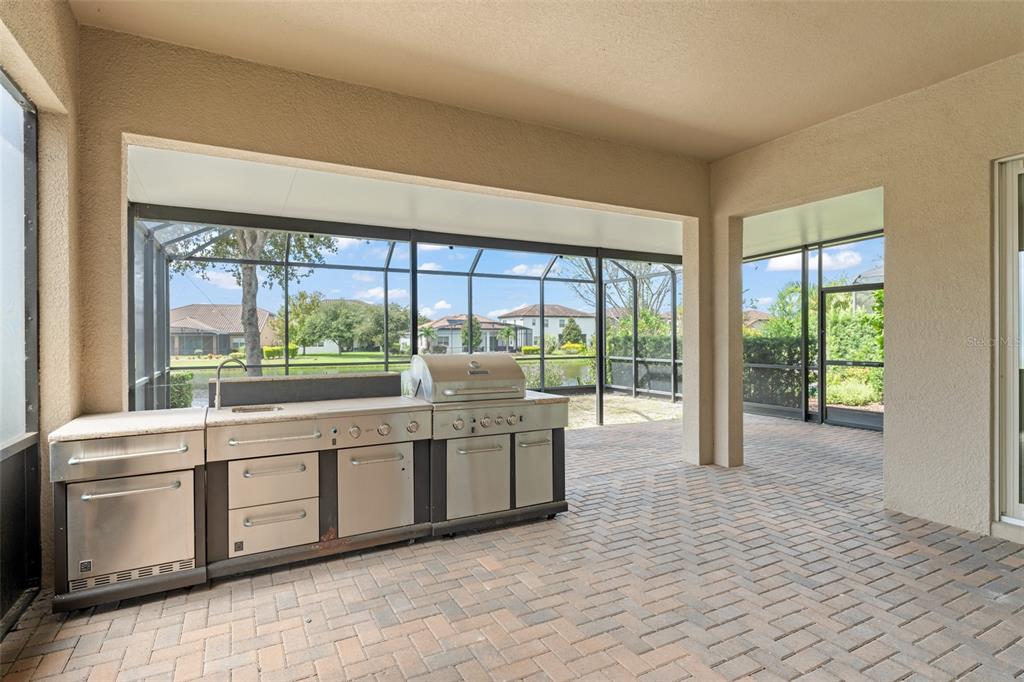 Enchanting waterfront home inside the gated enclave of Ruby Lake, with Dr. Phillips’ most stylish new address: O-Town West. This gently lived-in Pulte executive home sits on a private pond and features 4 bedrooms including one downstairs and three upstairs, including the primary, plus a bonus room. Main floor features dining and family room with double height ceilings. The kitchen with large island showcases everyday gatherings with style and function. Appliances include built-in natural gas cooktop and contemporary-style hood, stainless fridge and oven plus microwave. Screened paver patio with outdoor kitchen BBQ grill area. Tandem 3-car garage. Gated community with landscape maintenance included plus community pool, clubhouse, and fitness center. There’s even a community pier on Ruby Lake for nightly fireworks viewing. Located within the shadows of Walt Disney World® and close to Universal Orlando and SeaWorld, O-Town West is a 350-acre master planned community and offers an enviable location in the heart of Central Florida’s famed attractions. And now with a newly opened on-ramp to I-4 and new shopping and restaurants opening almost monthly, this hot new growing area is the destination of choice for those seeking luxury, location, and lifestyle.
