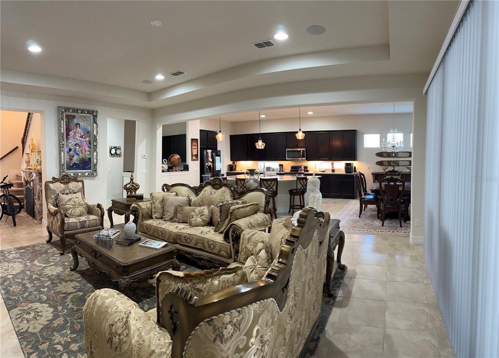 Seller Motivated!!! Welcome to Florida luxury lifestyle-living in this upgraded home! This is a beautiful property is sitting on a 6K+ corner lot. Being sold fully furnished. Walking in at the foyer you will find a precious decorative marble fire place. Following the interior there is an open floor plan with the living, dining and kitchen combination. Very spacious kitchen area with 42″ wood cabinets, the big granite kitchen counter top, offers an eating space. On the kitchen left side there is a walk-in pantry and an office area. 3 cars garage. A primary bedroom and full bathroom is on the 1st floor. The private pool has a built in granite table. The outside patio has a very well kept pool-table. Going upstairs you will find a loft, a studio-den, a balcony overlooking the pool; a bedroom with a private bathroom; two Jack-and-Jill bedrooms with a full bathroom. There are some interior decor not included in the sale, but available to the interested Buyer for purchase.