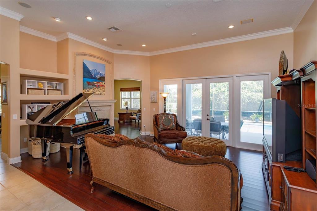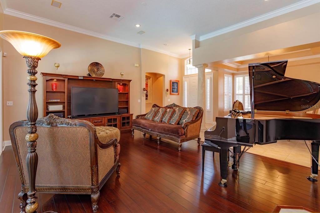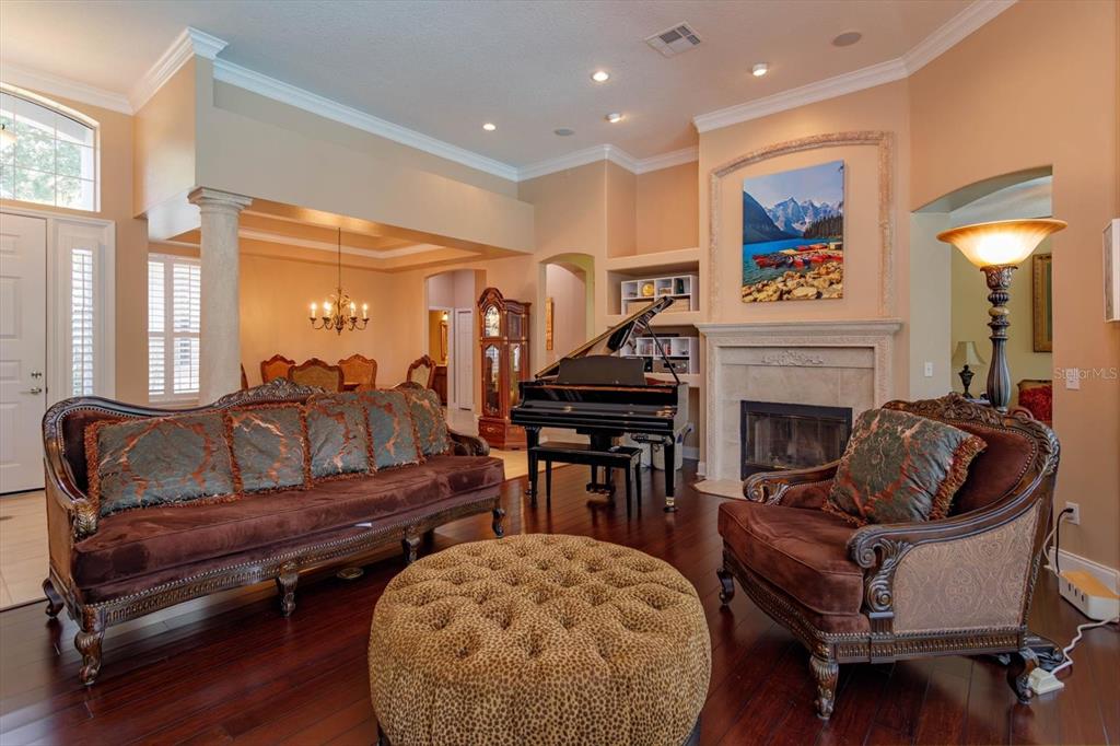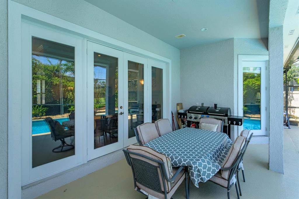Enjoy the Central Florida lifestyle in this elegant home located in the guard-gated community of Avalon at Turtle Creek. Excellent curb appeal and professionally landscaped grounds highlight this premium lot. This home features an open floor plan with 3 bedrooms/3 bathrooms, formal dining room, living room and family room. Highlighted by neutral paint tones, plantation shutters, 5” baseboards, wood & tile floors and plenty of natural light throughout. The living room features a fireplace and French doors overlooking the pool. The kitchen is ideal for the aspiring chef in your family – featuring 42″ light maple cabinets, solid surface counters, stainless steel appliances, an island and adjacent breakfast nook. The primary bedroom retreat is spacious and features a spa-like master bath and two walk-in custom closets. The second bedroom features an ensuite bathroom and walk-in closet. Extend your living area outdoors with a covered and screened lanai for enjoying the heated pool and spa year round. The back yard is private with lush landscaping – no rear neighbors. Upgrades include: EV charging station in garage, newer appliances, re-surfaced pool and exterior paint. Community amenities: clubhouse, community pool, park, playground, tennis, basketball and volleyball courts. Front yard lawn maintenance provided by HOA. Conveniently located to upscale shopping and dining at Restaurant Row, theme parks: Disney World, Universal, Sea World, medical and major roads. You will not want to miss seeing this meticulously maintained home!
