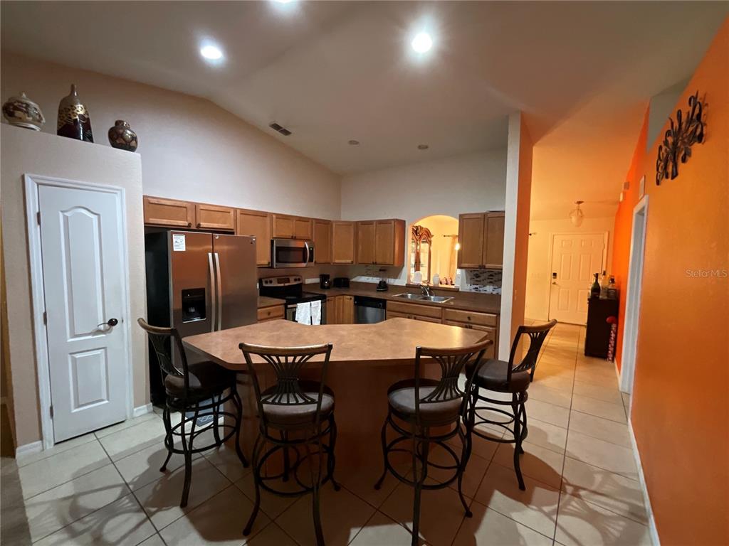 Welcome to one of Crows Nest Estates homes. Much of the neighborhood was constructed in 2007. However, this beauty was CUSTOM-BUILT in 2014 and has been meticulously cared for ever since. Is a Beautiful Gated Community. HOME WITH VAULTED CEILINGS & NO CDD!! No need to wait for new construction! , with low taxes. This 4 Bedroom, 2 full Bath Home in Crows Nest Estates in Davenport is in pristine condition, high quality, tile on wet area, lots of natural light! beautiful Open Kitchen with large island, recessed ceiling light fixture and top-of-the-line stainless steel appliances, blinds in every room, ceiling fans in all the rooms, Walk in closet in master room, dual sink in master bathroom, indoor laundry room, 2 car garage with garage door opener, shelves to stay organize and two outdoor faucets. The large Family Room which has sliding doors that open up to a comfortable big and beautiful back yard!! Crows Nest Estate is a Gated Community featuring a playground ,sidewalk and sprinkler recycled. This magnificent home has it all! Including PAID OFF Solar Panel with a value of $25,000 & with a transferable warranty for 20 years. A must see!!!!!! For added privacy, the backyard is lined with a vinyl fence so you can relax and enjoy sitting out on the back patio or grilling out