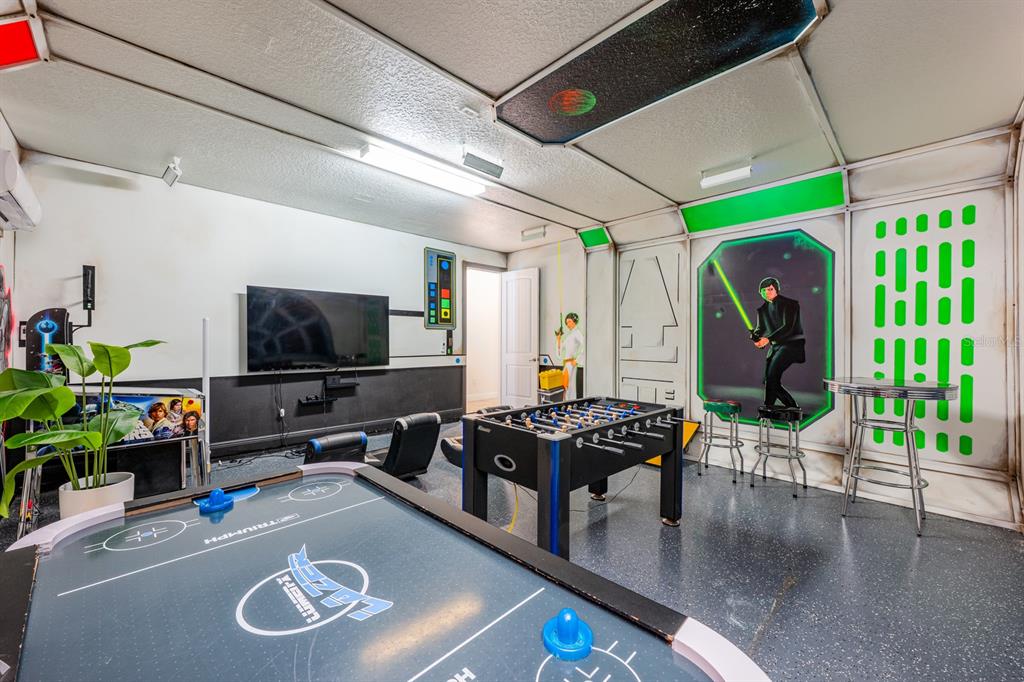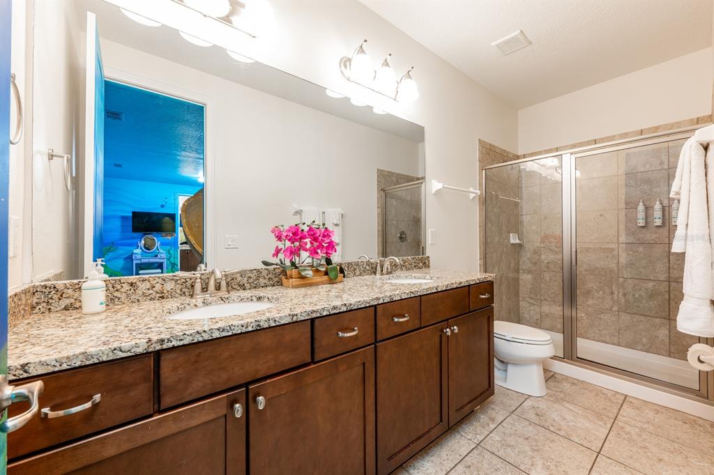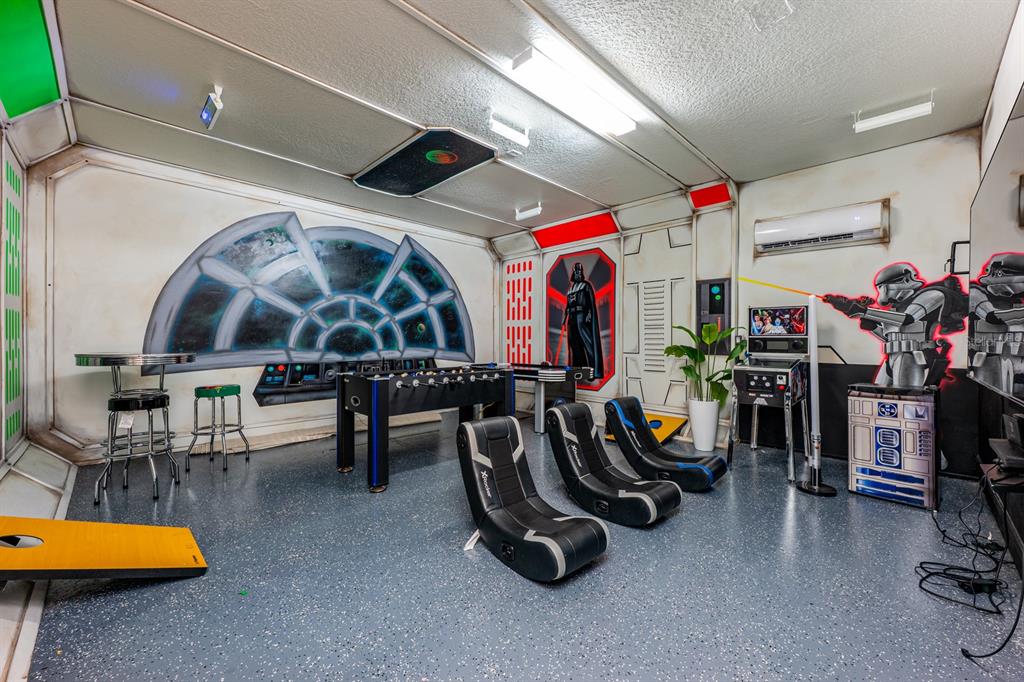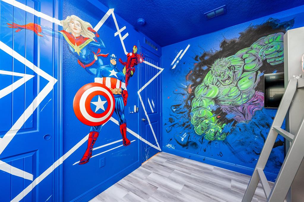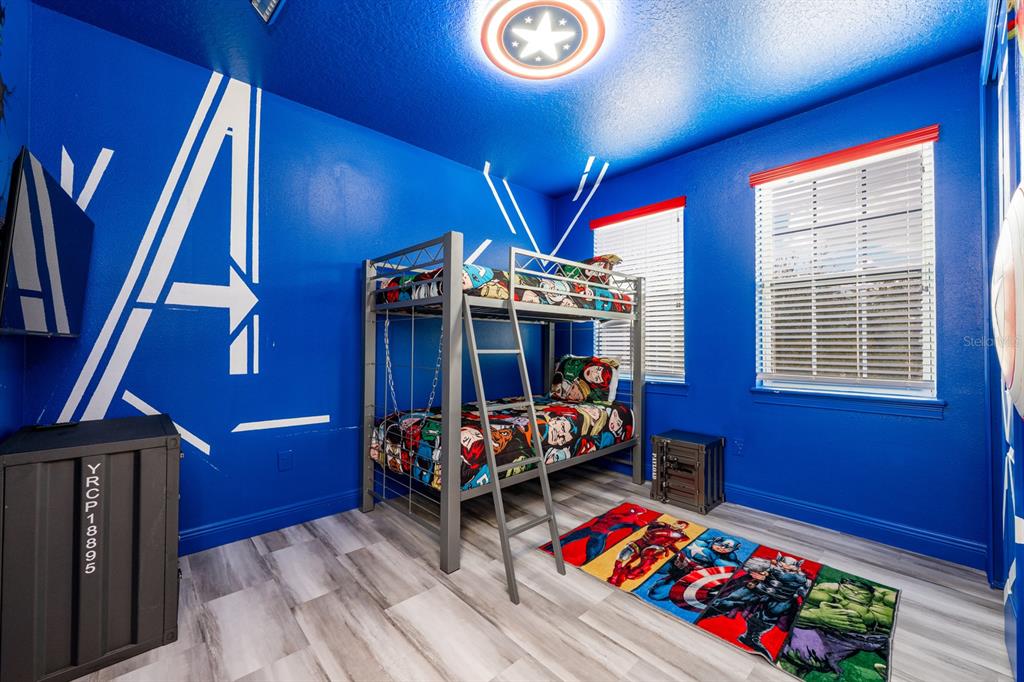 Welcome to an EXTRAORDINARY LUXURY RETREAT in the distinguished Reunion West community where elegance, scale, and unforgettable experiences come together in one spectacular 4,500-SQUARE-FOOT vacation estate. FULLY FURNISHED and turnkey, this 9-bedroom, 8.5-bath masterpiece is designed to impress, entertain, and generate exceptional SHORT-TERM RENTAL INCOME. From the moment you enter, high ceilings and easy-to-maintain CERAMIC TILE FLOORING set the stage. The expansive open-concept main floor seamlessly blends the Living Room, Dining area, and CHEF’S KITCHEN into one grand gathering space — ideal for hosting large groups with ease. The Living Room features a striking picture-frame accent wall and sliding glass doors that open to your PRIVATE OUTDOOR OASIS. Step outside to the covered paver patio, where a SPARKLING PRIVATE POOL and SPA await, designed for relaxation and entertainment. At the heart of the home, the UPDATED Kitchen is both stylish and functional, featuring 42-inch cabinetry, GRANITE COUNTERTOPS, stainless steel appliances, a tile backsplash, a spacious closet pantry, and an OVERSIZED BREAKFAST BAR that comfortably seats a crowd. A DEDICATED NICHE makes the perfect coffee or beverage bar, adding a thoughtful touch for guests. The main-level Primary Suite is a serene escape, showcasing LUXURY VINYL PLANK FLOORING, private sliding doors to the pool area, and a spa-inspired en suite bath complete with a GENEROUS WALK-IN CLOSET, dual sinks, garden tub, step-in shower, and private water closet. An additional bedroom and full bath are also located on the first floor, along with a WELL-EQUIPPED LAUNDRY ROOM with cabinetry for added convenience. A FULLY THEMED GAME ROOM provides hours of entertainment for guests of all ages. Upstairs, a SPACIOUS LOFT offers additional gathering space, while the remaining bedrooms create a world of imagination and comfort. Four of the upstairs bedrooms feature PRIVATE EN SUITE BATHS, while three have been PROFESSIONALLY THEMED to deliver unforgettable experiences: DIVE UNDER THE SEA with Ariel in a stunning ocean-inspired room featuring hand-painted murals, coral accents, and a whimsical sandcastle bed; step into a FROSTY FAIRYTALE WORLD with Elsa and Olaf in the Frozen-themed retreat; and unleash superhero adventures in the vibrant AVENGERS-THEMED ROOM complete with bold murals and immersive design. Located within Reunion West, residents and guests enjoy access to an impressive array of RESORT-STYLE AMENITIES, including 24-HOUR GUARD-GATED SECURITY, a grand clubhouse, fitness center, community pool, tennis courts, playgrounds, and beautifully landscaped grounds. HOA fees include cable and internet, enhancing the turnkey convenience of ownership. Reunion is also known for its CHAMPIONSHIP GOLF COURSES, on-site dining, and YEAR-ROUND COMMUNITY EVENTS that make every stay memorable. Positioned JUST MINUTES from Walt Disney World Resort, Universal Orlando Resort, and world-class shopping and dining, this home offers unmatched proximity to Central Florida’s most sought-after attractions. CONVENIENT ACCESS to I-4, SR-429, and US-192 ensures effortless travel to Orlando International Airport, downtown Orlando, and Florida’s beautiful beaches. Whether you’re seeking a HIGH-PERFORMING INVESTMENT PROPERTY or a luxurious PERSONAL VACATION RETREAT, this exceptional Reunion estate delivers an unforgettable resort lifestyle. Schedule your showing today!