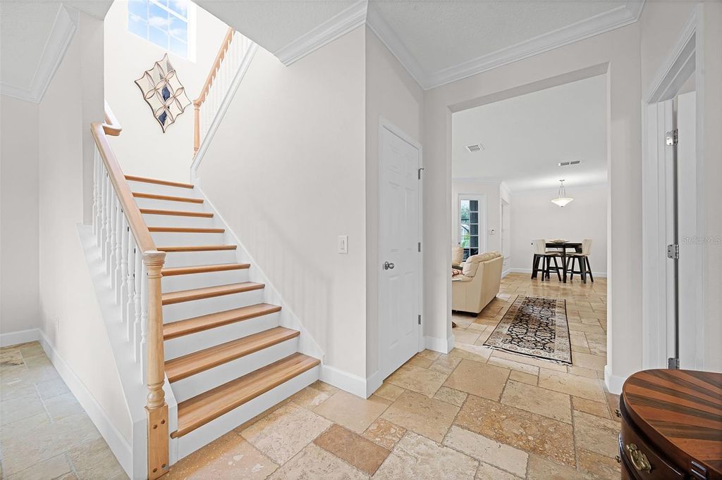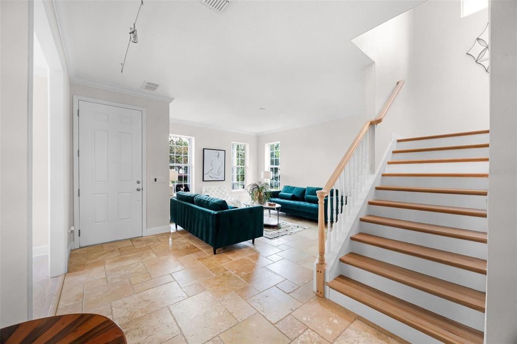 Welcome to this beautifully updated Lorin Classical model in the highly sought-after village of Artisan Park in Celebration, FL. This spacious residence features 4 bedrooms plus an office, combining timeless architecture with modern updates throughout. Set on an oversized pie-shaped lot, the home offers a large driveway and tranquil views of the front park. Relax outdoors on your screened back porch or the double front porches, perfect for soaking up the beauty and charm of Celebration. Inside, the home has undergone extensive upgrades including a new roof and new AC unit in 2022, a crown molding package, designer baseboards, full exterior paint, and a new landscape package in 2023, a dining room remodel and complete guest bathroom renovation in 2024, and in 2025 a new stairwell with custom railings and wood treads, removal of the knee wall, new carpet in all bedrooms, a fully remodeled master ensuite, extensive interior painting, and a new dishwasher. Living in Artisan Park means enjoying exclusive access to the Artisan Park Clubhouse with its full-service restaurant, state-of-the-art fitness center, meeting rooms, and heated resort-style pool and spa available to residents and their guests. Beyond Artisan Park, the award-winning community of Celebration offers 26 miles of walking and biking trails, scenic lakes, community pools, parks, and a charming downtown filled with dining, shopping, and year-round events. Easy access to major highways, Orlando International Airport, world class dining and shopping venues, and Orlando’s popular entertainment and theme parks.