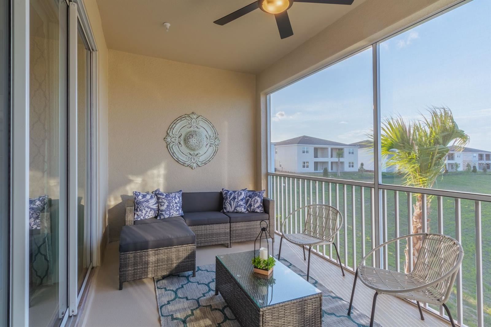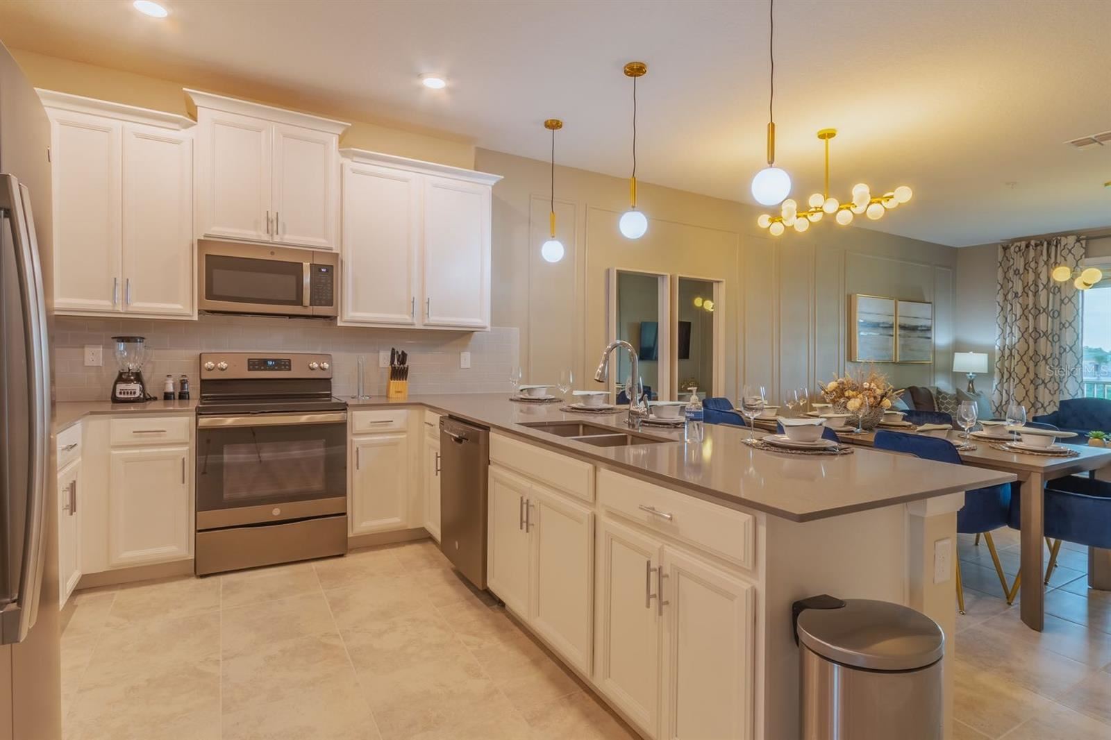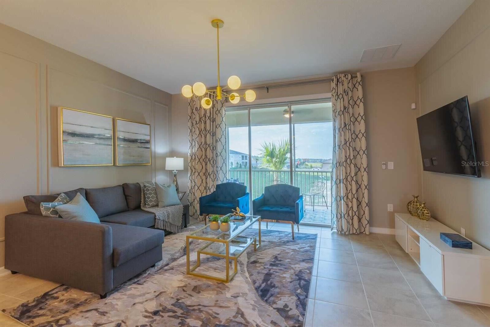 This elegant townhouse-style condo showcases professional interior design and grants access to world-class amenities in the renowned ChampionsGate community””just minutes from Orlando’s iconic theme parks, dining, and attractions. Resort-Style Living: Homeowners enjoy complimentary access to the Oasis Clubhouse, Orlando’s premier resort facility, as well as The Retreat Club, which features a fitness center, lazy river, resort-style pool, water park, movie theater, restaurant, bar, and more. Interior Highlights: Ground Floor: Private garage with convenient entry. Second Floor: A welcoming foyer opens to a laundry room with washer and dryer. French doors lead to a third bedroom that can serve as a guest suite or home office. Bedrooms & Baths: The second bedroom includes a generous walk-in closet and shares a hallway bathroom with a walk-in shower. Living Area: At the end of the hall, the open-concept kitchen boasts quartz countertops, stainless steel appliances, and sleek wood cabinetry, flowing seamlessly into the spacious great room with sliding glass doors””ideal for relaxing or entertaining. Master Suite: Adjacent to the great room, the luxurious master suite features dual walk-in closets, a spa-style ensuite with Roman tub, glass-enclosed shower, double vanity, and a private screened balcony with open views. This home combines refined comfort with resort-style amenities in one of Orlando’s most desirable communities. Additional Information: Room measurements are approximate. Please contact the HOA directly to verify HOA fees. Decorative items may differ from those shown in the photos.