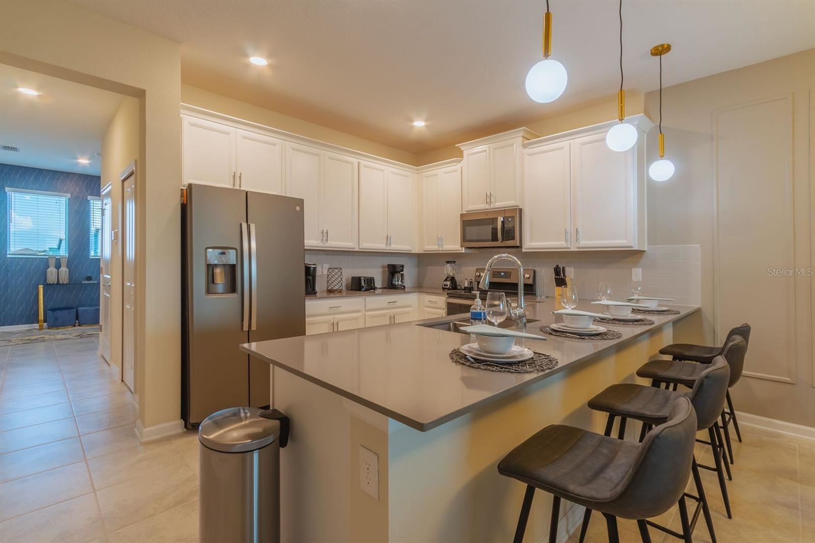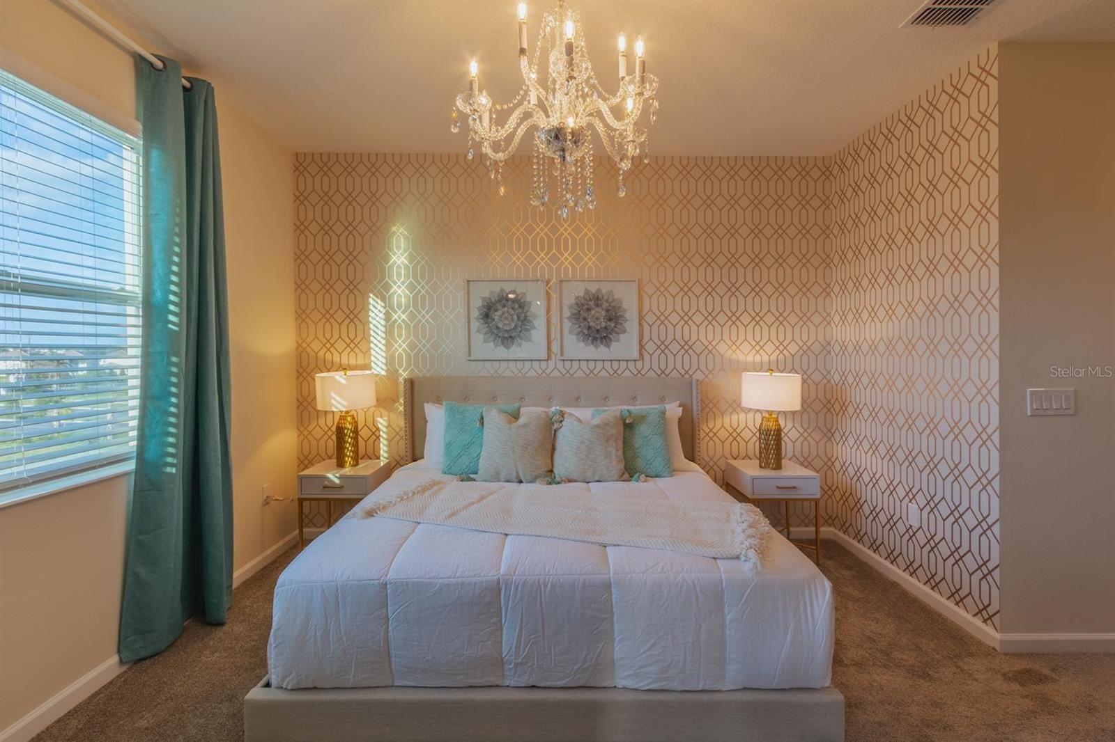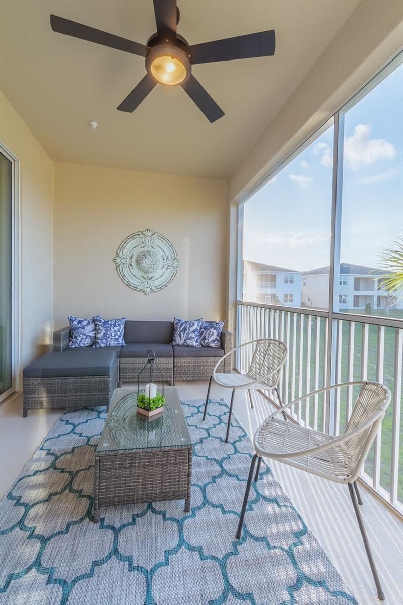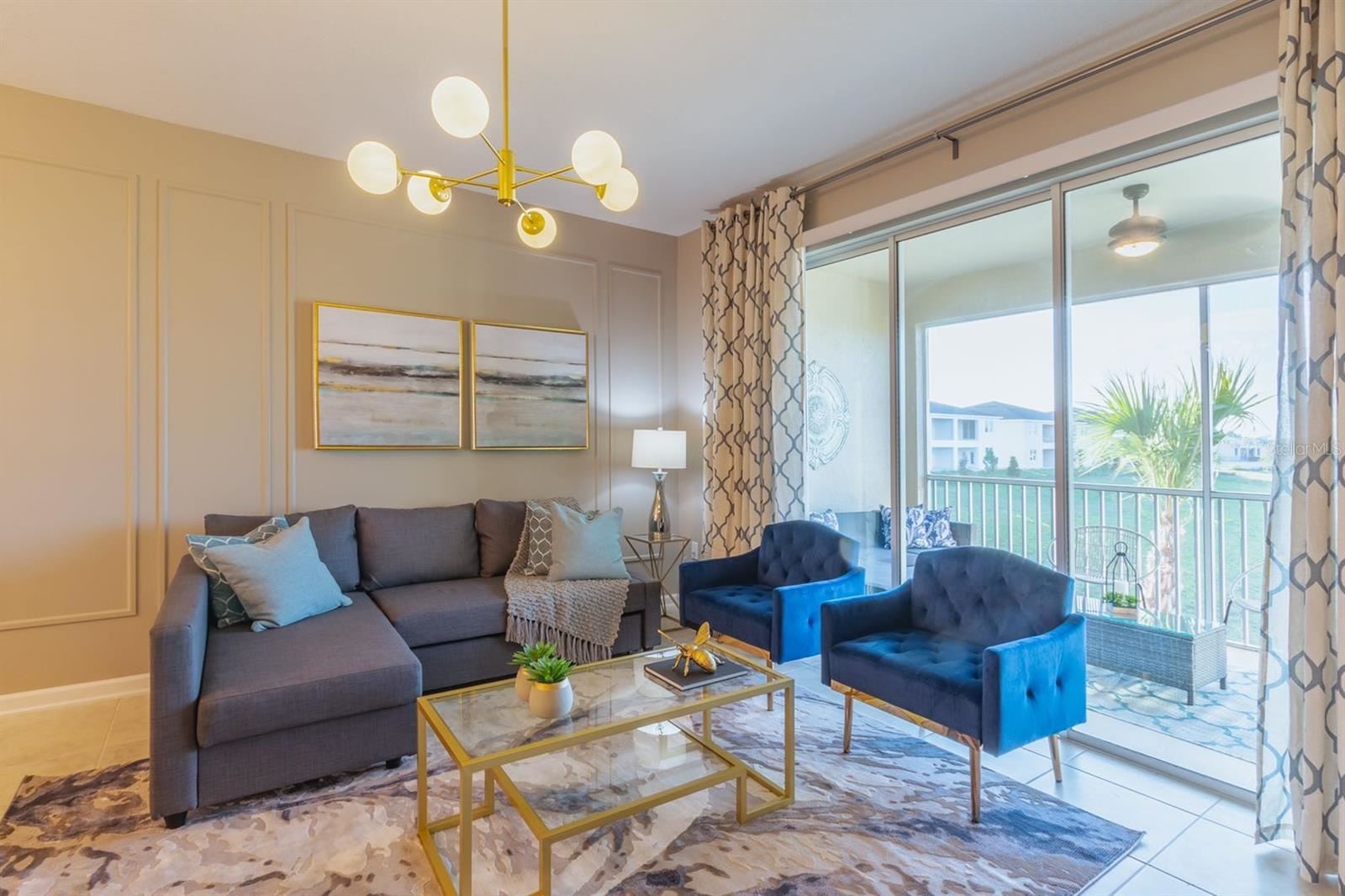 This elegant townhouse-style condo showcases professional interior design and grants access to world-class amenities in the renowned ChampionsGate community””just minutes from Orlando’s iconic theme parks, dining, and attractions. Resort-Style Living: Homeowners enjoy complimentary access to the Oasis Clubhouse, Orlando’s premier resort facility, as well as The Retreat Club, which features a fitness center, lazy river, resort-style pool, water park, movie theater, restaurant, bar, and more. Interior Highlights: Ground Floor: Private garage with convenient entry. Second Floor: A welcoming foyer opens to a laundry room with washer and dryer. French doors lead to a third bedroom that can serve as a guest suite or home office. Bedrooms & Baths: The second bedroom includes a generous walk-in closet and shares a hallway bathroom with a walk-in shower. Living Area: At the end of the hall, the open-concept kitchen boasts quartz countertops, stainless steel appliances, and sleek wood cabinetry, flowing seamlessly into the spacious great room with sliding glass doors””ideal for relaxing or entertaining. Master Suite: Adjacent to the great room, the luxurious master suite features dual walk-in closets, a spa-style ensuite with Roman tub, glass-enclosed shower, double vanity, and a private screened balcony with open views. This home combines refined comfort with resort-style amenities in one of Orlando’s most desirable communities. Additional Information: Room measurements are approximate. Please contact the HOA directly to verify HOA fees. Decorative items may differ from those shown in the photos.