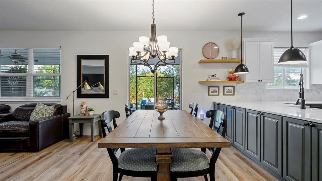 Impeccably renovated five-bedroom, three-and-a-half-bath residence in one of Orlando’s desirable, family-friendly communities. This exceptional home seamlessly blends timeless elegance with modern comfort throughout. The open-concept design highlights a beautifully updated kitchen and family room with breakfast bar and dual pantries, ideal for everyday living and refined entertaining. A formal living room and dining area, along with a den/guest bedroom, add versatility and sophistication to the main level. Upstairs, the spacious primary suite features an oversized walk-in closet and a well-appointed bath, accompanied by three additional bedrooms and a convenient laundry room. Recent enhancements include updated kitchen cabinetry and appliances, renovated baths, interior and exterior paint, new flooring and baseboards, and all new appliances. Major system improvements include a hybrid water heater, new HVAC system, replaced electrical panel and whole-home air conditioner and surge protection, all with remaining warranties. The garage features a workbench and built-in shelving. Outdoors, enjoy a screened-in patio overlooking a private, professionally landscaped backyard retreat. Ideally near the community’s resort-style amenities include a pool, pavilion, putting green, playground and soccer field. Close to fine dining, shopping, farmers markets, championship golf courses, major highways, Orlando International Airport and theme parks. End each day with captivating nightly views of Disney fireworks, creating a magical backdrop to an extraordinary lifestyle.