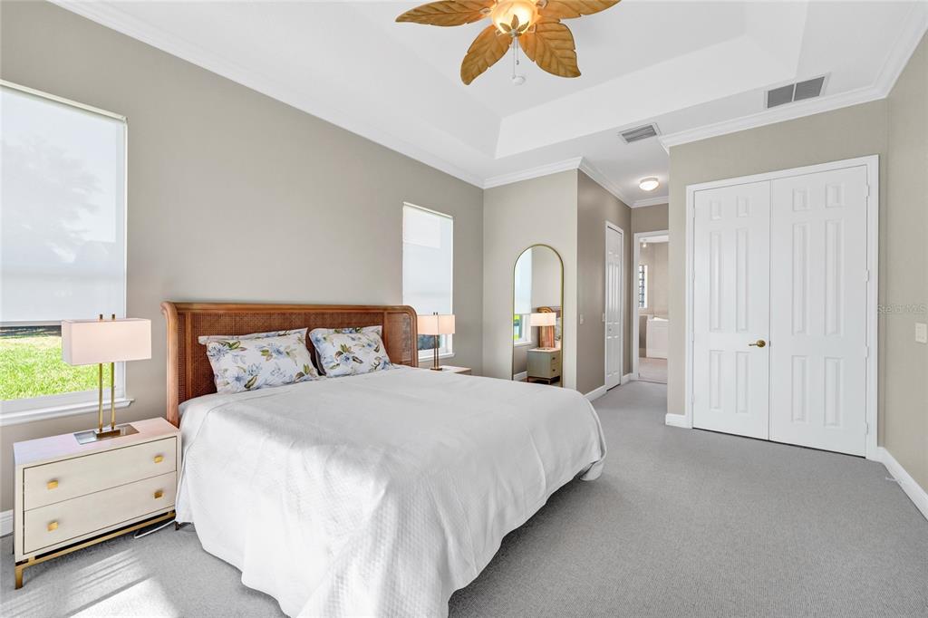 The property also includes a two-car garage plus a golf cart garage with six built-in storage closets. Residents enjoy world-class amenities including indoor and outdoor pools, on-site dining, fitness centers, tennis and pickleball courts, social clubs, and two championship golf courses, including Stonegate. Conveniently located near major highways with easy access to Orlando International Airport, Walt Disney World, and Port Canaveral. This exceptional lakefront home delivers the very best of Florida’s active-adult lifestyle—schedule your private showing today.