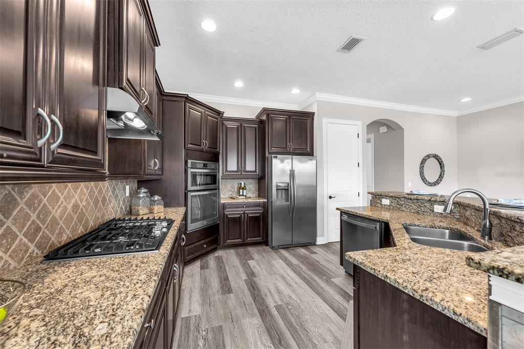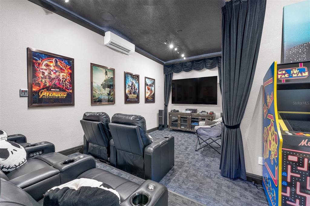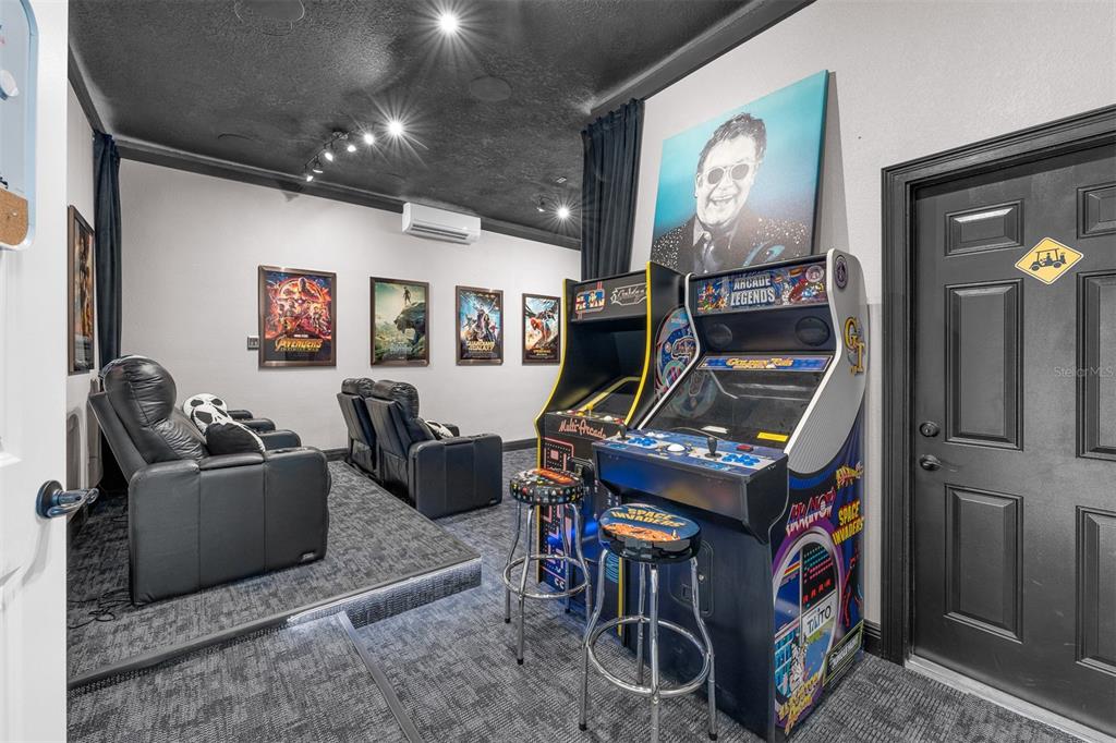 TRANSFERABLE REUNION MEMBERSHIP AVAILABLE Seller to pay $15,000 transfer fee for the buyer! This stunning 5 Bedroom Mediterranean-style two-story home offers panoramic views of the Jack Nicklaus Signature Golf Course and serene conservation areas. The property has never been in a rental program since renovations and has been used exclusively by the family. This property is partially furnished, with the option to purchase the staged furniture. Enjoy Florida living at its finest with a large swimming pool, outdoor spa, and covered patio, complete with a new BBQ and ample seating and lounge areas. The pool has been upgraded with a fully automated Pentair system and new pool pump. Inside, the thoughtfully designed floor plan features a formal dining area flowing seamlessly into the living room and a modern kitchen equipped with stone countertops, a 5-burner gas cooktop, stainless steel range hood, backsplash, built-in oven, microwave, dishwasher, and stainless-steel refrigerator. The main floor primary suite includes a full en-suite bathroom. Also downstairs are a conveniently located laundry room and half bath. Upstairs, a spacious loft provides the perfect area for entertaining or relaxing. All guest bedrooms feature private en-suite bathrooms, while the second primary suite boasts a full-size walk-out balcony overlooking the golf course, a soaking tub, and an enclosed shower. Additional highlights include laminate flooring and carpet throughout, new lighting and ceiling fans indoors and outdoors, top-of-the-line Sony TVs, and a garage converted into an impressive theater and game room with new equipment, arcade games, and full furnishings. The home also features a new AC system with UV lights and a new mini-split in the theater room. Located within Reunion Resort, a 2,300-acre gated golf community, residents enjoy access to three championship golf courses (Palmer, Watson, and Nicklaus), the Leadbetter Golf Academy, a water park, 12 community pools, tennis and pickleball courts, mini golf, and multiple dining options. Just minutes from Disney Parks and close to Florida’s top beaches, this home offers the ultimate luxury lifestyle. Don’t miss this exceptional opportunity to own in one of Central Florida’s most sought-after resort communities