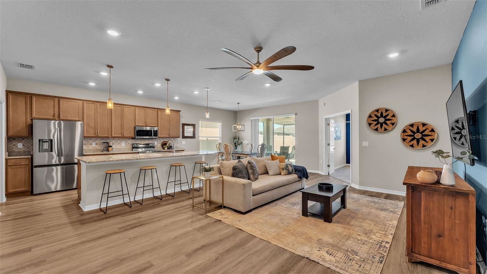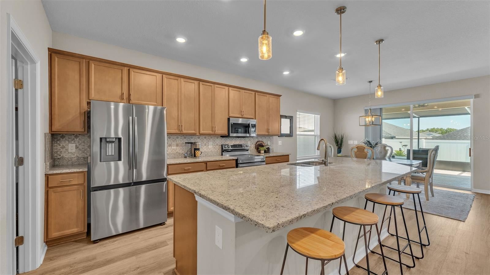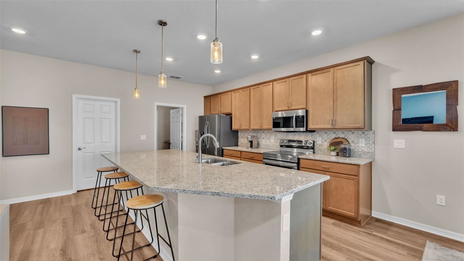 Welcome to the desirable Astonia, where the Florida lifestyle comes to life! This floor plan offers over 2,000 square feet of modern, single-story living in a community with resort-style amenities including a gym, pool, and playground. This beautifully designed home features 3 spacious bedrooms plus a den- which could be used as a 4th bedroom, 2.5 bathrooms, and an open-concept living area perfect for both relaxing and entertaining. The gourmet kitchen boasts granite countertops, custom backsplash, Samsung stainless steel appliances, an oversized island, and a custom walk-in pantry with upgraded wood shelving. You’ll love the luxury vinyl plank flooring which runs throughout the main living spaces, with plush stain-resistant carpet in the bedrooms. The primary suite offers double door entry, tray ceiling, loads of natural light, as well, as a large walk-in closet. The privacy continues with it’s own private en-suite bath with dual vanities, a tiled shower, and a private water closet. Bedrooms 3 and 4 share a convenient jack-and-jill style bathroom with dual sinks and an separate toilet/tub area. A half bath is ideally located off the main living space for guests. Additional features include: Covered and extended screened lanai, 2-car garage, custom window blinds, energy-efficient windows and insulation and peace of mind knowing this home was built in 2024! Located just minutes from I-4, traveling to work, international airports, and of course the areas’s world-class theme parks are a breeze. You’ll love shopping, dining, and find plenty entertainment near by, with Posner Park being just a few minutes from home. This home is your perfect Florida lifestyle retreat!