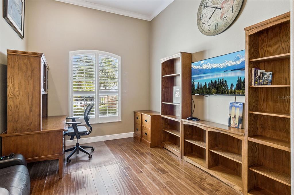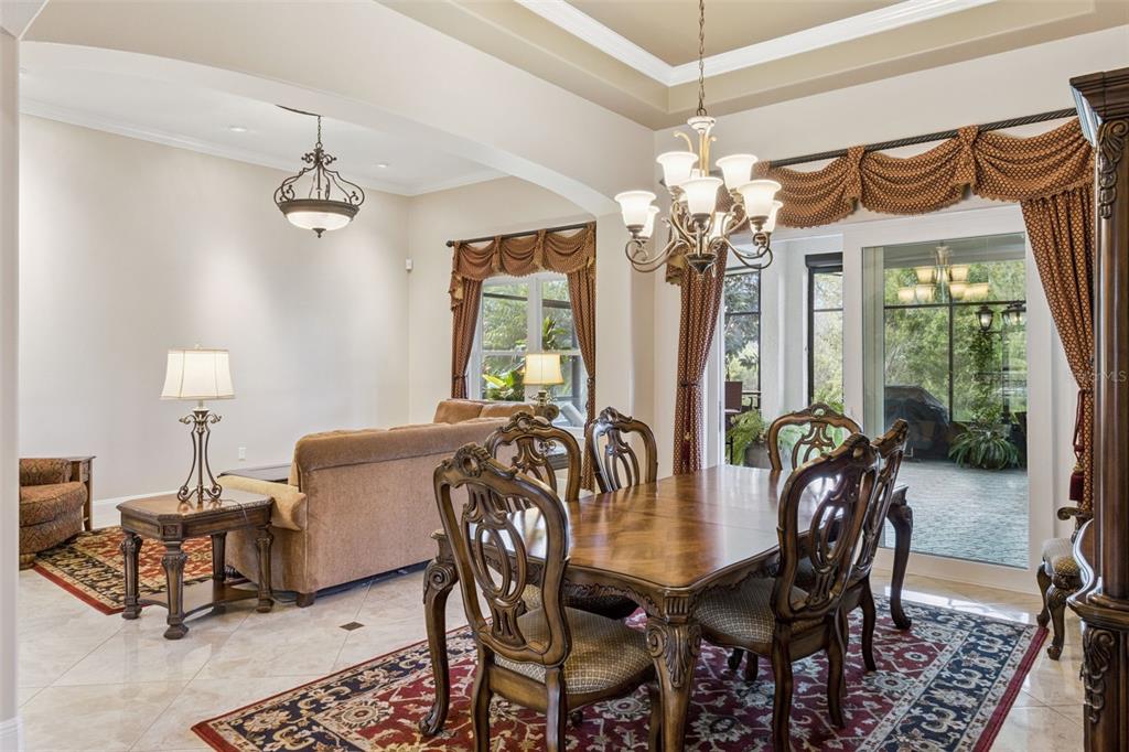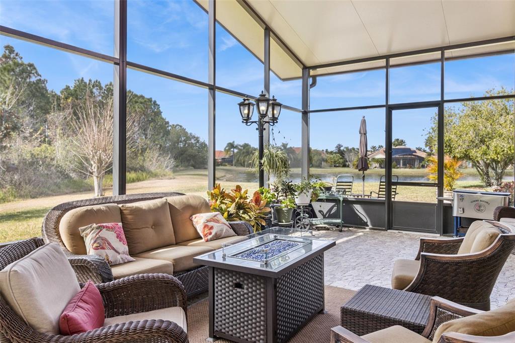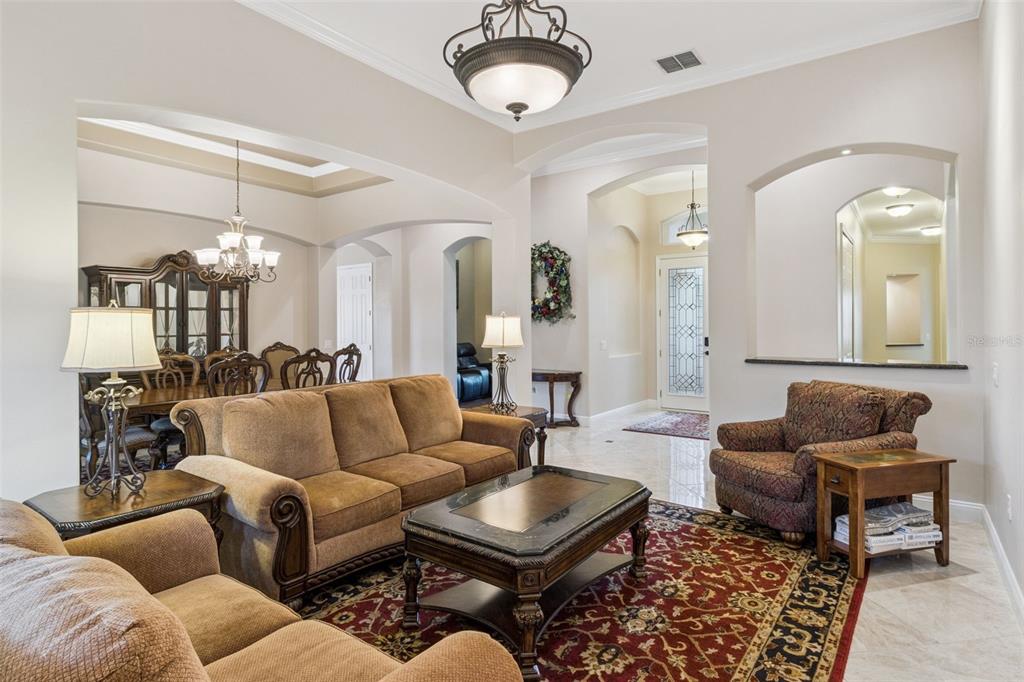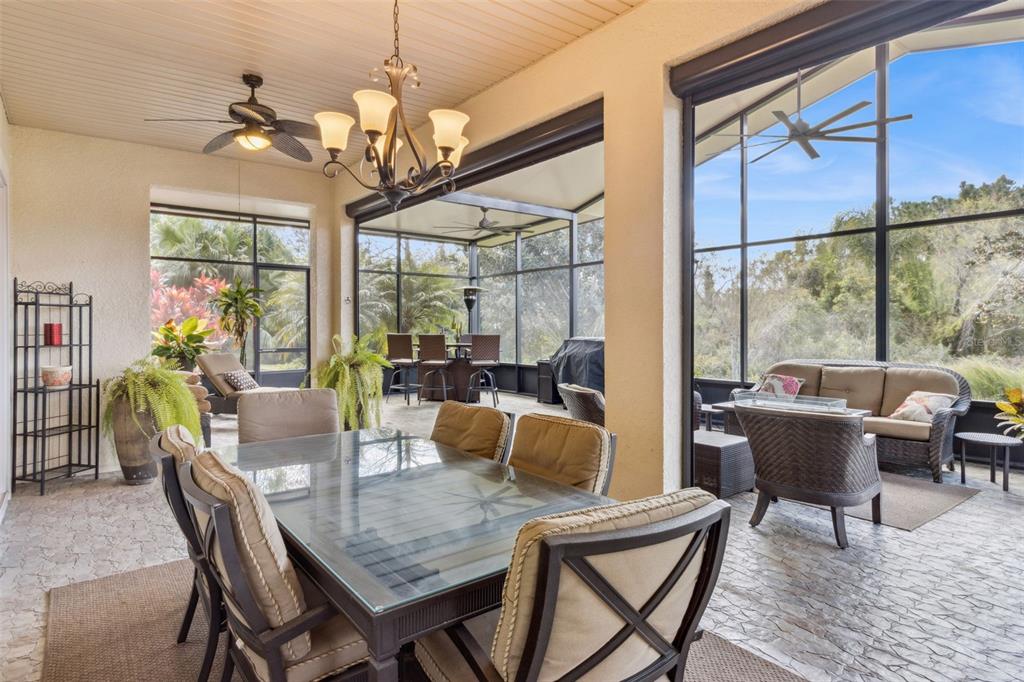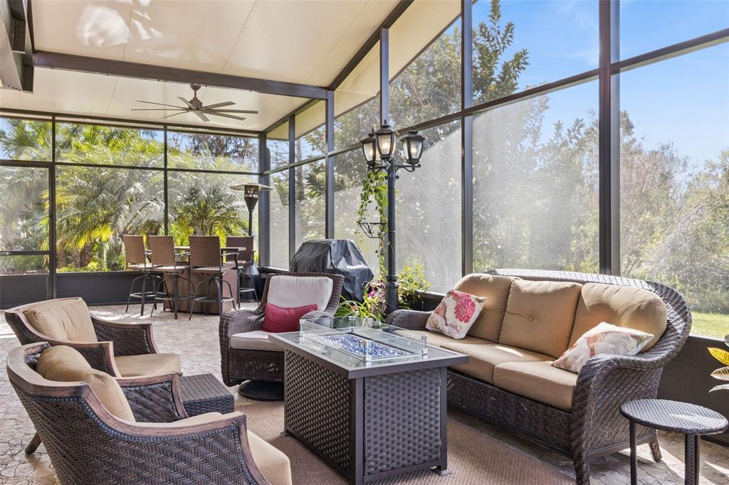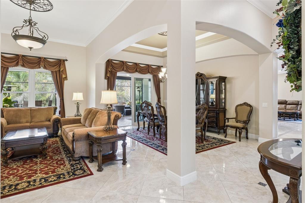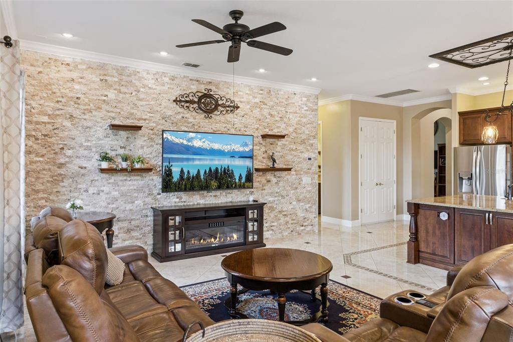 One of Solivita’s Most Exceptional Estate Homes- Offering Unmatched Privacy, Unique Upgrades, & Turnkey Luxury. Located in the prestigious Portofino Estates, this meticulously upgraded residence sits on a rare, oversized, over 1/3 acre PRIVATE lot, backing to BOTH CONSERVATION and WATER- offering complete privacy. (New Tile Roof: 2023) **This home is offered TURNKEY and fully furnished* With over 2,800 sq ft of interior living space and an additional 1,000 sq ft covered and screened lanai, this home delivers an unparalleled indoor-outdoor lifestyle. Walk through your gated front entry & double glass front entry doors, & be welcomed with soaring 12-ft ceilings, elegant architectural details, tray ceilings, crown molding, 5¼” baseboards, custom wall molding, and plantation shutters throughout. The designed interior features 24” porcelain tile throughout the main living areas, rich hardwood in the private office/study, & ultra-plush carpet in the primary and en-suite bedroom. The open living room showcases a custom stone accent wall, large picture windows overlooking the private WATER views, & French doors with built-in interior shades leading to the lanai. The chef’s kitchen features granite countertops, custom tile backsplash, crown-molded cabinetry, under & over-cabinet lighting, & a tremendous picture window overlooking the lanai & private conservation views. The oversized custom island includes a prep sink, wine refrigerator, & abundant counter space, creating a true entertaining hub. The primary suite offers stunning private views & a spa-inspired bath featuring two oversized walk in closets – one being a custom California walk-in closet (measuring an impressive 12’ x 10’), separate & spacious dual granite vanities with unique lighting, garden tub with chandelier, and a tiled Roman walk-in shower with glass partition. The second bedroom includes a private en-suite bath with upgraded tiled shower and large walk-in closet. This home also includes a large custom laundry room with additional cabinetry, sink, closet, and folding space, plus a conveniently located half bath between living areas. Step outside to a fully appointed 1,000 sq ft outdoor living retreat featuring a bar area, designer lighting, outdoor TV, luxury seating, dining space, motorized shades, and electrical already in place for a hot tub. Beyond the lanai is an additional paved patio area overlooking water and conservation. There is also ample space for a future pool. Major upgrades include a 2023 barrel tile roof, impact windows & doors, newer HVAC, new refrigerator, & a full three-car garage with epoxy floors and stand up attic storage. Every detail of this home has been thoughtfully curated—custom, refined, and unlike anything else in the community. From molding and cabinetry to lighting, finishes, and layout, this residence reflects an exceptional level of craftsmanship and care. Solivita offers endless amenities including 14 heated swimming pools, indoor pool & indoor walking track, state of the art fitness centers, 17 pickleball courts, lighted tennis courts, two 18-hole Championship golf courses, over 250+ clubs to join, 3 community restaurants, Farmers Markets every Monday and Friday, and so much more! Poinciana Lakes Plaza is a MAJOR NEW SHOPPING CENTER that features so many restaurants and shopping. This is a rare opportunity to own one of the most upgraded, private, and distinctive estate homes in Solivita—offered fully furnished and move-in ready.