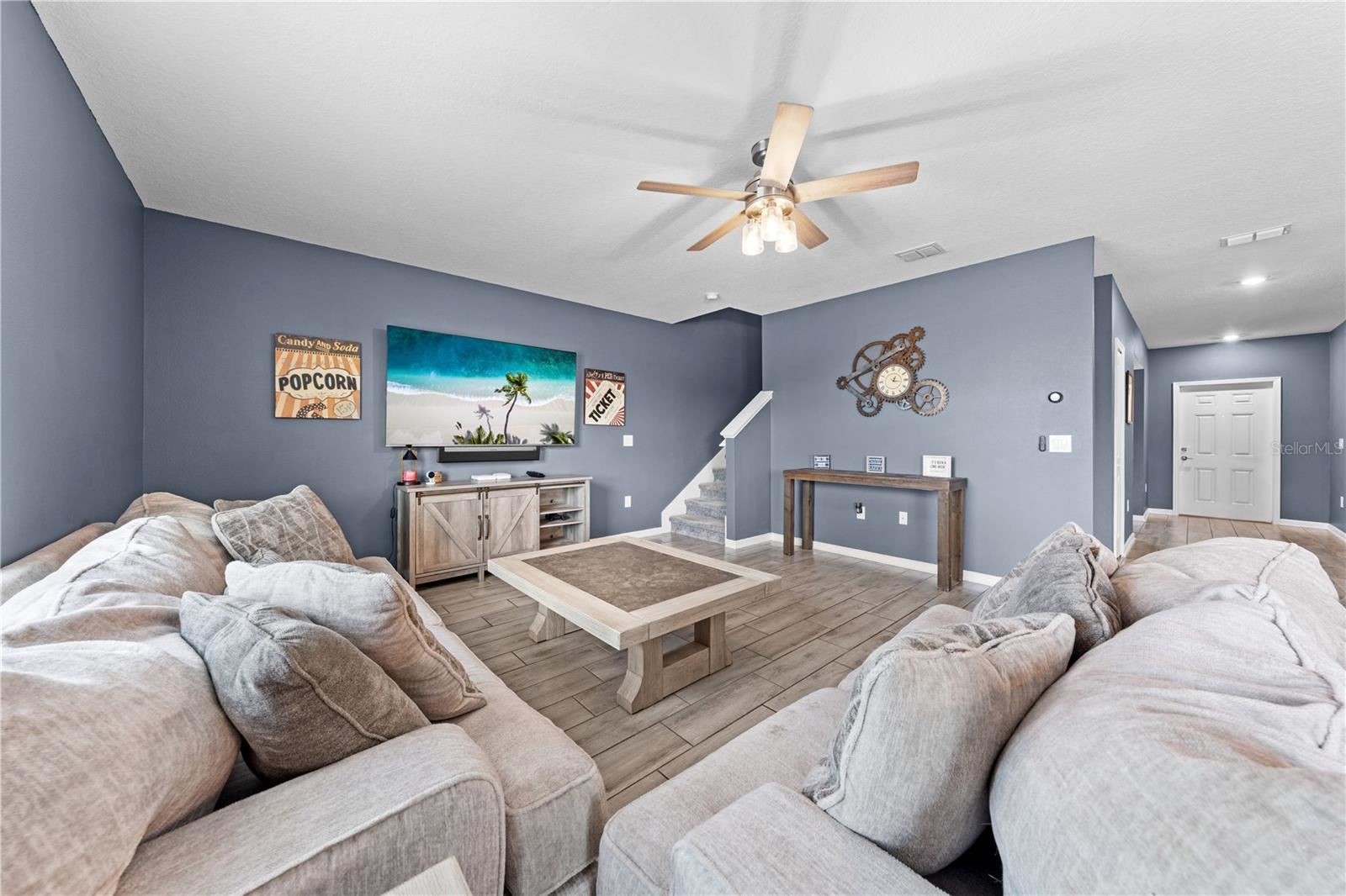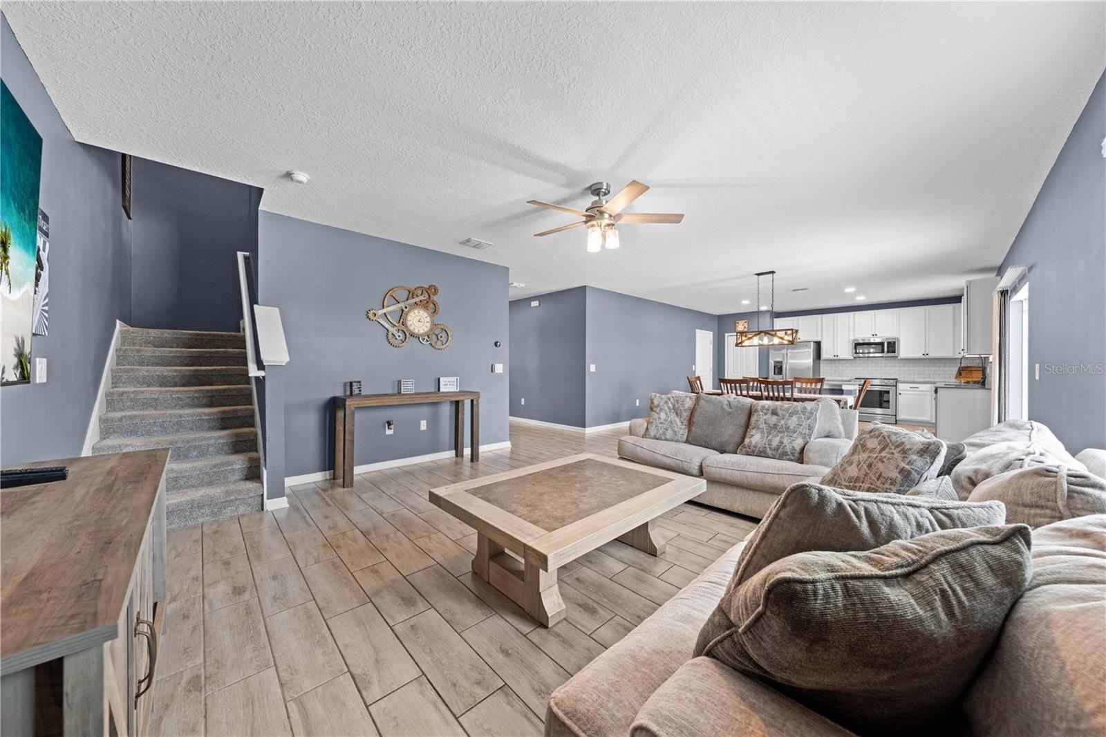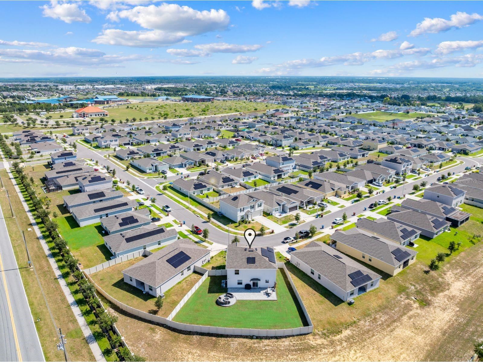 Welcome to Lassen Street in Haines City. This beautiful two story home features 4 bedrooms, 2.5 bathrooms, and 2,655 square feet of well designed living space, ideal for families and entertaining. Inside, the main floor offers a flexible room that can serve as a home office, playroom, or formal dining area. Upstairs, a generous loft provides additional living space for relaxing, gaming, or movie nights. All four bedrooms are located on the second floor, giving privacy and comfort for the whole household. The property sits on one of the largest lots in the community. The oversized backyard is fully fenced and includes a patio extension with a fire pit. There is plenty of space to add a private pool, playground, or create your own outdoor retreat. Built in 2022, this nearly new home also comes with solar panels on a $66 per month lease, providing utility savings that can be shared with interested buyers. The neighborhood itself offers resort style amenities including a community pool and park. This move in ready home has room to grow inside and out. Schedule your private showing today.