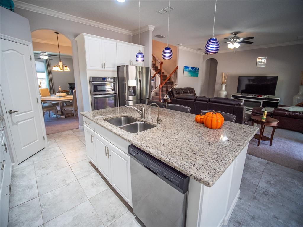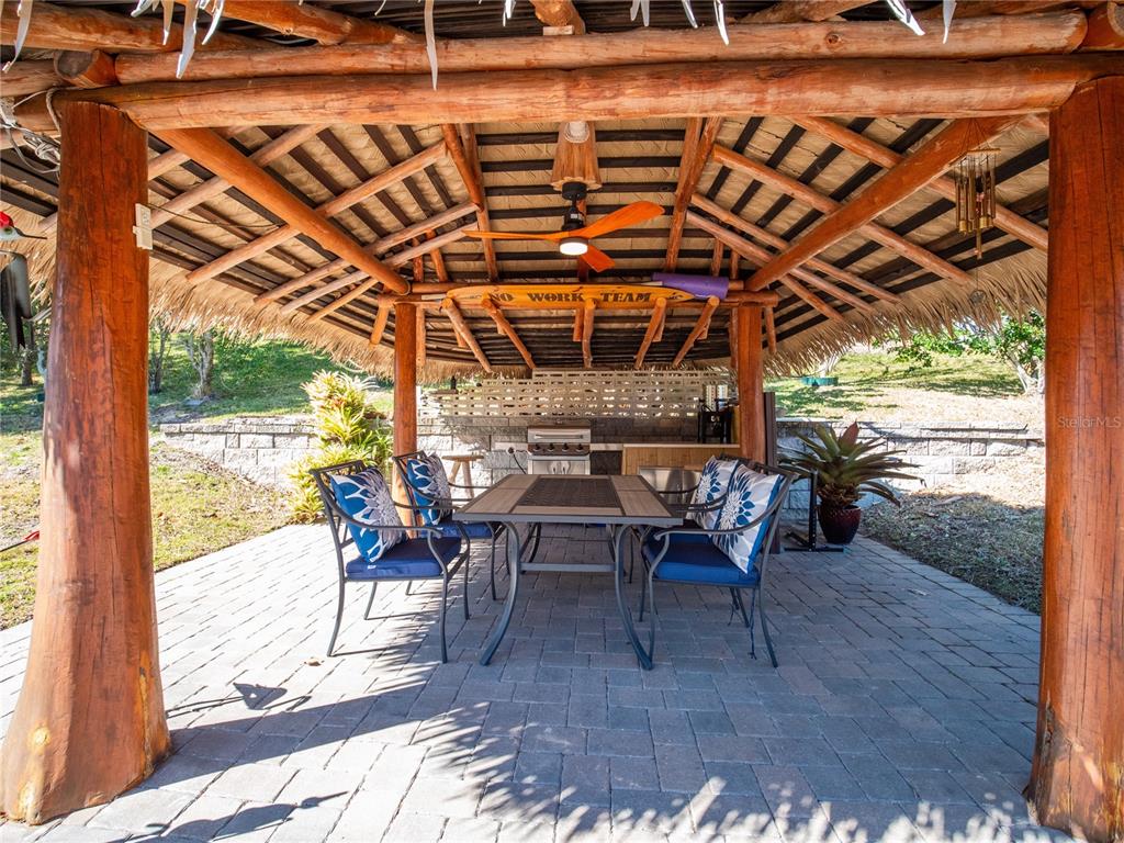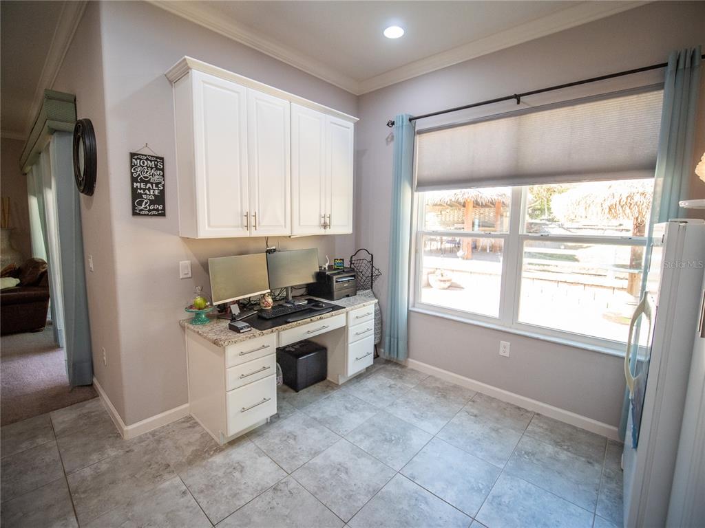 Exquisitely crafted and impeccably maintained, this custom four-bedroom, three-and-a-half-bath residence is perfectly positioned on a spacious corner lot in the highly desirable Timberlane community of Clermont. Surrounded by rolling hills and sparkling lakes, this home offers refined living in one of Central Florida’s most picturesque settings. From the moment you step inside, you are welcomed by a light-filled interior, soaring ceilings, crown molding throughout, and thoughtfully curated custom finishes that elevate every space. The formal living and dining rooms just off the foyer create an elegant setting for entertaining, complete with French doors and refined architectural details that add warmth and sophistication. At the heart of the home lies the gourmet kitchen, designed for both beauty and function. Featuring a generous center island with granite countertops, stainless steel appliances, extensive cabinetry with crown molding, and a built-in desk area, this space seamlessly blends everyday convenience with elevated style. The kitchen opens effortlessly to the expansive family room, where a ceiling fan and open layout create a comfortable yet polished space for gathering and relaxing. The primary suite is a private retreat, offering direct access to the patio, a spacious walk-in closet with custom built-ins, and a spa-inspired bath complete with dual vanities, a walk-in tiled shower with glass enclosure, and a separate soaking tub designed for ultimate relaxation. Step outside to your private backyard oasis, truly an entertainer’s dream. The covered lanai is outfitted with a built-in countertop, sink, and storage, while elegant pavers extend throughout the outdoor living space. A custom tiki hut adds a resort-style touch—perfect for hosting gatherings, weekend grilling, or simply enjoying Florida’s beautiful year-round weather in style and comfort. A well-appointed laundry room with cabinetry and utility sink, along with a stylish half bath, complete the main level. Upstairs, three generously sized bedrooms share a thoughtfully designed bath with dual vanities and a tiled tub-shower combination. Additional highlights include a three-car garage, extensive paver driveway and walkways, and a dedicated garden area ideal for cultivating fresh fruits and vegetables. Notable upgrades include double-pane windows and spray foam insulation through the walls and ceilings for ideal energy efficiency, a 9-zone irrigation system, eight camera security system, a double osmosis system, wired high-speed internet, and garden privacy hedges on both sides of the home. Ideally located just minutes from the Clermont Chain of Lakes, Downtown Clermont Waterfront Park, shopping, dining, and major roadways, including Hwy 27, this home offers the perfect balance of tranquility and convenience. Clermont is celebrated for its scenic hills, vibrant waterfront lifestyle, and charming historic downtown—making this property not just a home, but a lifestyle investment. A rare opportunity to own a custom home in one of Clermont’s most established and sought-after neighborhoods. Route 27 and State Road 50, make commuting to Orlando and the surrounding areas a breeze.