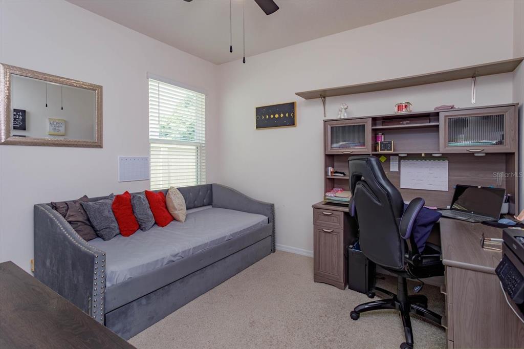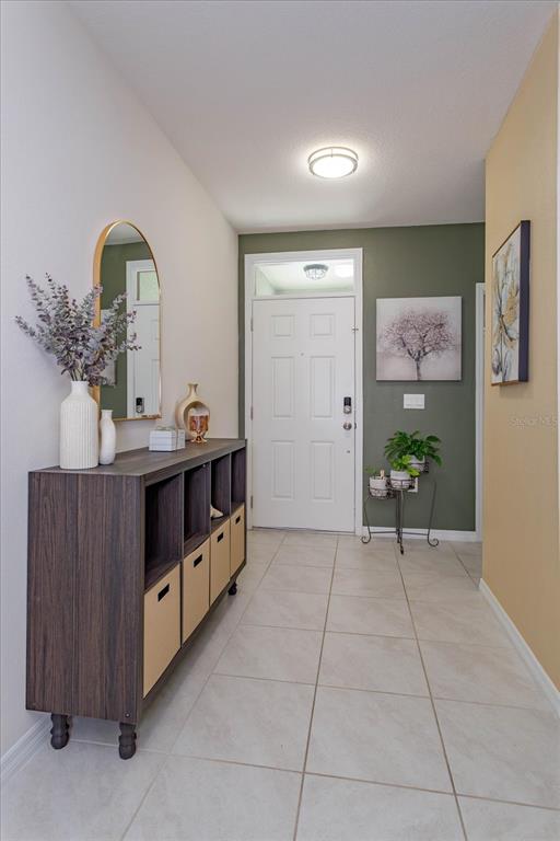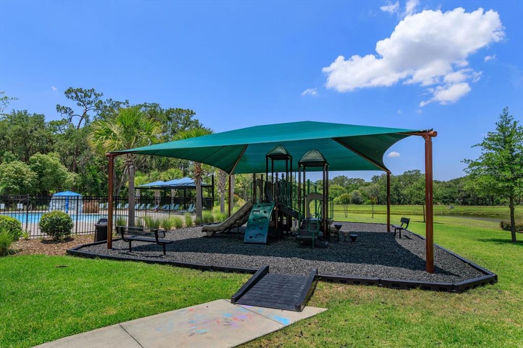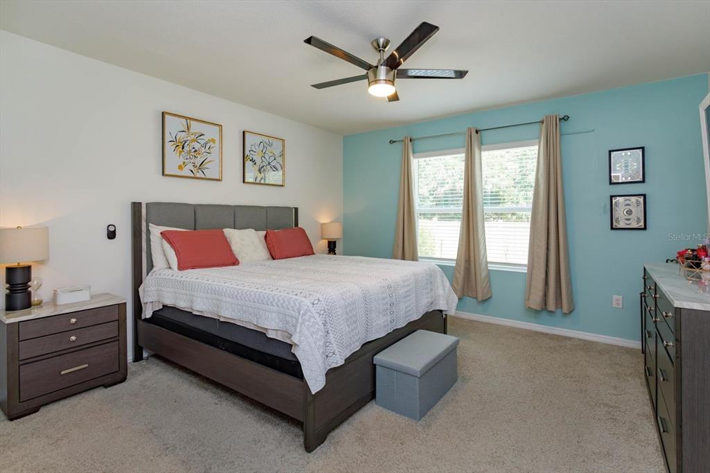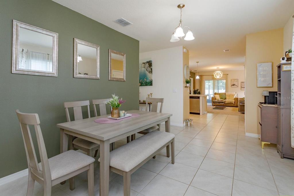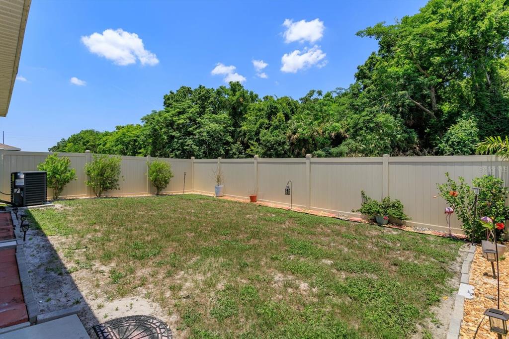 the “Allex” model offers 3 bedrooms/2 bathrooms with an open, two-way split plan featuring neutral paint tones and plenty of natural light throughout. Great curb appeal with striking landscape planters will welcome you into this well-maintained home. Situated on a premium lot with no rear neighbors for added privacy. The kitchen is highlighted by upgraded light cabinets, custom backsplash, stainless-steel appliances and adjacent built-in custom bar. The living room is ideal for entertaining family and friends and features a custom wall unit and large screen TV. The primary bedroom is spacious with a large upgraded walk-in closet, ensuite bathroom, walk-in shower and dual rain shower heads. Extend your living area outdoors with a screened and insulated lanai, which can be enjoyed year-round. The back yard is fenced, featuring solar lights and highlighted by river rock. Additional upgrades include: custom light fixtures, ceiling fans, keyless pad entry, upgraded interior door handles, upgraded kitchen sink faucet, crown molding – kitchen cabinets, upgraded microwave, added storage/shelving in laundry room, additional storage in garage/attic, garage door opener, keypad/remotes, upgraded landscaping, custom landscape lights front/back yard, artificial grass rear side yards, exterior security cameras/motion lights. Conveniently located to shopping, restaurants, medical and major roads.