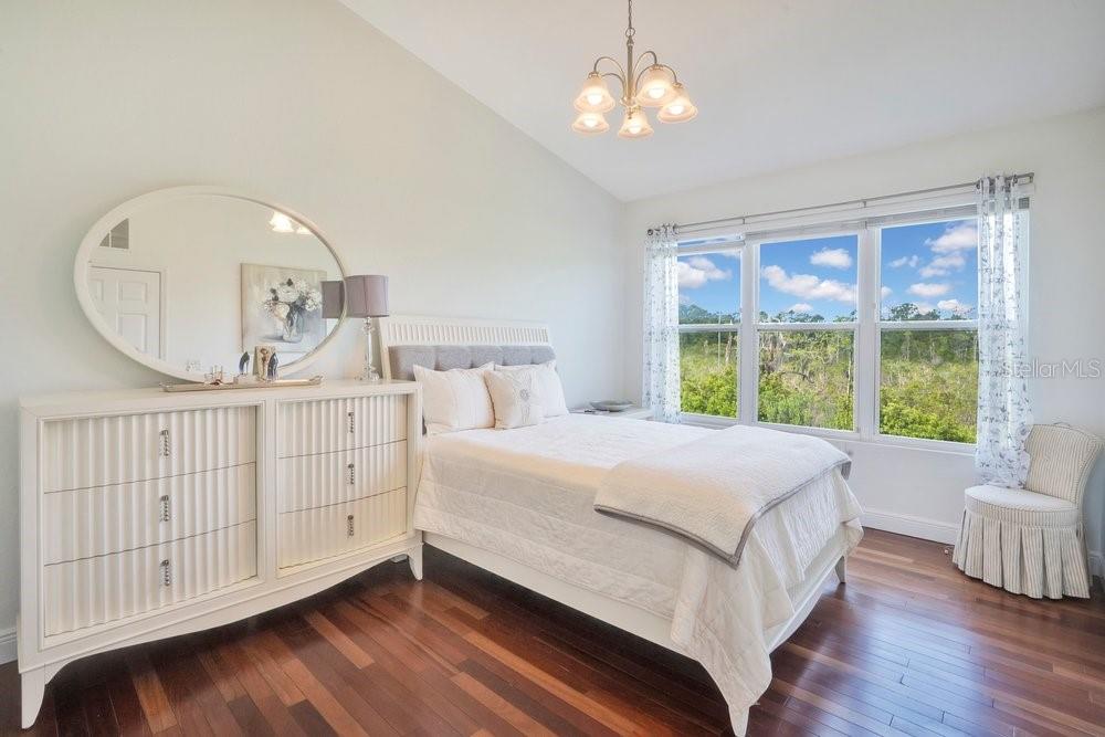 Spanning nearly 1,900 square feet, this spacious second-floor unit features an open-concept layout with elegant wood flooring, high ceilings, and abundant natural light. The living and dining areas flow seamlessly to a private screened lanai with no rear neighbors, offering peaceful wooded views—the perfect spot to relax and unwind.