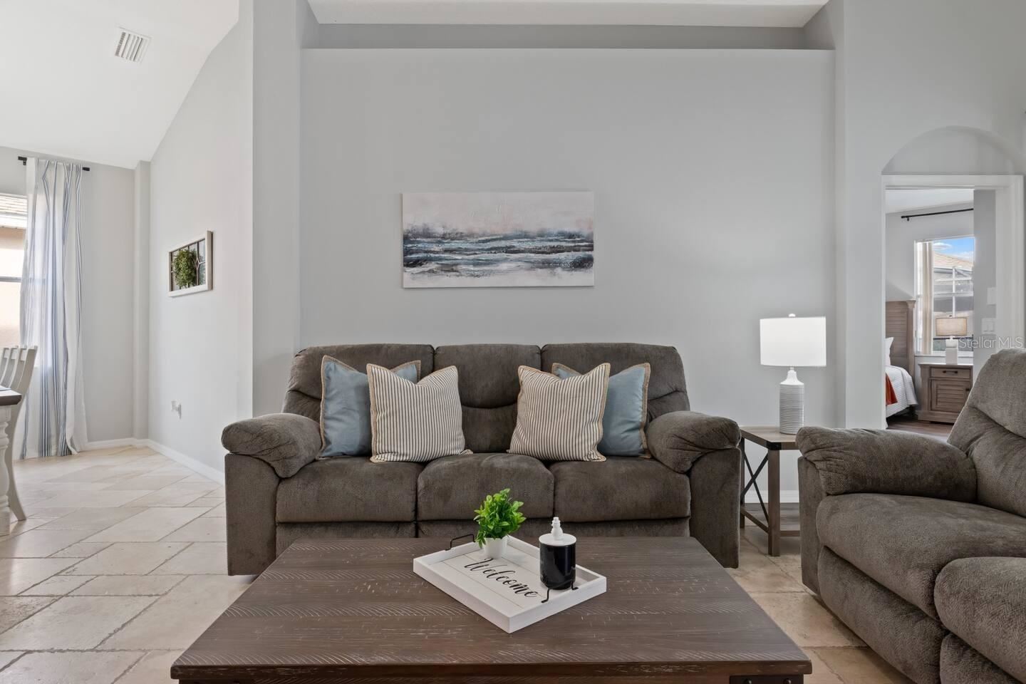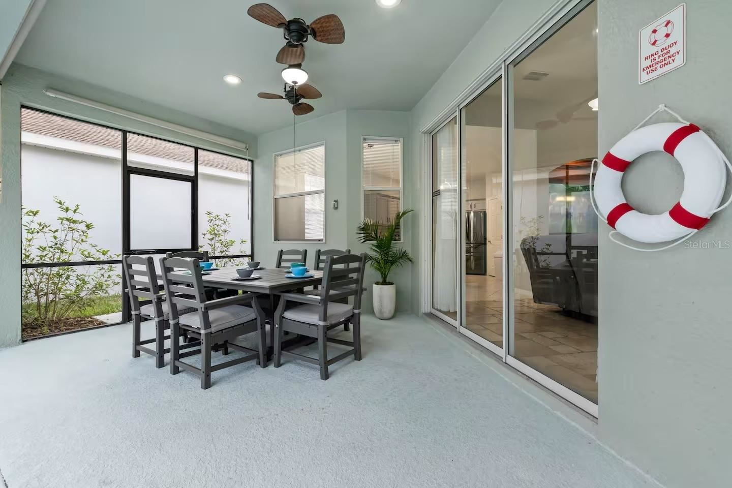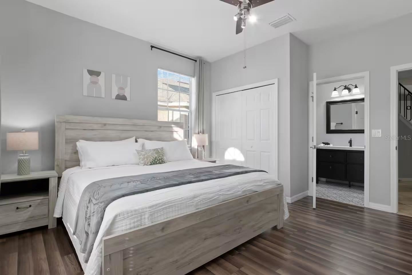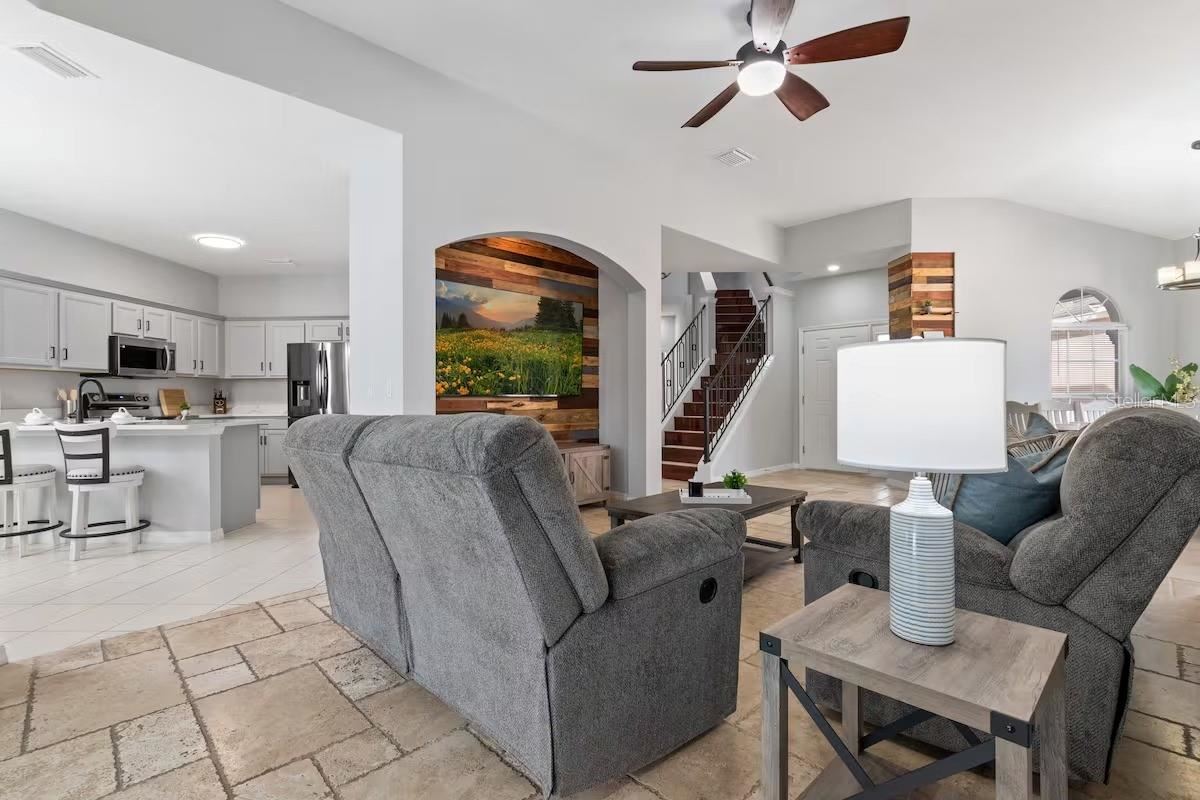 Charming Turn-Key Home with Established Short-Term Rental Business Opportunity!!! This impeccably 5-bed, 4-bath maintained home in the gated community of Calabay Parc at Tower Lake is not only move-in ready, but is also an active short-term rental property on Airbnb and Vrbo with 5-star guest reviews that can be transferred to the new owner’s accounts, ensuring continuity and immediate credibility with future guests. The property is being sold fully furnished, allowing for a seamless transition, whether you plan to use it as a private residence or continue renting it out. This spacious home is full of upgrades. It features a gas-heated pool and spa resurfaced in 2021 with LED multi-color lights. Brand-new roof (2022). Travertine flooring, fresh interior paint, and an updated kitchen. Major improvements include new HVAC units (2020 and 2024), primary bathroom and walk-in closet remodel, plus washer, dryer, and refrigerator (2022), water heater (2023), energy-efficient pool pump (2023), pool filter (2024), and pool heater (2025). The layout offers a primary suite and a bonus room downstairs, along with another bedroom and a full bath. Upstairs includes a guest suite with an en suite bath, two more bedrooms, and a full bathroom. The large pool deck is perfect for entertaining. The community allows short- and long-term rentals (Airbnb/VRBO), and the HOA includes landscaping, clubhouse access, and a private boat ramp/dock. Conveniently located near shops, restaurants, and just 30 minutes from major theme parks. Schedule your showing today. Don’t miss this opportunity to own a home that offers comfort and a ready-to-operate business opportunity!