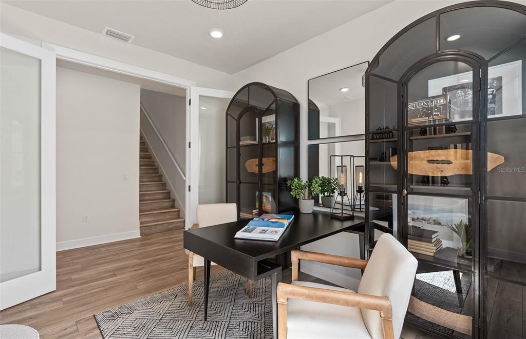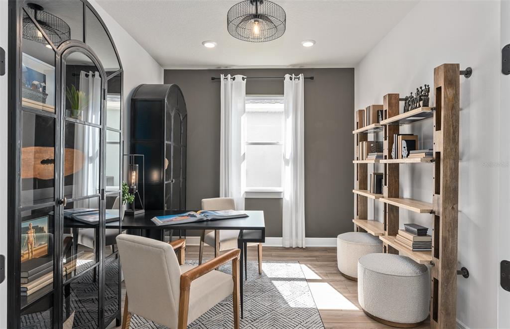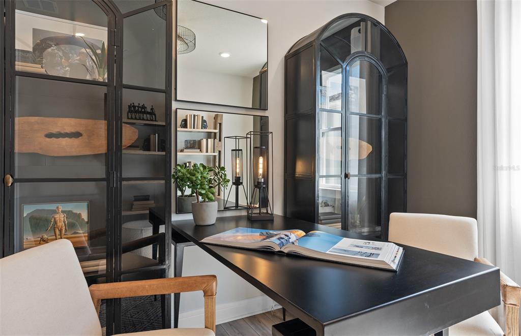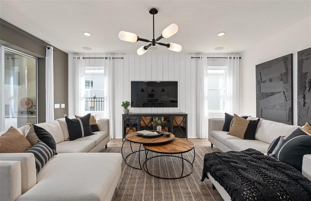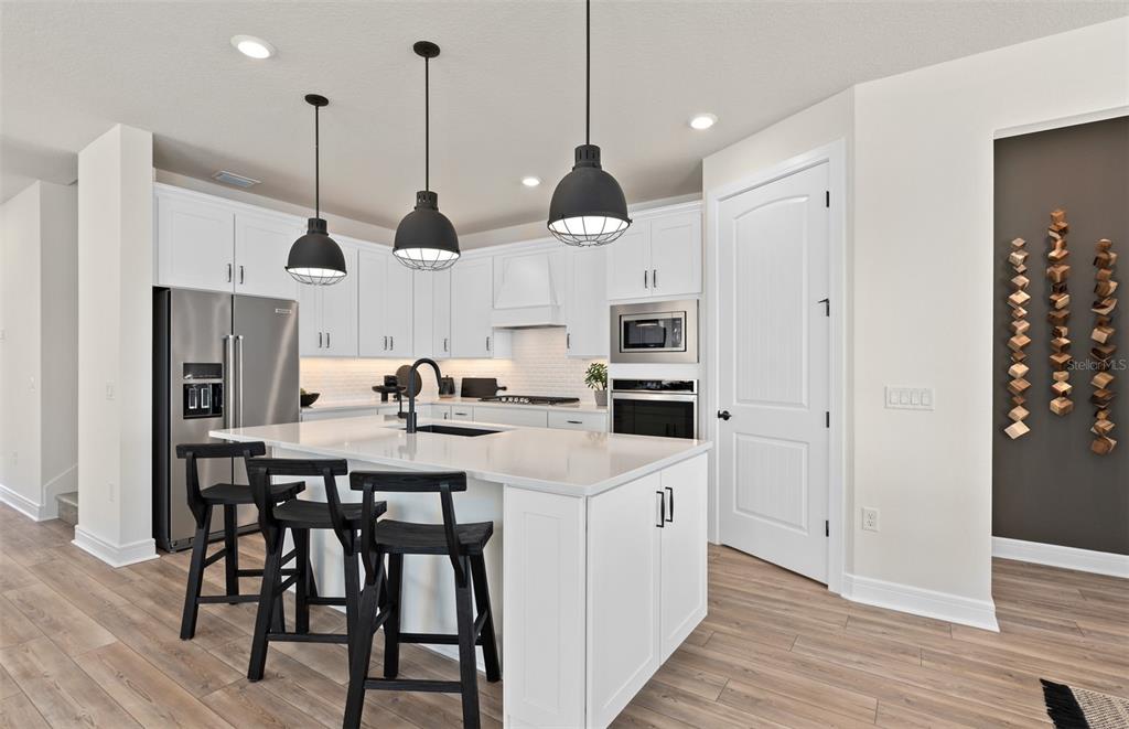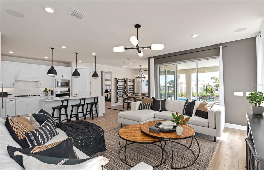 Experience the perfect blend of luxury and convenience with Mystique Grand home. Formerly a model home, this two-story home offers a thoughtfully designed layout featuring 3 bedrooms, an enclosed flex room, 3 bathrooms, in ground pool and spa with an outdoor kitchen, and a 2-car garage with tandem storage. The owner’s suite is conveniently located on the first floor, offering a private retreat with a spa-inspired en suite bathroom. The heart of the home is the open-concept kitchen, cafĂ©, and gathering room, where natural light floods the space, creating a welcoming and airy atmosphere. Tall ceilings, expansive windows, and a pocket sliding glass door leading to the extended covered lanai seamlessly blend the indoor and outdoor living areas, ideal for effortless entertaining. Step outside and enjoy your back yard oasis complete with an inground pool and spa, as well as an outdoor kitchen. Inside, the gourmet kitchen is a true highlight, featuring a Whirlpool built-in natural gas cooktop, microwave, oven, and refrigerator, white soft-close cabinetry, quartz countertops, and a decorative tile backsplash. A spacious walk-in pantry, granite single-bowl sink, and upgraded faucet complete this culinary space, which is both stylish and functional. The owner’s suite is designed for relaxation, with an en suite bathroom that includes a walk-in shower with a built-in bench, dual vanity with quartz countertops, a linen closet, and an enclosed toilet for added privacy. On the first floor, you’ll also find a conveniently located spare bedroom, full bathroom, and enclosed flex room that can easily serve as an office, hobby room, or guest retreat. Upstairs, the expansive loft provides additional space for leisure, and the third bedroom features its own walk-in closet and private bathroom. Throughout the home, designer-curated finishes enhance the sense of luxury, including matte black hardware, wood-look luxury vinyl plank flooring throughout the first floor, tile flooring in the bathrooms and laundry room, and plush Shaw carpet adds warmth to the upstairs bedroom and loft. This home is also equipped with the latest in home technology, including surround sound pre-wire, digital IP camera pre-wire, security system pre-wire, and LED downlights. Don’t miss the opportunity to own this beautifully designed home with unparalleled functionality and elegance. Schedule your tour today!