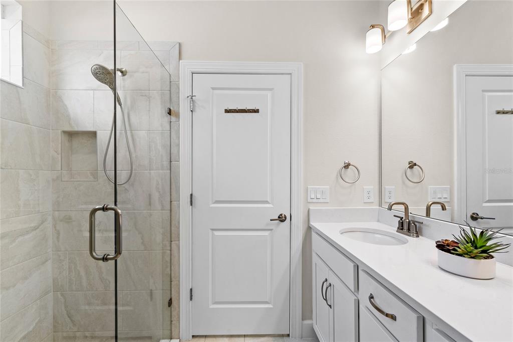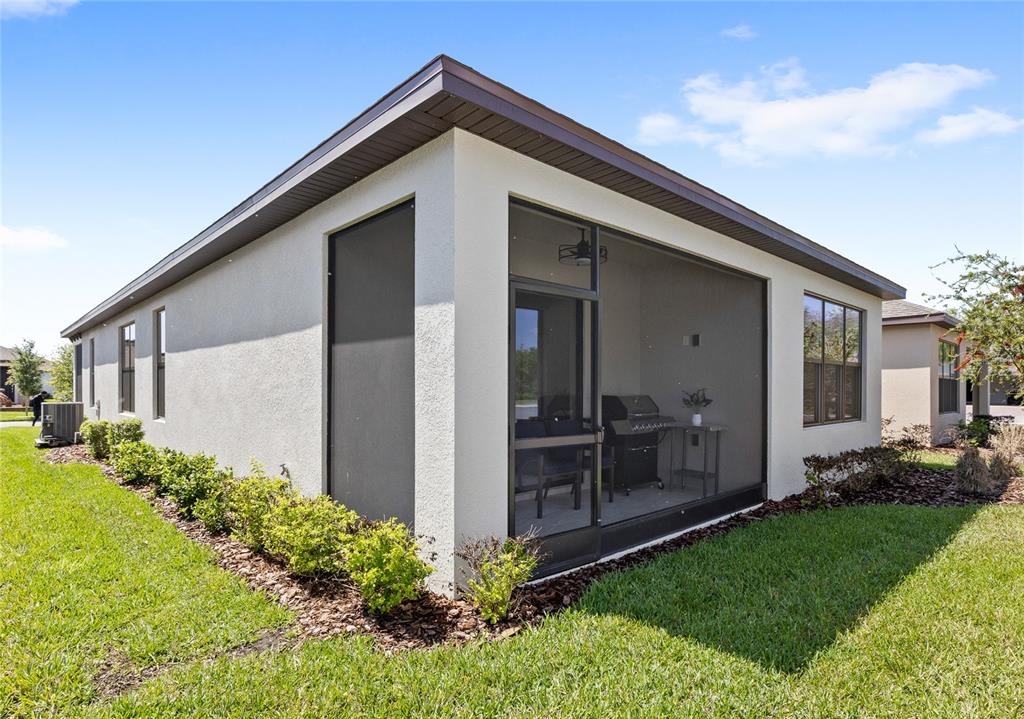 Welcome to Solivita, an award winning 55+ gated community in Central Florida known for its vibrant, resort-style lifestyle. This stunning 2024 Salina model showcases thoughtfully designed living with high end finishes throughout. From the inviting screened in front porch to the bright, open concept layout, this home is perfect for both everyday living and entertaining. The kitchen features beautiful Corian countertops, soft close cabinetry with pull out shelving, and stainless steel appliances. The living and dining areas flow seamlessly to the screened lanai with upgraded tile flooring creating the perfect space to relax and unwind. Enjoy the convenience of no carpet throughout, along with upgrades like under cabinet lighting, electric blinds, a full house water filtration system, and a laundry room with sink and designer backsplash.