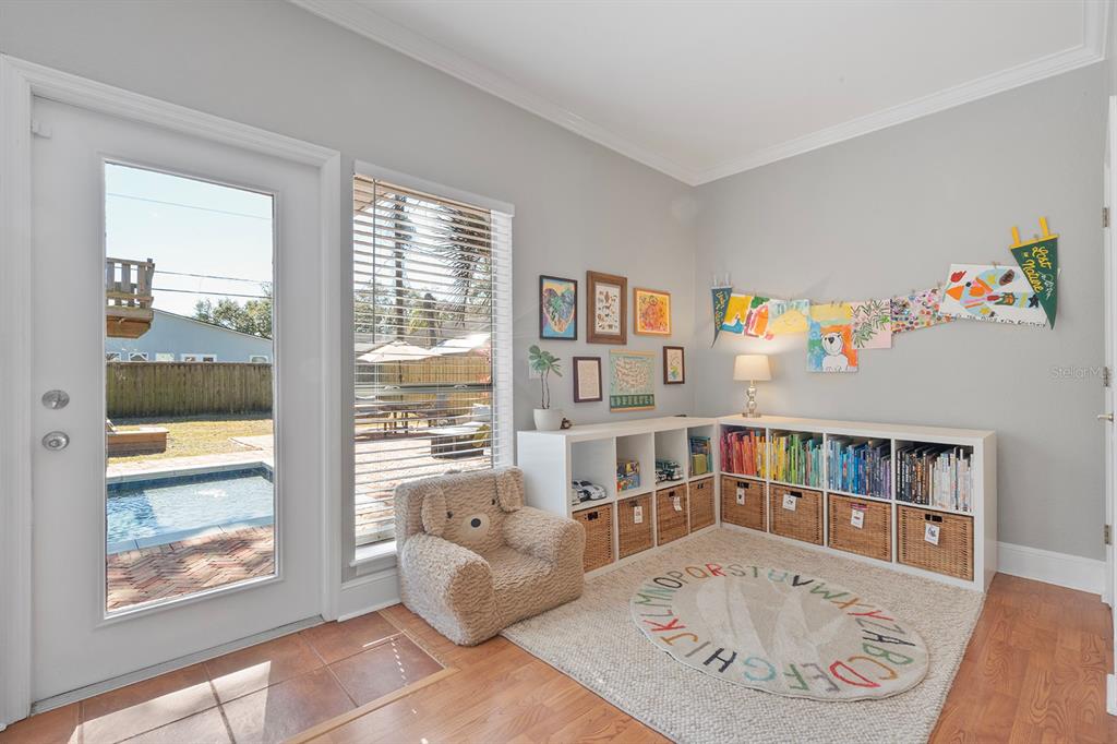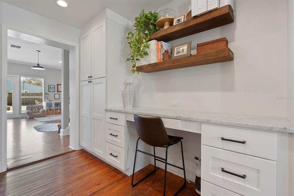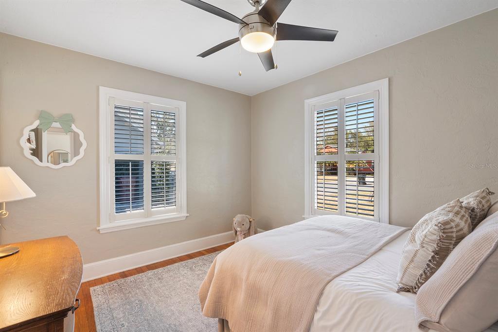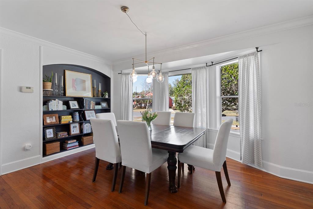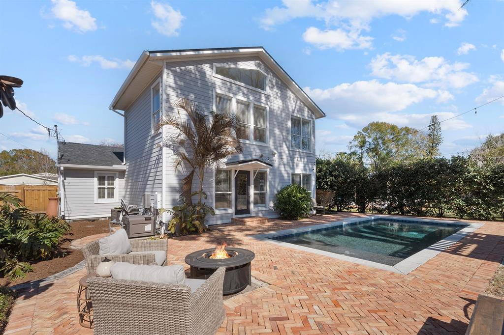 Welcome home to this charming three-bedroom, two-bath beauty in the heart of College Park. Built in 1941, this home captures all the character you love from a classic 1940s bungalow while seamlessly blending in today’s modern comforts. From the moment you arrive, the curb appeal steals the show, manicured landscaping, an idyllic covered front stoop and a welcoming glass front door set the tone. Inside, gorgeous original wood floors flow through the foyer, dining room and kitchen, highlighting the timeless charm of the era. The dining room is a standout, featuring a graceful arched built-in shelf and a large window that frames views of the front yard. The recently updated kitchen is stylish and functional, offering a wood-block island with seating, gas range with hood vent, under-counter beverage cooler, beautiful cabinetry and an incredible built-in desk with shelving, ideal for working or planning your next gathering. The kitchen opens to an expansive 28-by-19-foot living room, where large picture windows and glass doors flood the space with natural light and showcase views of the spacious, fenced backyard. Outdoors, you’ll find a retreat, a majestic oak tree complete with a charming tree fort, ideal for play, quiet reflection, reading or simply soaking in nature. A wonderful heated pool is surrounded by a stunning brick pool deck and patio, creating a setting for entertaining or relaxing year-round. Two secondary bedrooms and an updated full bath are conveniently on the first floor. Upstairs, the entire level is dedicated to a private and spacious primary suite featuring vaulted ceilings, abundant natural light and a beautifully updated bath with dual sinks, a large glass-enclosed shower and a luxurious soaking tub. A detached one-car garage completes the home. Enjoy the unbeatable location, go to or bike to the vibrant shops and dining along Edgewater Drive, with easy access to downtown Orlando and downtown Winter Park. This is College Park living at its best, classic charm, thoughtful updates and an exceptional lifestyle.