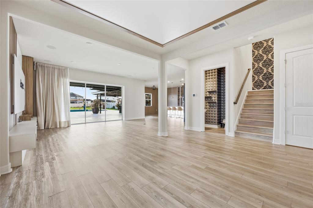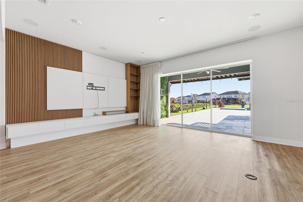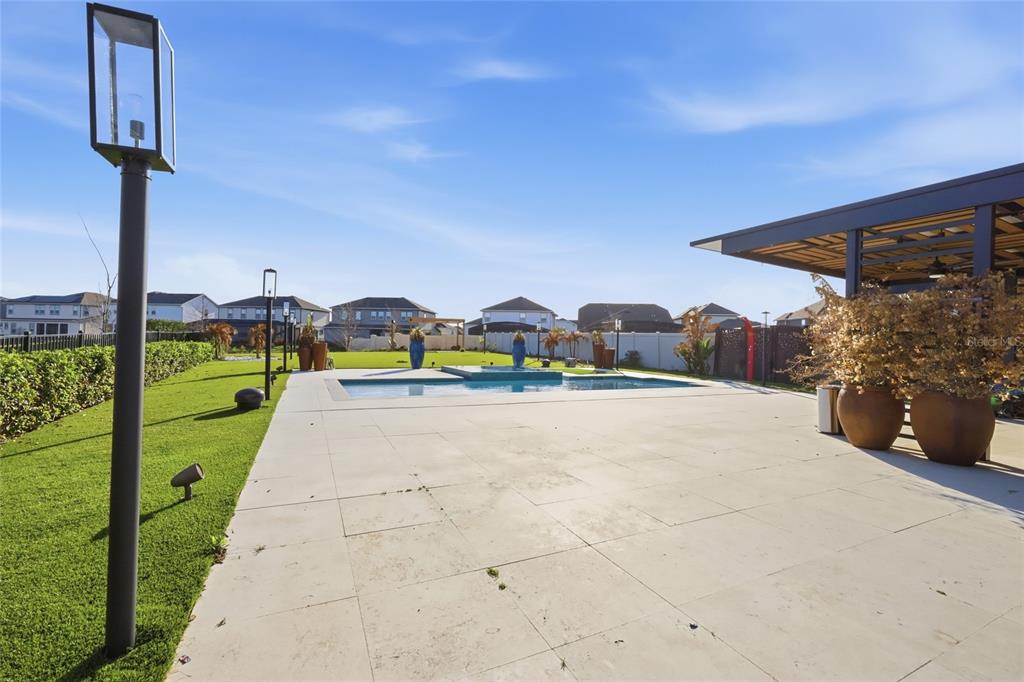 The backyard is truly a private resort-style retreat, complete with a stunning pool and expansive outdoor living space designed for pure enjoyment. Whether you’re hosting guests or relaxing at the end of the day, this outdoor oasis provides the perfect setting while overlooking peaceful lake views. The property also features a state-of-the-art sound system, enhancing the entertainment experience both inside and out.
