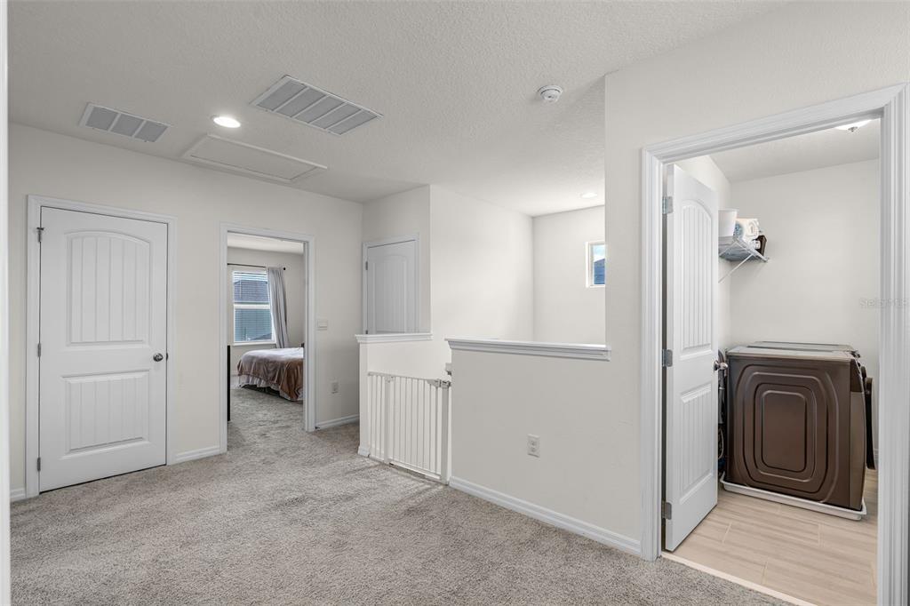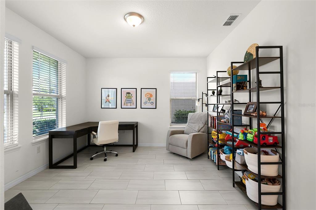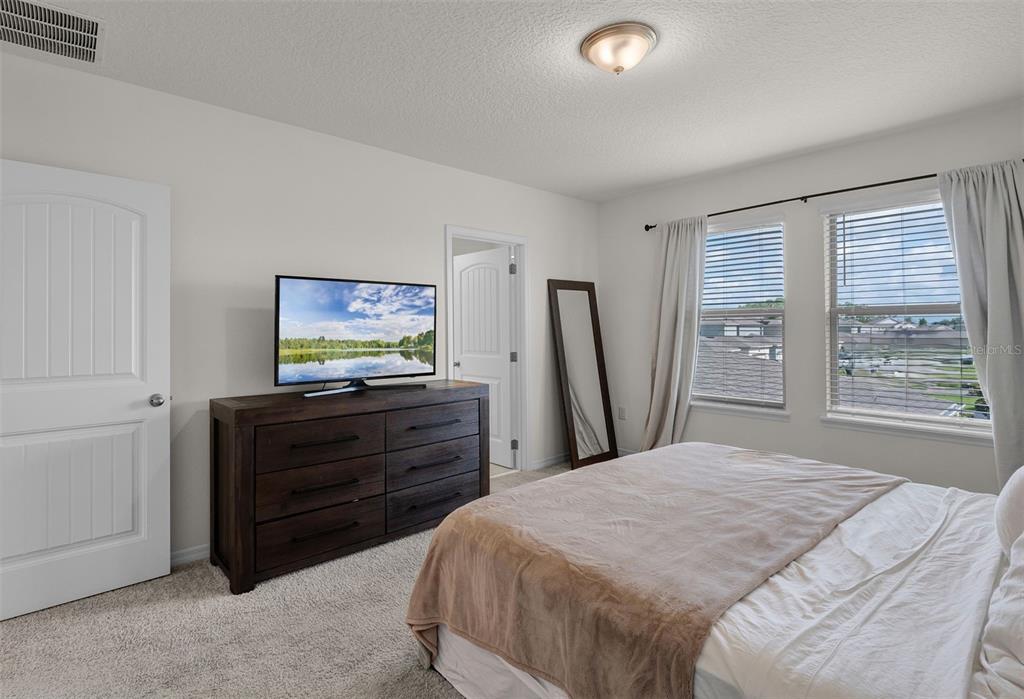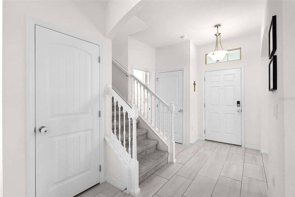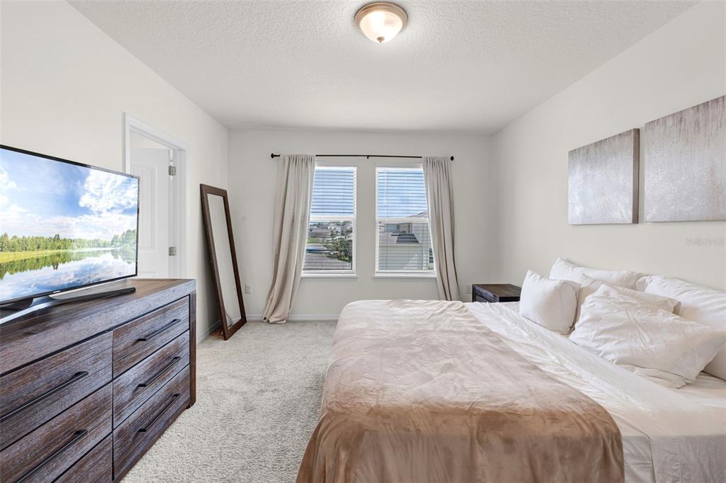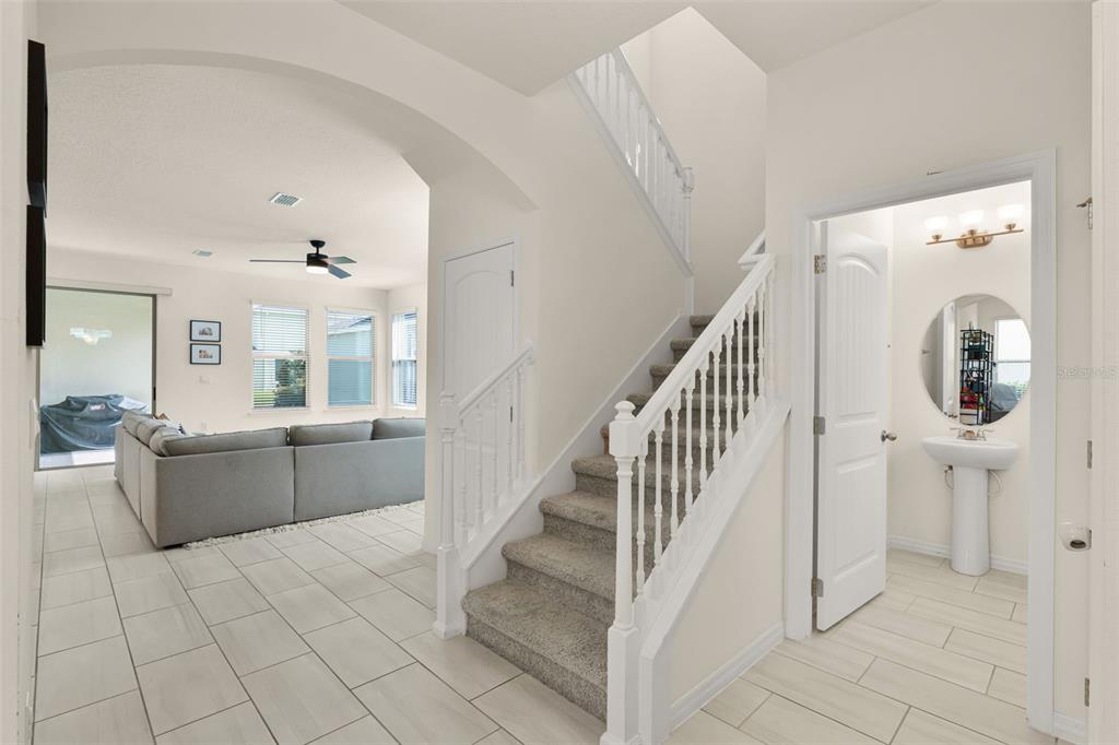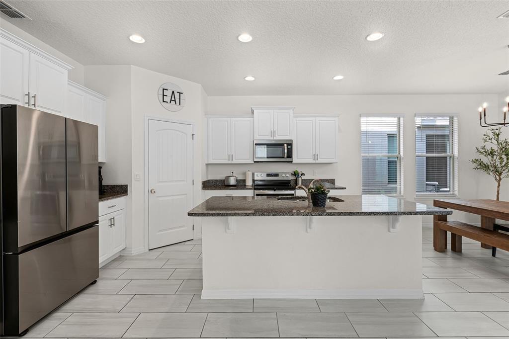 NEARLY NEW “BELLAKE” MODEL HOME featuring 3 bedrooms and 2.5 bathrooms, situated on a PREMIUM LOT just a short Walk to the BRAND NEW Phase 4 POOL & GYM, Atwater Bay Elementry School, Waterfront Park and Community Playground! Excellent features include Upgraded Rectangular Tile throughout the first floor! A GOURMET KITCHEN with Shaker Cabinets, GRANITE Countertops, and Stainless Steel Appliances (including a French-door Refrigerator) an oversized ISLAND and a LARGE Walk-In Pantry. Great OPEN CONCEPT FLOOR PLAN: The kitchen opens directly into the dining area, and the family room overlooks a COVERED PATIO—offering the perfect space for RELAXING, Chilling and Grilling! The FLEX SPACE at the front of the home serves perfectly as an Office or Formal Dining Room – or ADD a DOOR and Make Bedroom 4! SUPERIOR STORAGE options abound, including a DROP ZONE area with a Closet and 6 Feet of Cabinetry and Counter Space! PLUS there is a HUGE under the stairs Storage Closet AND a front Hallway Closet! A convenient Powder Room completes the First Floor. Upstairs, you will find a spacious Primary Suite with a Bath featuring DOUBLE SINKS, LARGE Shower, Upgraded Cabinets, Granite Counters, a Linen Closet and a generous 10′ x 6′ Walk-In Closet. Bedrooms 2 and 3 share a Full bathroom with DOUBLE Sinks! The Laundry Room includes a Front Load Washer and Dryer! This Energy Efficient home SAVES you $$$ on Utility bills. Gutters have been added, and the LONG Driveway provides ample additional Parking Space. The HOA handles all Lawn Maintenance, allowing you to fully ENJOY this PREMIER Lifestyle Community—which boasts 4 RESORT Style Pools, 3 Clubhouses, 3 Fitness Centers, Beach Volleyball, Tennis Courts, Parks, Playgrounds, Special Events, and Vews of the DISNEY Fireworks! Zoned for the NEW Atwater Bay Elementary, Water Spring Middle, and Horizon High School. Close to theme parks, shops, restaurants, and the 429!