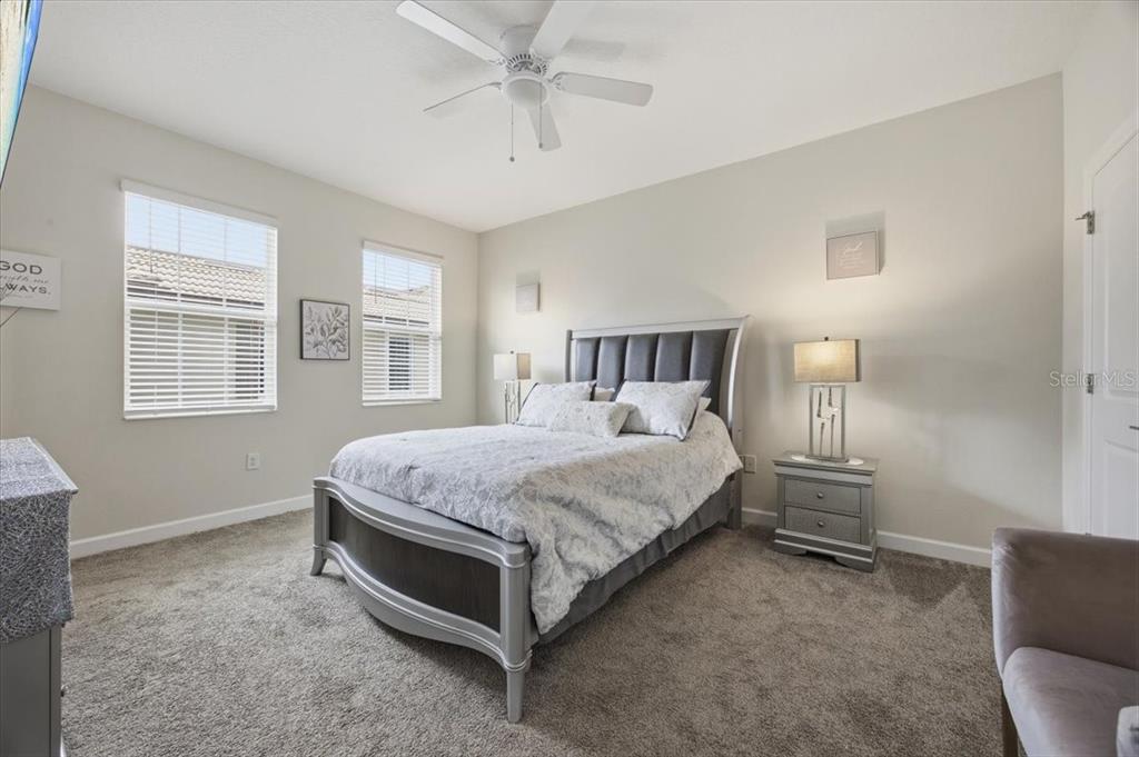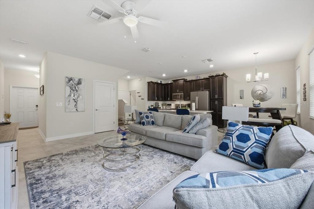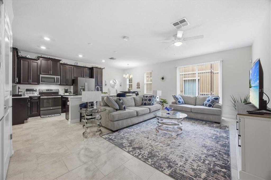 This luxurious, fully furnished townhome features three bedrooms, 2.5 baths and a one-car garage in The Vistas, an exquisite community within nationally recognized Championsgate Golf Course. The property boasts a tile roof and an open floor plan on the first floor, which includes a gourmet kitchen fully equipped with quartz countertops, 42-inch cabinets, stainless steel appliances and you will also find a half bath and sliding doors that lead to a rear patio area. On the second floor, there is a reasonably sized loft area that can serve as a game room or office, depending on your needs. As a resident, you will not only enjoy your beautiful home, but also the many amenities the community has to offer, which includes a games room, golf simulator, fitness room, wet sauna and a luxurious resort-style swimming pool with heated spa. The Championsgate Golf Club and community pool are just three minutes away. Additionally, as a resident of The Vistas, you will have free access to the Championsgate Vacation Resort Oasis Club just five minutes away. The community is also just minutes from Walt Disney World, the Omni Hotel and Resort, International Drive, Interstate 4 and other exciting attractions. Residents and Visitors of The Vistas can enjoy numerous recreational, dining and shopping options, all within minutes from their doorstep. The HOA fee covers basic cable, internet, lawn maintenance and pest control. This beautiful home is move-in ready and furnished to a high-quality standard. Must be viewed to be appreciated!