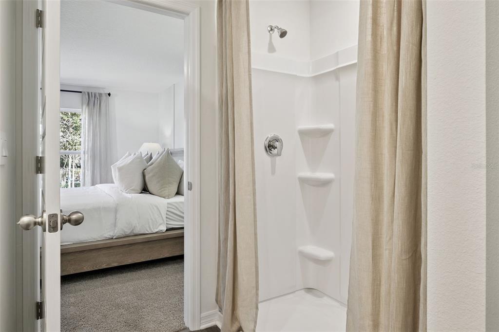 The primary bedroom located in the rear of the home has its own attached bathroom that features a walk-in closet and all the space you need to get ready in the morning. Sharing a sink isn’t a worry with the double vanity.