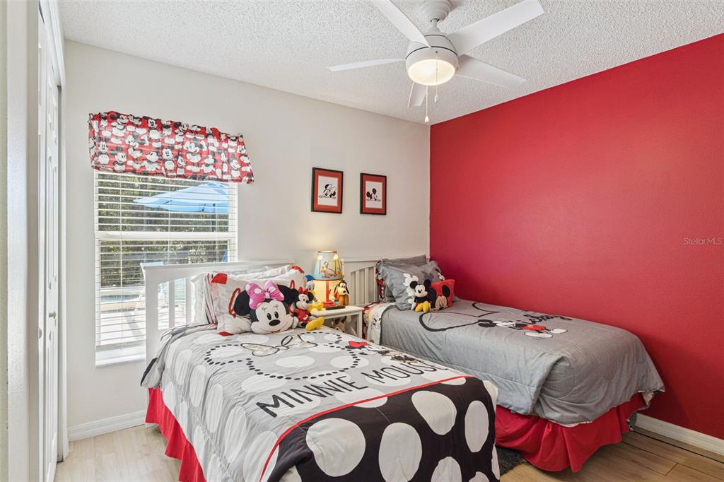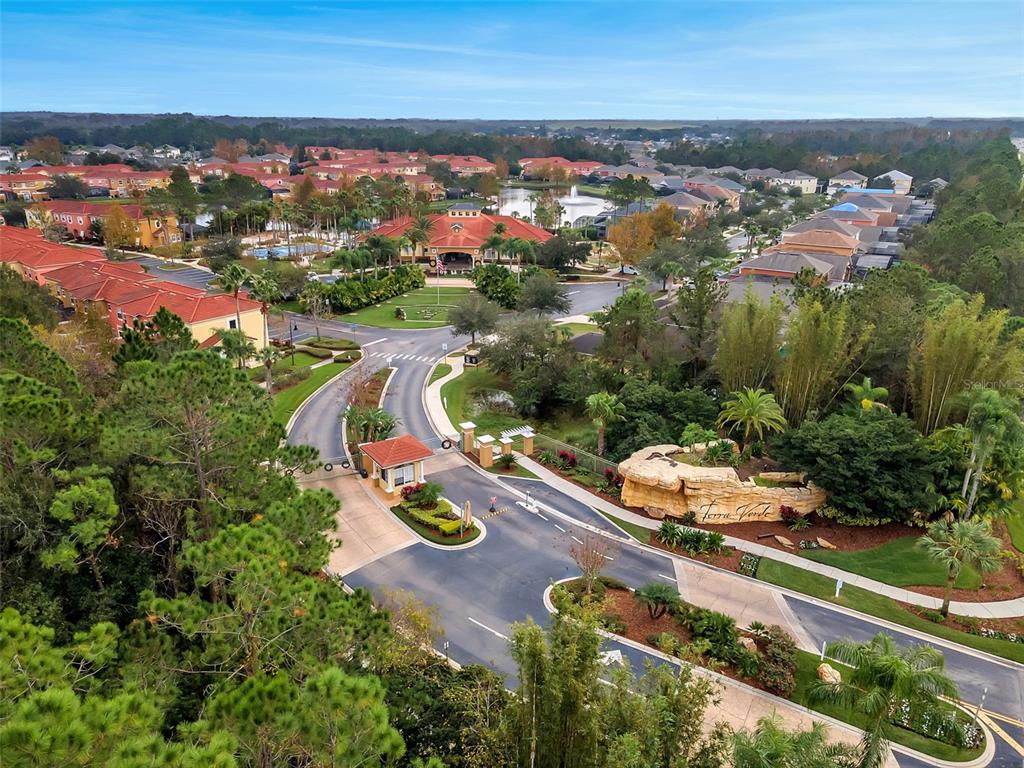 A beautifully furnished 4-bedroom, 3-bathroom pool home with two ensuite bedrooms, set within a guard-gated resort community, offering a tranquil wooded view and a highly sought-after south-facing pool deck bathed in sun all day. From the moment you step inside, the home’s open layout, high ceilings, and abundant natural light create an inviting and spacious feel. At the front of the home, a formal living and dining area with decorative shelving provides a welcoming first impression, while the main living space unfolds toward the rear with a seamless flow between the kitchen, casual dining area, and family room—ideal for both relaxing and entertaining. The remodeled kitchen features granite countertops, modern cabinetry, and a counter-height breakfast bar, all designed to connect effortlessly with the main living areas. Large sliding glass doors from the family room open up to the outdoor space, blending indoor and outdoor living. The primary suite is generously sized and positioned to enjoy views of the pool and conservation. It includes a large closet and a remodeled ensuite bathroom with granite counters, a modern rectangular sink, a separate shower, and a spacious corner soaking tub. A second bedroom also offers its own ensuite bathroom, providing flexibility for guests or strong short-term rental appeal. Two additional themed twin bedrooms share a third updated bathroom, also finished with granite counters and contemporary fixtures. Throughout the home, ceramic tile flooring runs through the main living areas, complemented by laminate wood flooring in the bedrooms, offering both style and durability. Step outside to a spacious south-facing pool deck designed for all-day sunshine—an especially desirable feature for short-term rentals. The outdoor area includes multiple seating spaces, lounge chairs, and a private pool with a bubbling hot tub, all overlooking a peaceful wooded conservation backdrop. The setting is both private and relaxing, with ample deck space for enjoying Florida living year-round. This home is fully furnished and turn-key, making it an excellent opportunity for personal use, a second home, or an income-producing vacation rental. Recent updates provide added confidence and peace of mind, including a roof replaced in 2019, an AC system approximately 5 years old, an electric pool heater installed just 2 years ago, and a washer and dryer also replaced within the last 2 years—helping ensure the home is as functional as it is well presented. Located within Terra Verde Resort, a well-established, guard-gated community known for its amenities, residents and guests enjoy access to a lakefront clubhouse, resort-style pool, fitness center, playground, game room, and sports courts, all just 12 houses down from the property. The location offers outstanding convenience—just minutes to US-192 with its wide array of shopping, dining, and entertainment options. Walt Disney World is only 4 miles away, Universal Studios Florida 35 minutes, and Orlando International Airport is just 25 minutes, making travel and day trips effortless. A standout opportunity in a high-demand resort community—fully furnished, ideally positioned, and ready to perform from day one.