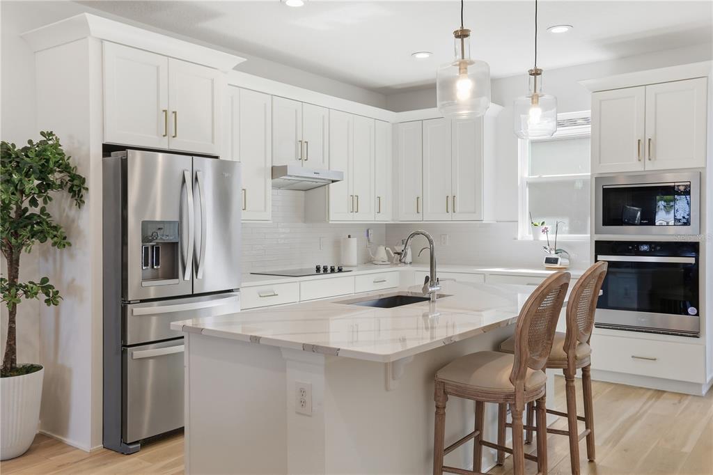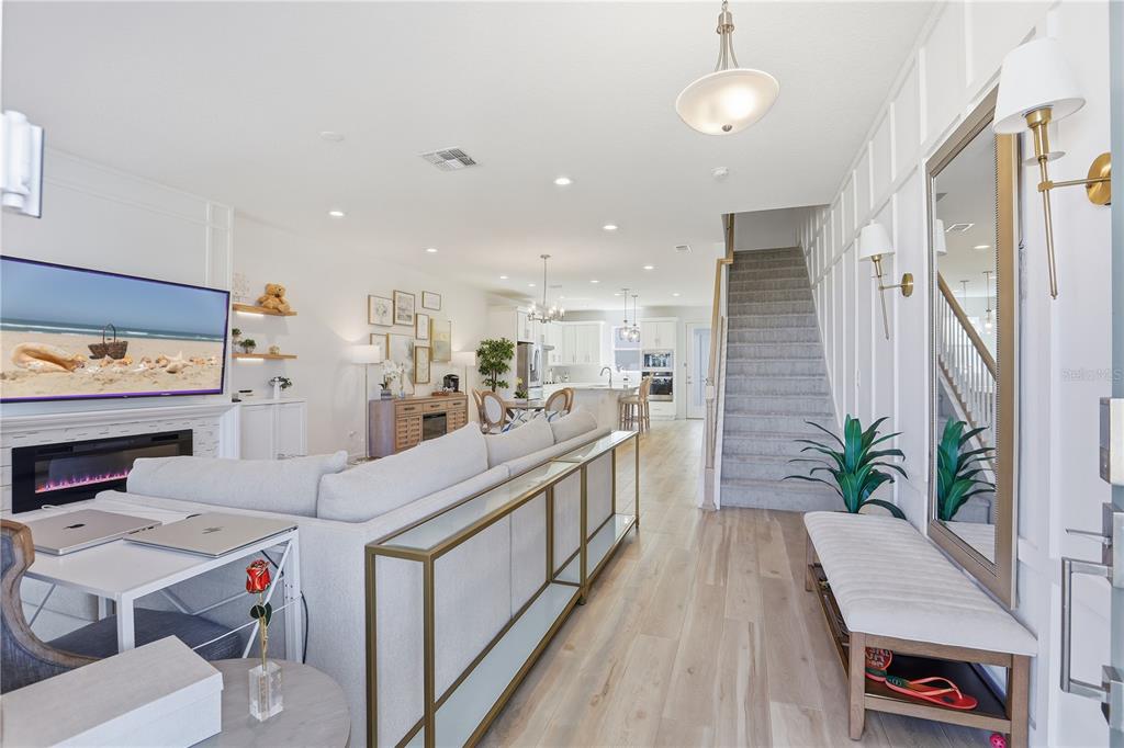 Welcome to this beautifully upgraded Toll Brothers townhome located in the highly desirable community of Westhaven at Ovation in Winter Garden. Built with the sought-after Kellogg Craftsman floor plan, this residence showcases extensive upgrades and modern finishes throughout. The open-concept floor plan offers a bright and spacious great room seamlessly flowing into the upgraded kitchen featuring quartz countertops, premium cabinetry, designer backsplash, luxury vinyl plank flooring, stainless steel Whirlpool appliances, and an oversized island perfect for entertaining. One of the standout features of this home is the private courtyard space located between the home and the garage, making it a perfect retreat to relax, entertain, or enjoy Florida’s beautiful year-round weather. This outdoor area adds valuable lifestyle flexibility and charm. Upstairs, the spacious primary bedroom offers a beautifully appointed bath with upgraded tile, quartz vanity tops, polished chrome fixtures, and a spacious walk-in shower. This home built in 2024 with two-story, reflects modern design and energy-efficient construction and blends modern elegance with functional living and thoughtfully designed indoor-outdoor flow. Located just minutes from Horizon West, Hamlin Town Center, top-rated schools, shopping, dining, and major highways.The water filtration system and jacuzzi spa are negotiable. This home is a must-see. Schedule your showing today.