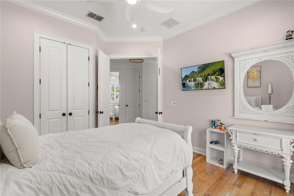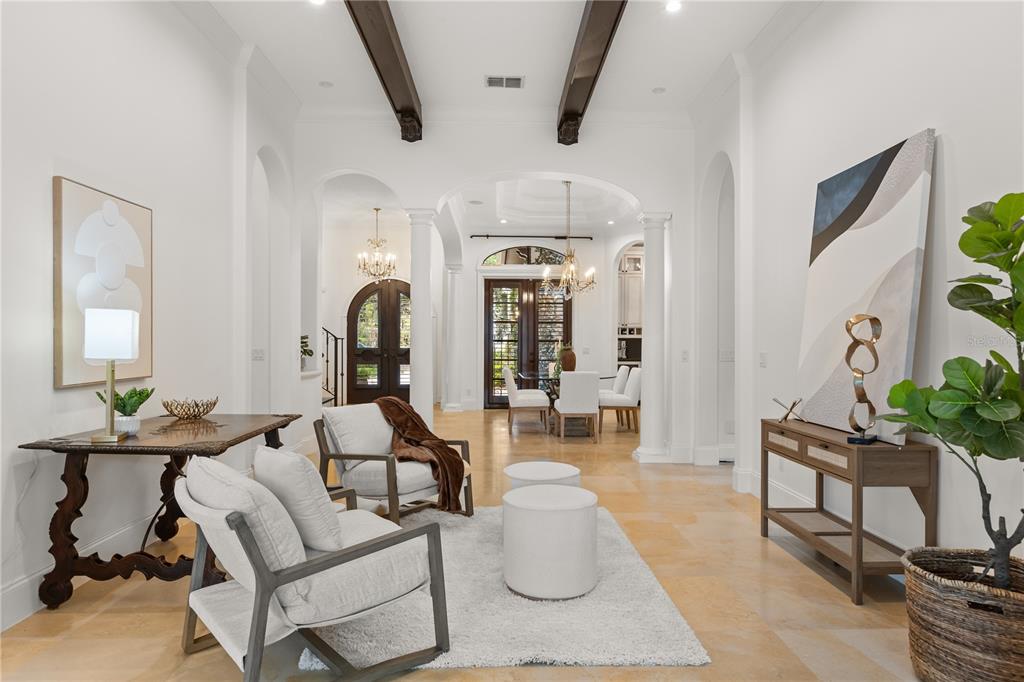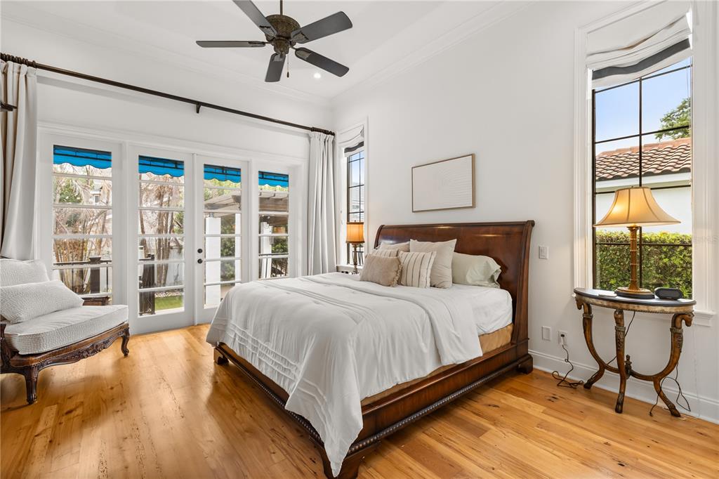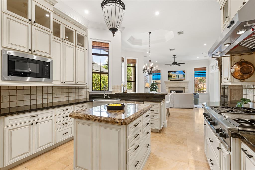 Welcome to your private slice of paradise, perfectly positioned on a charming brick-lined street in the heart of historic Winter Park. This custom-built estate exudes casual elegance from the moment you step through the grand double door entry, where soaring 12-foot ceilings, rich architectural details, and exceptional craftsmanship immediately set the tone. Thoughtfully designed with a well-balanced and highly functional floor plan, the home offers a seamless blend of formal and informal living spaces ideal for both everyday living and elevated entertaining. At the heart of the home, the pristine chef’s kitchen opens effortlessly to the family room and is outfitted with a built-in Thermador French door refrigerator, custom lighted cabinetry, granite countertops, a six-burner gas range with pot filler, double ovens with warming drawer, and an oversized island designed for gathering. A beautifully appointed butler’s pantry with wine fridge and wet bar creates the perfect transition to the formal dining space. Tucked away for privacy, a dedicated home office or library offers a quiet retreat for work or study. The first-floor primary suite is a true sanctuary, featuring intricate ceiling detail, expansive windows, and private French door access to the outdoor living space. The spa-inspired primary bath includes a jetted tub, dual vanities, and two oversized walk-in closets. Upstairs, three generously sized secondary bedrooms and two additional baths—including a private en suite—provide comfortable accommodations, while a charming Juliet balcony offers picturesque views of the tree-lined street below. Step outside to an exceptional outdoor living experience designed for year-round enjoyment. The covered lanai features a fully equipped summer kitchen with built-in grill, custom copper hood, and beverage fridge for the warmest Florida days. The saltwater pool creates a resort-style setting, surrounded by lush landscaping and enhanced by upgraded lighting and smart technology. This meticulously maintained home has been extensively upgraded, including new HVAC systems for both levels, on-demand water heater, whole-house surge protection, updated LED lighting with dimmer controls, smart home integrations for pool, irrigation, security, and climate, as well as complete interior and exterior repainting with premium finishes. High-end reclaimed maple and beech wood flooring has been installed and is complemented by refined architectural details such as curved archways, custom millwork, and elevated designer fixtures. Additional highlights include a newly created wine room, epoxy-coated garage flooring, central vacuum system, and enhanced exterior features with added awnings and detailed craftsmanship. Situated on a gorgeous lot with added privacy and with garage doors thoughtfully positioned away from the street, this home offers both presence and practicality. Just a short stroll to Lake Mizell and minutes from the renowned dining, shopping, and cultural experiences of Park Avenue, this exceptional property combines timeless design, modern upgrades, and an unbeatable location.