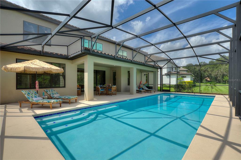 Step into Casa Grande Paradiso and imagine the life you’ll lead. Morning sunlight pours through soaring windows, giving the home its naturally sunny disposition. You sip coffee in the breakfast room as you gaze out at the shimmering 15’ x 39’ pool, framed by weeping oaks and a peek-a-boo lake view beyond. A quick swim in the resort-sized pool sets the tone for the day—whether it’s laps for fitness or laughter with family splashing by your side.