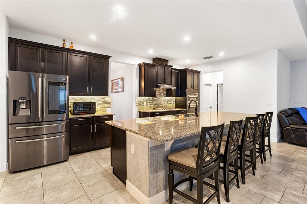 Welcome home to this beautifully upgraded 2,772 sq ft Brentwood model located in the highly sought-after Ardmore Reserve community of Minneola. Built in 2019, this stunning 4-bedroom, 3-bath home with a 3-car garage shows like a model and offers exceptional upgrades throughout. Tile flooring runs throughout the entire home and is complemented by 8-foot doors, enhancing the home’s open and grand feel. The gourmet kitchen is a chef’s dream, featuring an oversized island with breakfast bar seating for five, pendant lighting, granite countertops, tiled backsplash, gas cooktop, and built-in oven and microwave—perfect for entertaining. The spacious family room boasts an impressive 11-foot tray ceiling, adding to the light and airy ambiance. The oversized primary suite offers a luxurious retreat with an elegant en-suite bath, including a separate garden tub, large frameless glass shower with rainfall and main showerheads with touch panel controls, a private water closet, and a generous walk-in closet. Bedrooms, three and four also feature walk-in closets, providing ample storage and flexibility for family or guests. Enjoy Florida living year-round in the fully fenced backyard featuring fruit trees and a large covered lanai with an extended covered area—ideal for outdoor entertaining with privacy in mind. Additional highlights include whole-house water treatment, surround sound prewire, and a full-size 3-car garage with epoxy flooring, high ceilings, and ample overhead storage racks. Ardmore Reserve offers resort-style amenities including a community pool, sun deck, veranda, and shaded playground—and no CDD fees. Conveniently located near the Florida Turnpike, the community provides easy access to Disney and area attractions (approx. 30 minutes), Orlando International Airport (approx. 40 minutes), downtown Clermont and Winter Garden, shopping, dining, golf courses, trails, the National Training Center, and major retailers such as Costco, Publix, Target, and Home Depot. The new AdventHealth Minneola Hospital, medical offices, VA facilities, and top-rated schools including Minneola Charter School are just minutes away. Come experience this exceptional home and enjoy all the conveniences Minneola has to offer.