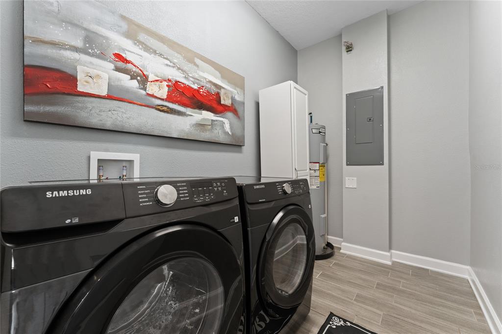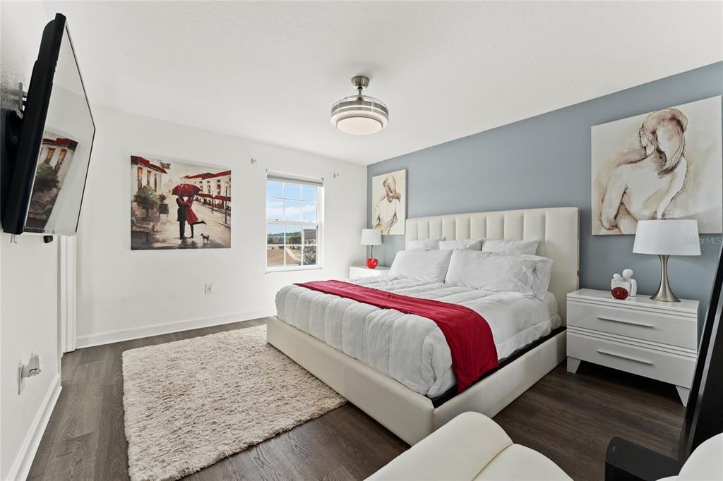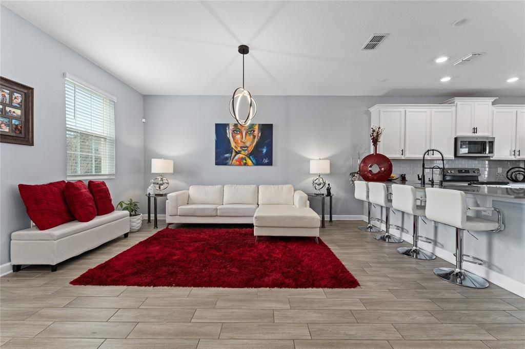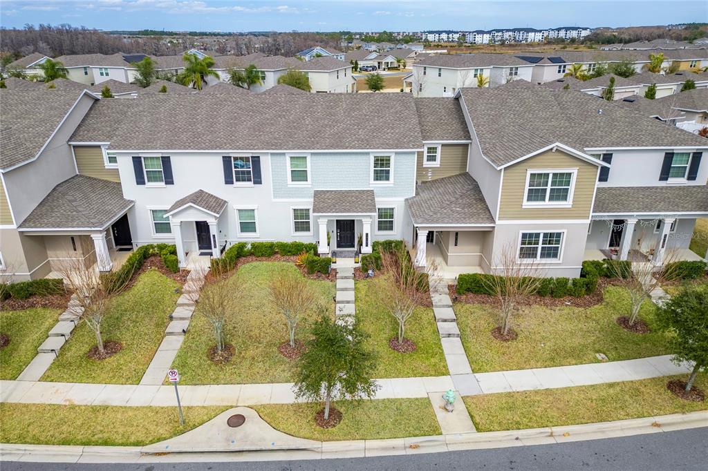 Impeccably maintained townhome in the highly desirable community of Storey Grove! Built in 2020, this beautifully cared-for 3-bedroom, 2.5-bath residence offers the perfect blend of style, comfort, and prime location. The open-concept first floor is designed for modern living and effortless entertaining, featuring tile flooring throughout the entire home, creating a clean, cohesive, and low-maintenance living environment. The spacious kitchen is a true highlight, offering abundant cabinetry, solid-surface countertops, stainless steel appliances, and a large center island that provides generous prep space and seating. The open layout allows the kitchen to flow seamlessly into the dining and living areas, making it ideal for gatherings and everyday living. Step outside to your privately fenced courtyard featuring a beautiful canopy, creating a shaded and inviting outdoor retreat perfect for relaxing or entertaining year-round. Upstairs, you’ll find three generous sized bedrooms and two full bathrooms. The primary suite includes a spacious walk-in closet and an elegant en-suite bath with dual vanities, offering both comfort and privacy. Ideally located just minutes from Walt Disney World, Disney Springs, Flamingo Crossings, major highways, shopping centers, restaurants, hospitals, and top-rated schools, this home delivers exceptional convenience in one of the most desirable areas near Orlando’s attractions. Whether you’re searching for a primary residence or an investment opportunity, this property is must-see.