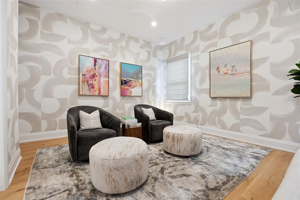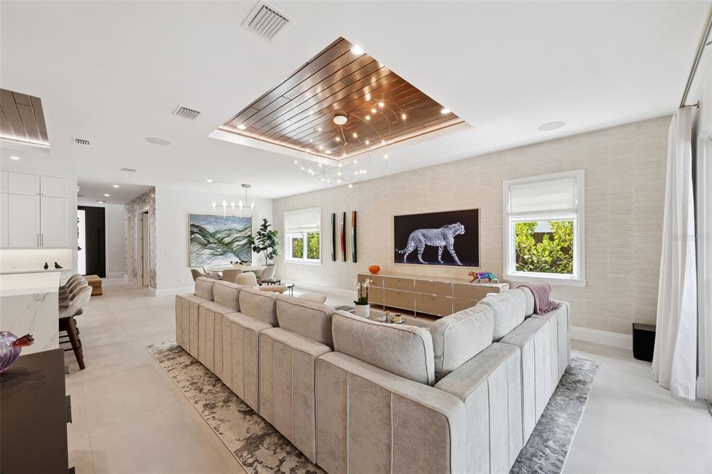 With approximately 3650 square feet, high ceilings and expansive windows flood the home with natural light, showcasing custom automated window treatments, designer wall coverings, and impeccably curated finishes throughout. The home is fully equipped with Control4 automation, providing intuitive control of security cameras, lighting, television, and doorbell systems. A Sonos surround sound system is featured throughout the interior and exterior of the home, creating a seamless entertainment experience indoors and out. A whole-home gas generator ensures uninterrupted comfort and peace of mind.