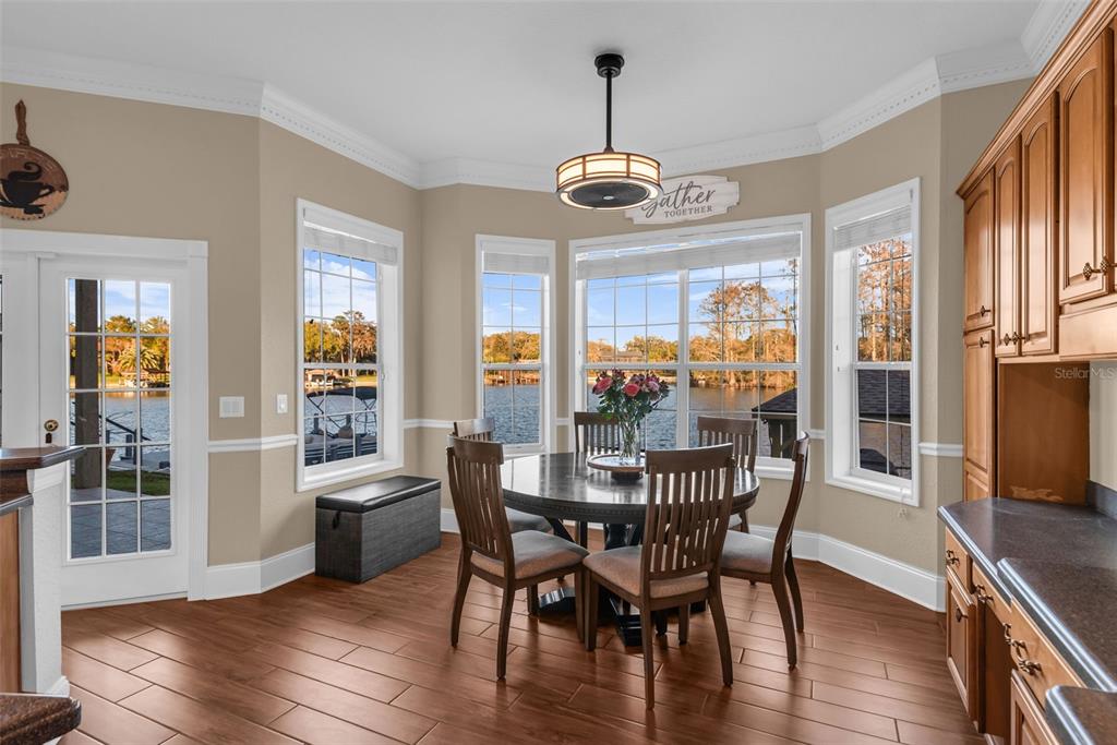 Unwind with the first-floor primary retreat, a spa-like en-suite with a jetted tub, separate shower, dual closets, and breathtaking water views.