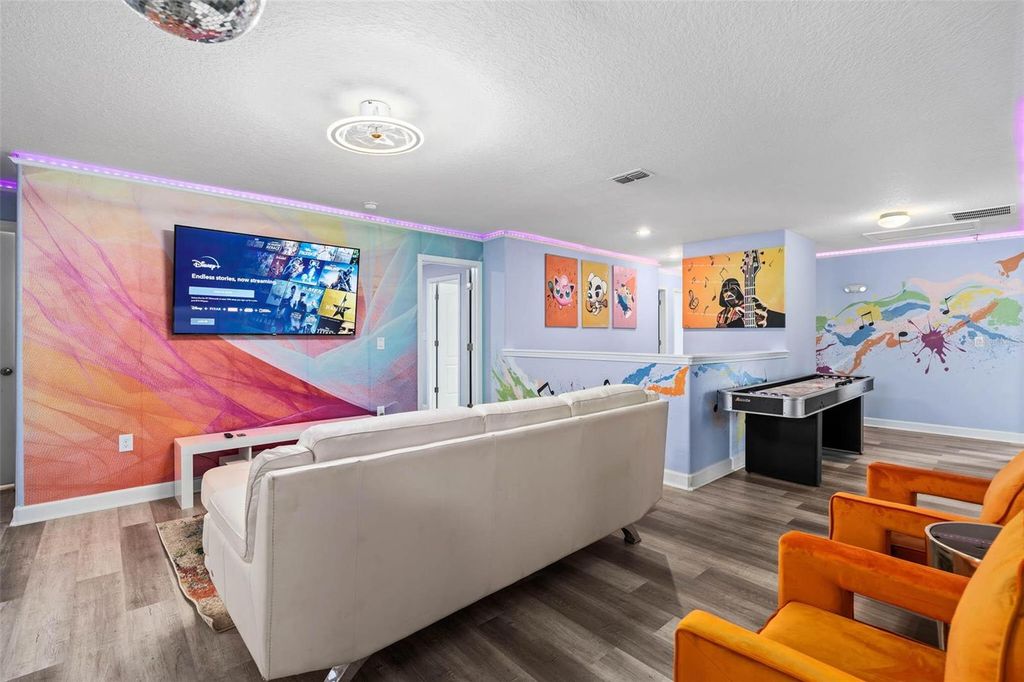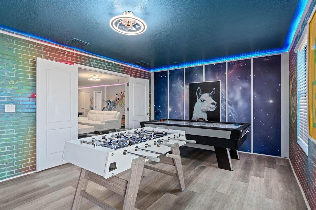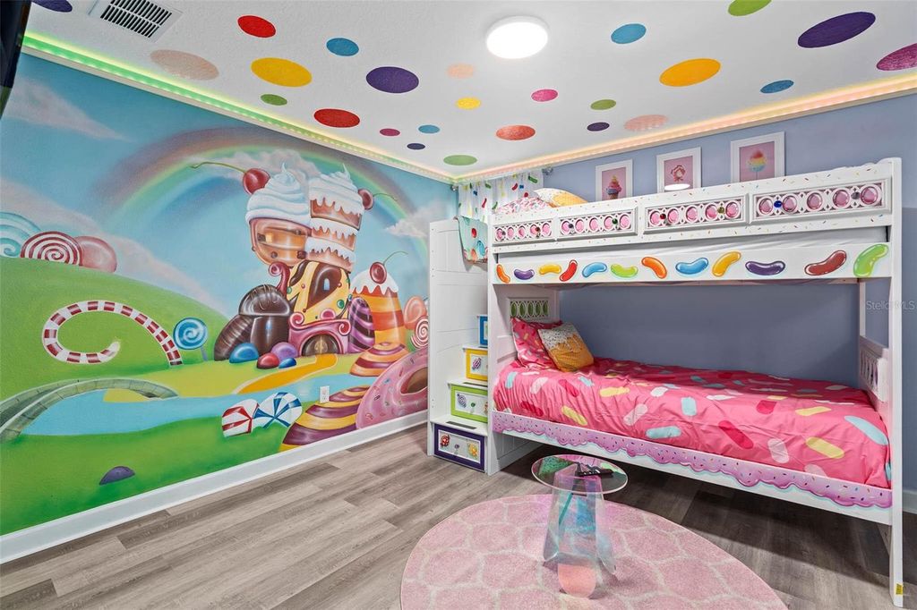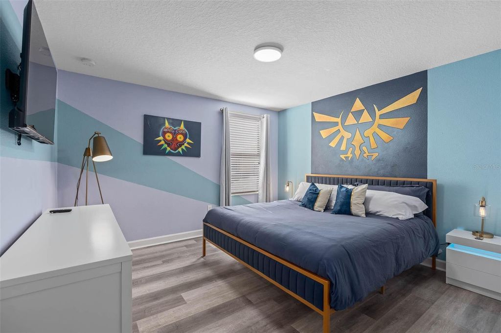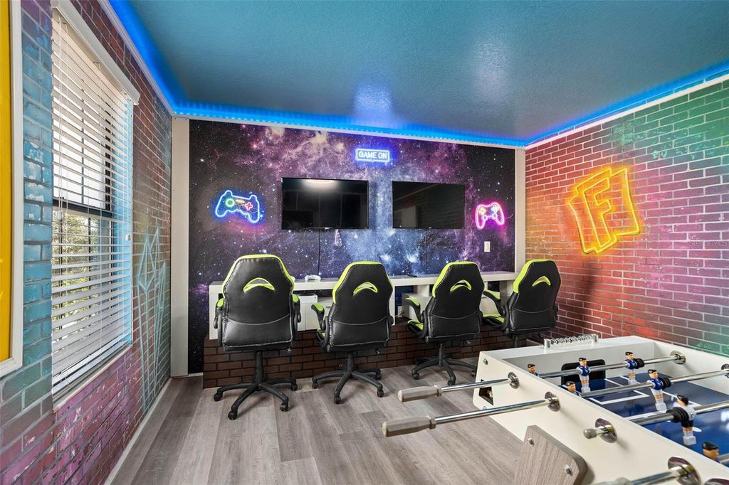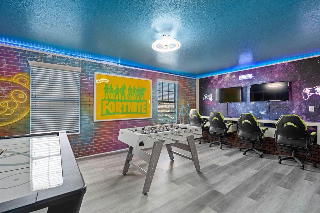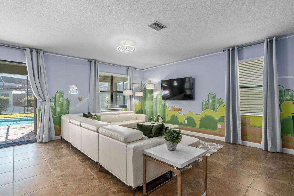 Step into a one-of-a-kind adventure in this fully customized 8-bedroom, 5-bathroom home located in the sought-after Champions Gate Resort. Designed to captivate guests of all ages, this property has an immersive experience with standout features like a custom-built Bowser’s Castle movie theater and creative bunk beds with built-in slides. Each bedroom is uniquely styled with vibrant character-inspired designs. The home includes 6 king beds, 3 twin beds, and 1 full bed, comfortably accommodating up to 16 guests. An oversized game room provides hours of entertainment with Xbox consoles, air hockey, and foosball. Outside, enjoy a private pool and spa””for relaxing after days of adventure. Champions Gate Resort has premium amenities including a clubhouse, resort-style pool, lazy river, fitness center, and more””all just minutes from Central Florida’s top attractions. This turnkey property presents a rare opportunity in a high-demand location with exceptional design and entertainment features throughout.