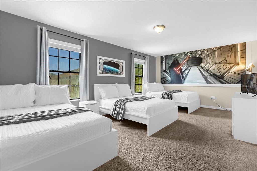 Welcome to this stunning fully furnished and beautifully decorated 9-bedroom, 5-bathroom vacation home in the sought-after Champions Gate Resort! Designed for comfort and entertainment, this home features an open floor plan, stainless steel appliances, and two bedrooms conveniently located on the first floor (one with a private en-suite). Upstairs you’ll find seven additional bedrooms””some with fun themed décor””and a second living room/TV area perfect for family movie nights. Step outside to enjoy your own private heated pool and spacious patio, ideal for relaxing after a day at the parks. Located in a gated community, this home offers access to world-class amenities. At The Oasis Club, residents and guests enjoy a huge resort-style pool, lazy river, two-story waterslide, splash zone, arcade, movie theater, fitness center, tennis & sand volleyball courts, plus on-site dining including a Tiki Bar, Grill Room Restaurant, and a convenient sundries shop. For even more fun, The Retreat Club features mini golf, water slides, splash pad, poolside loungers, and a resort pool. Golf enthusiasts will also love the ChampionsGate Country Club Golf Course nearby. This property is perfectly situated close to Orlando’s top attractions: just 9.6 miles to Disney, 12.9 miles to the Convention Center, 17.5 miles to SeaWorld, 21.3 miles to Universal Studios, and 26.6 miles to Legoland. Whether for personal use or as a high-demand short-term rental investment, this property offers the ultimate resort lifestyle in the heart of Central Florida!