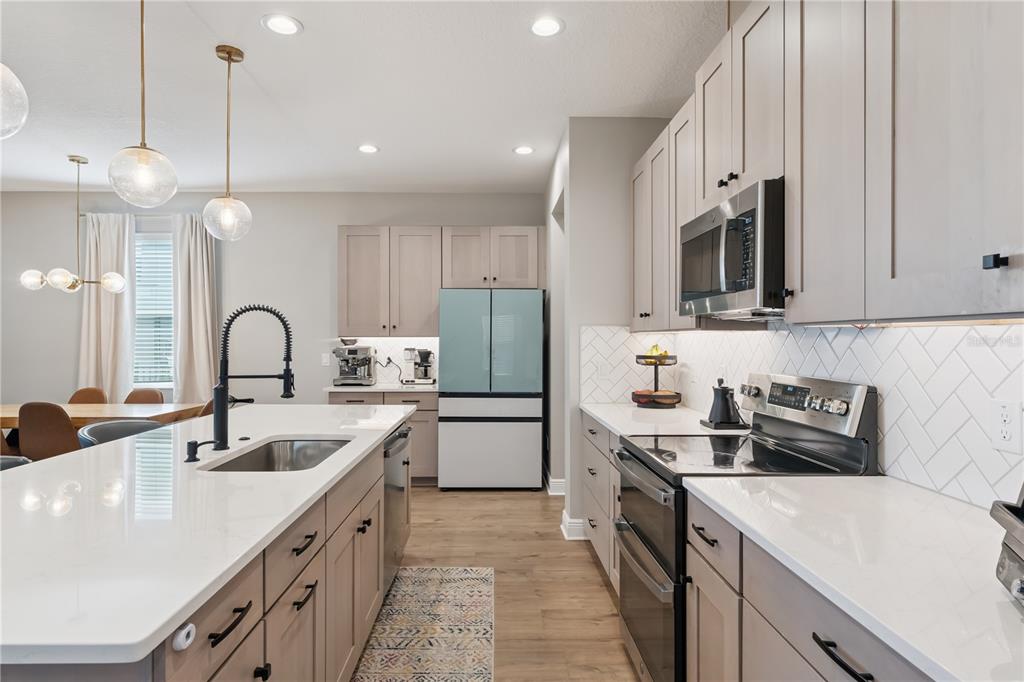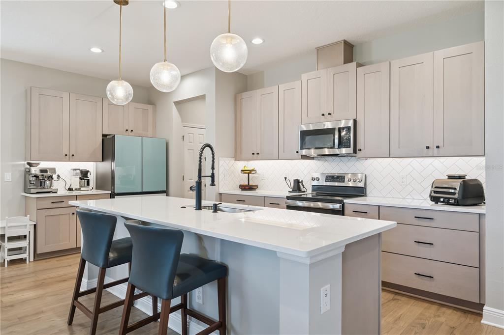 Offering nearly 3,000 square feet of living space, a three-car garage, four bedrooms, a spacious loft and multiple dedicated work from home options, this beautifully designed home delivers both flexibility and function in a peaceful setting with no rear neighbors. From the moment you step inside, the open floor plan creates an inviting and comfortable flow, with the kitchen positioned at the heart of the home. Designed for both everyday living and entertaining, it opens seamlessly to the dining area, expansive family room and out to the screened lanai, allowing indoor and outdoor spaces to blend effortlessly. The main level also features a private office, ideal for working from home or managing daily tasks in a quiet, separate space; it even includes mechanical blinds on the door. Upstairs, the versatility continues with a large secondary living area or loft that can easily serve as a media room, playroom, homeschooling space, or additional office. The primary suite is truly a retreat, offering not only a spacious bedroom but also an adjoining sitting area that is perfect for a home office, workout space, or creative studio. Three additional bedrooms upstairs provide ample room for family and guests, making this layout both practical and adaptable. Step outside to enjoy the screened lanai and fully fenced backyard, where the absence of rear neighbors creates a private and serene backdrop. With nature trails nearby, it is easy to enjoy the natural surroundings. Located in the highly desirable Ridgeview community, residents enjoy resort style amenities including a zero-entry swimming pool with splash zone and cabana, along with a shaded playground. Directly across the street from Lake Louisa State Park, this location offers unmatched access to hiking, biking, fishing, boating, camping and wildlife viewing, creating a lifestyle that blends everyday comfort with outdoor adventure. Convenient access to US 27, SR 429, and the Florida Turnpike allows for easy commuting to Orlando, Winter Garden, major employment centers and world class attractions such as Walt Disney World and Universal Studios. Nearby downtown Clermont offers waterfront dining, boutique shopping, community events and lakeside parks just minutes away. Zoned for top rated Lake County schools including Sawgrass Bay Elementary, Windy Hill Middle School, and East Ridge High School, this location checks every box. With the highly anticipated Olympus development coming soon, now is the perfect time to secure your place in one of Clermont’s fastest growing and most exciting areas.