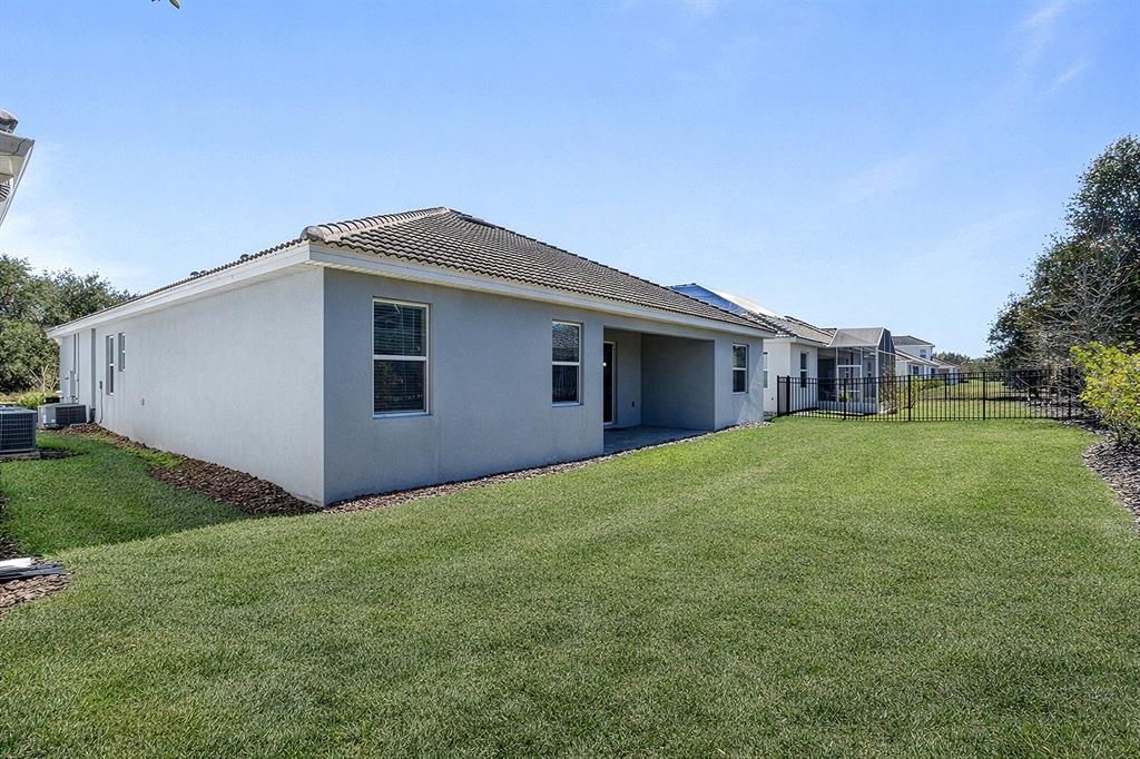 Step outside to a covered patio and backyard space with peaceful garden views—perfect for relaxing, outdoor dining, or enjoying the Florida weather year-round.