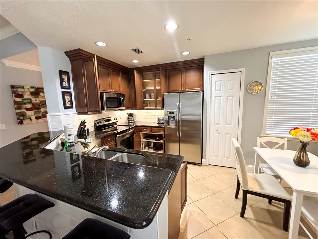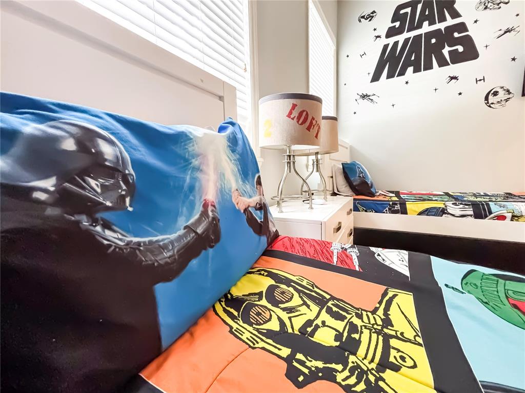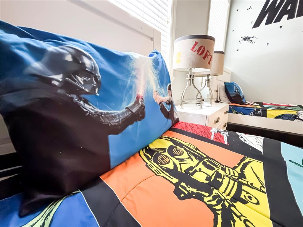 offers breathtaking views of the golf course and conservation area. Ideal as a primary residence, second home, or vacation rental investment, the unit features a wraparound terrace that fills the space with natural light. It is designed to the highest standards, with granite countertops, kitchen craft cabinets, and stainless steel appliances. The master bedroom boasts upgraded laminate flooring, a walk-in closet, a fixed wall safe, and a luxurious bathroom with dual washbasins. Additionally, the condo includes a detached garage and a unique Star Wars-themed room, perfect for fans of all ages. Enjoy exclusive access to 12 community pools, world-class golf courses, a multi-million-dollar waterpark, a lazy river, tennis courts, a spa, and a fitness center. Located in a gated community with 24-hour security, this condo is minutes from Walt Disney World theme parks, 30 minutes from Orlando International Airport, and close to SeaWorld and Universal Studios. Currently on short-term rentals.