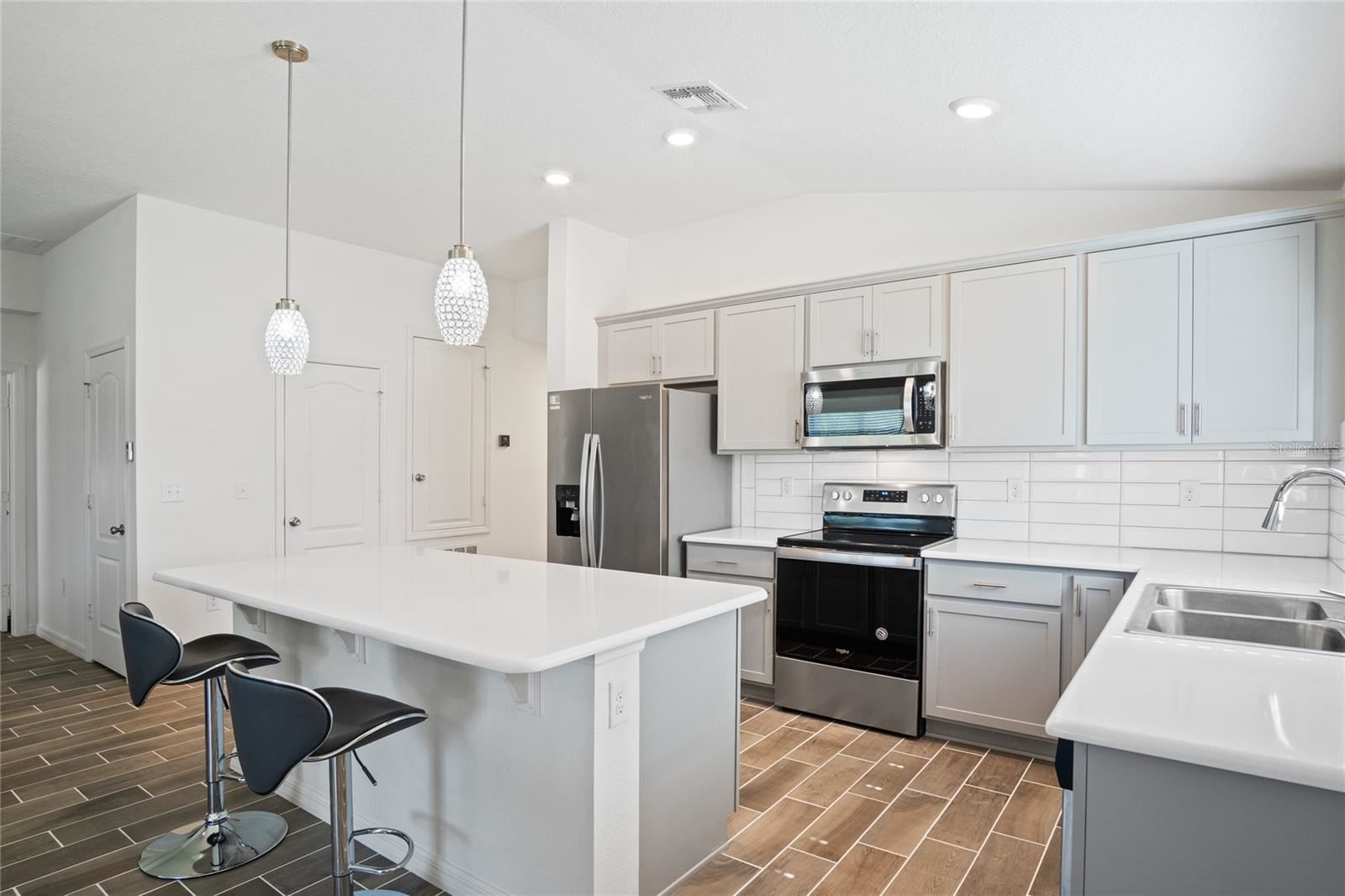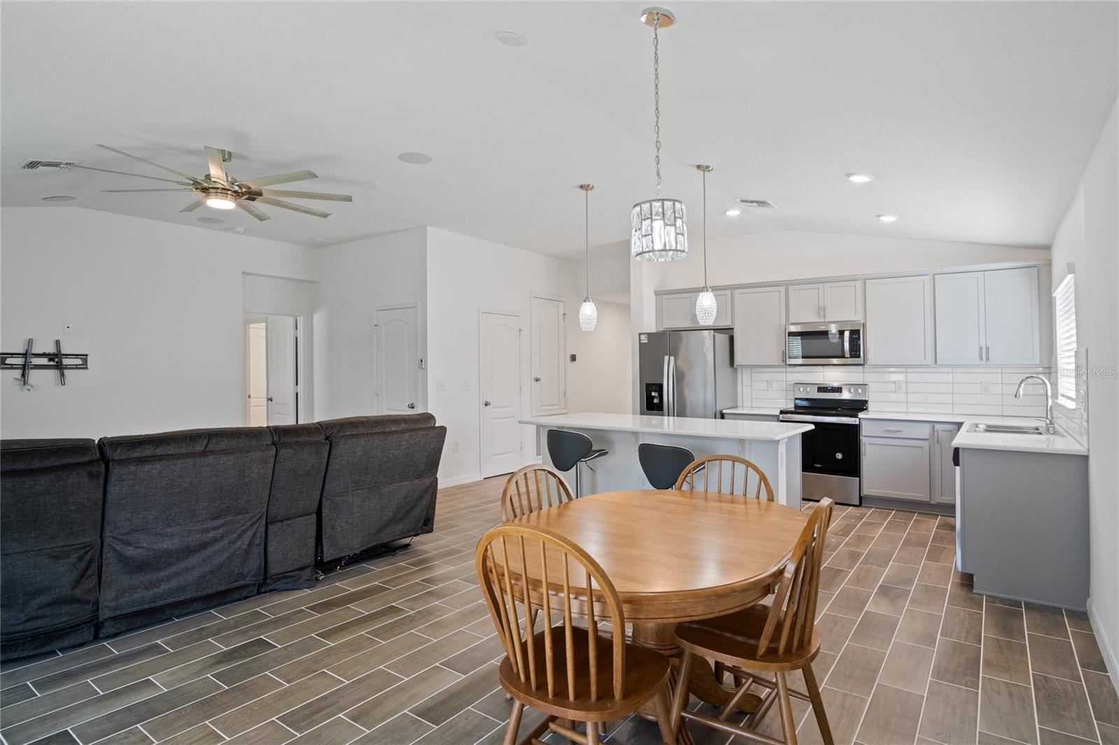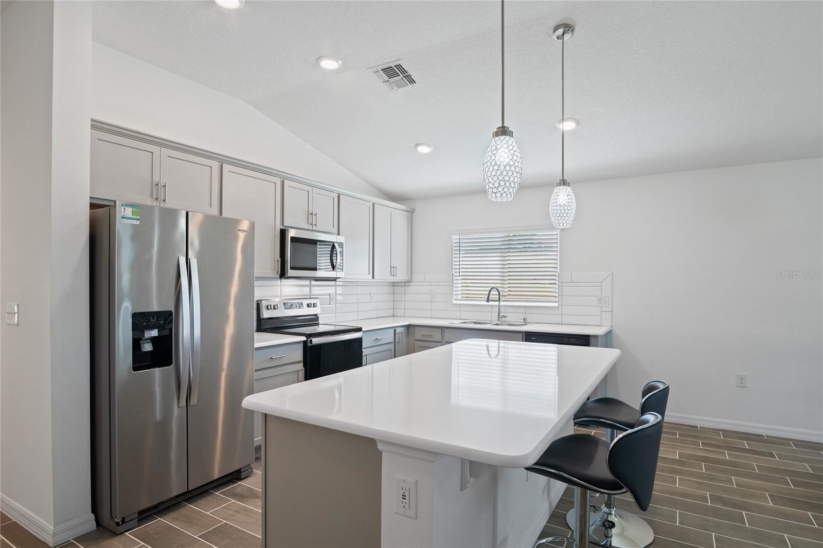 Welcome to your dream home in the sought-after community of Tivoli Reserve in Davenport, Florida! Situated on a fenced corner lot with serene pond frontage, this beautifully maintained 4-bedroom, 2-bathroom home offers the ideal combination of comfort, space, and convenience. Step inside and you’ll immediately appreciate the care and updates throughout “” including new wood plank tile flooring in the main living areas and plush carpet in the bedrooms. The spacious open floor plan seamlessly connects the kitchen, dining, and family room, making it perfect for entertaining or everyday living. The kitchen is a standout with quartz countertops, stainless steel appliances, and a large island with pendant lighting, all enhanced by recessed lights and natural sunlight. Just off the dining area, relax on the covered and screened patio, ideal for enjoying your morning coffee or unwinding at sunset with peaceful water views. The backyard is generously sized with room to add your private pool, and the vinyl fence makes it perfect for pets and play. Retreat to the primary suite, where a glitter-accented feature wall adds a touch of magic. The ensuite bathroom features a double vanity, a spacious shower with built-in seating, and a walk-in closet. The three-way split bedroom plan offers privacy for all, and each bedroom includes a ceiling fan for added comfort. Additional features include a guest bathroom with ample counter space and a tub/shower combo, and a stylish laundry room with a new washer and dryer that makes everyday chores feel like less of a task. Tivoli Reserve residents enjoy access to a community pool and playground, and you’ll love being just minutes from Central Florida’s world-famous attractions, shopping, dining, golf, and more. Whether you’re looking for a forever home or a vacation retreat, this property has it all “” location, lifestyle, and livability.