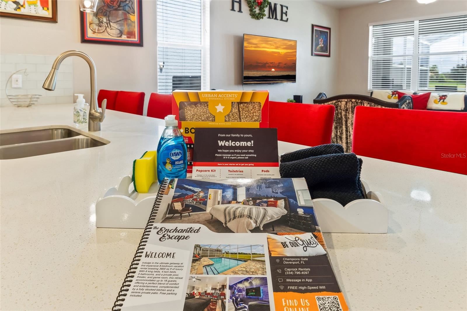 Escape to your own Enchanted Escape, a beautifully Disney, Harry Potter, and Marvel themed vacation rental located in the sought-after Champions Gate neighborhood of Davenport, Florida. This impressive 8-bedroom, 5-bathroom estate has been professionally designed by an interior decorator and features hand-painted murals by a professional artist making it the ultimate retreat for fun-seeking families and groups looking for an unforgettable vacation experience. Boasting a 5-Star rating on Airbnb and an Exceptional rating on Vrbo, this property comes with positive rental history, offering great potential for generating even more rentals with a dedicated investor. The property features 8 bedroom, 5 Bathrooms, sleeps 16 – thoughtfully designed for maximum comfort and convenience. Multiple professionally decorated and themed rooms featuring Disney’s Lion King, Frozen, Mickey Mouse and Minnie Mouse, 101 Dalmatians, Pirates of Caribbean, Aladdin, Marvel, Harry Potter, and Space themed décor with custom murals on walls and doors of all rooms. Private theater room with theater projection screen and professional surround sound. Arcade & game room for endless family fun. Chef’s kitchen with high-end appliances, private ice machine, and expansive prep space. Indoor/outdoor living with spacious family room opening to a screened lanai and pool. Fully furnished with all items thoughtfully selected to enhance guest comfort. Investment highlights include rental history with excellent reviews. Actively managed across Airbnb, Vrbo, private website, and social media platform and all will transfer to new owners. Offered turnkey and fully furnished, ready to generate income from day one. Rare opportunity to own a themed home in one of Central Florida’s top 5% short-term rental on Airbnb. Champions Gate Lifestyle highlights. Located just minutes from Walt Disney World, Universal Studios, and Orlando attractions, Champions Gate offers guests world-class amenities: The Oasis Club at Champions Gate with lazy river, water slides, tiki bar, and fitness center. Two Greg Norman-designed golf courses. Resort-style dining, shopping, and entertainment within the community. The opportunity is now. Whether you’re looking to expand your portfolio with an amazing vacation rental or acquire a second home that pays for itself, Enchanted Escape delivers the magic. This is more than a home””it’s a destination where guests create lifelong memories while you benefit from a performing investment. Call today to schedule your private showing of Enchanted Escape and experience the magic for yourself. All items updated in 2022: Pool Heater, Florida Glass installed on pool deck (you can see out but no one can see in), all new furniture, new paint and décor throughout, TV Living Room, washer and dryer, murals, new carpet fans, new high-end mattress and box springs, appliances, dishwasher replaced (2024), game room designed, pool furniture, theater completely redesigned and entrance to theater. All items as you see it stay with the home.