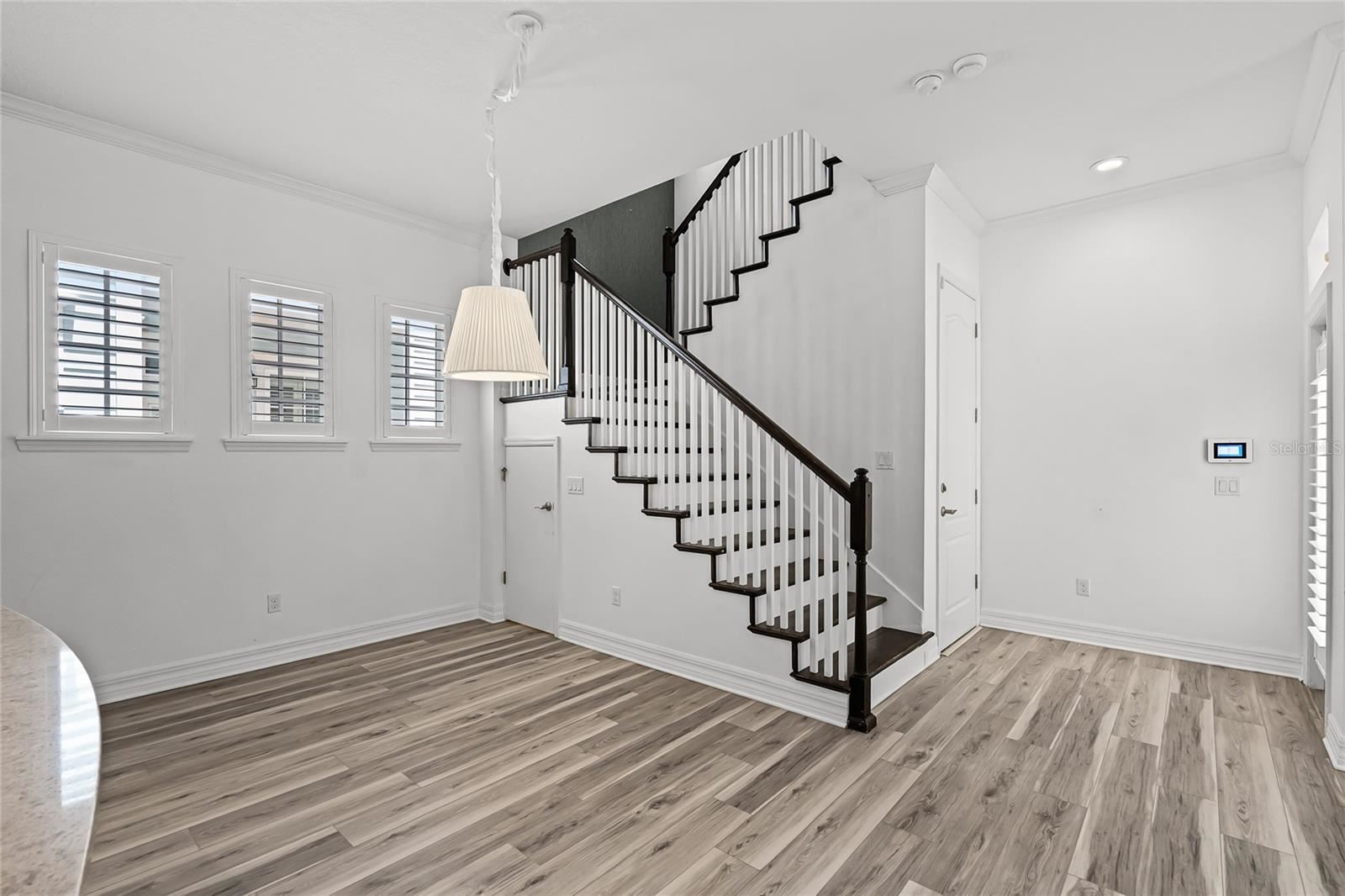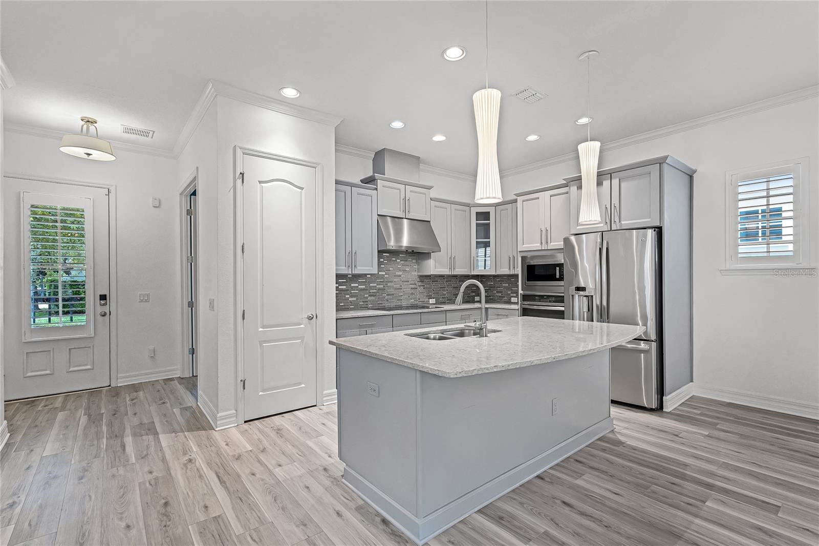 Enjoy the Celebration lifestyle in this beautiful 3-bedroom, 2.5-bath “Cardelle” home, perfectly situated in the sought-after Spring Lake neighborhood. Known for its charming tree-lined streets, scenic trails, and lake and conservation views, Spring Lake offers a walkable lifestyle with easy access to all of Celebration’s amenities. Step inside and you’ll be greeted by 10-foot ceilings and gorgeous floors that flow from front to back. The first floor showcases crown molding, plantation shutters, upgraded lighting and mirrors, designer powder room wallpaper, ceiling fans, and a stunning wood staircase. The kitchen features GE appliances and adjoins the dining and living spaces for seamless entertaining. An attached two-car garage and a beautifully landscaped, paved backyard complete the main level. Upstairs, the master retreat offers a peaceful haven with tray ceilings, double crown molding, a separate sitting area, luxurious bath with soaking tub and separate shower, double-sink vanity, and a spacious walk-in closet. A relaxing loft separates the master suite from two additional bedrooms and a shared bath. The second floor also includes a convenient laundry room. This home is equipped with energy-saving features including double-pane windows, full alarm system, 14 SEER HVAC, and a in-wall pest system. Living in Celebration means access to multiple community pools, numerous parks and playgrounds, and over 26 miles of walking and biking trails. This master-planned community, originally developed by The Walt Disney Company, offers a vibrant town center with dining, shopping, seasonal events, and easy access to Orlando’s world-famous attractions, top-rated schools, and major highways.