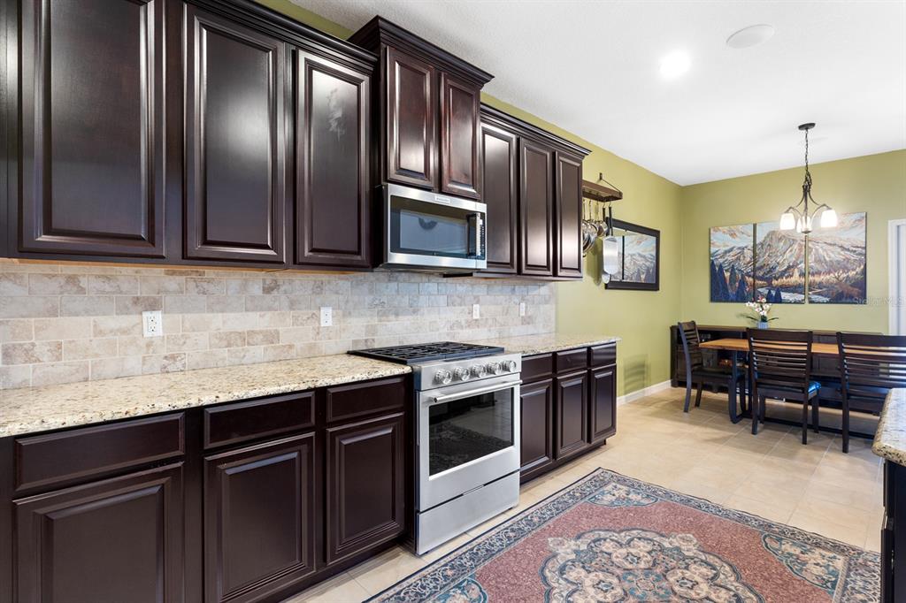 Carriage Pointe Reserve Beautiful private GATED COMMUNITY** MANY UPGRADES & AUTOMATION in this High Tech home ** 3 car garage w NEW mini split AC ** Fantastic expansive covered patio with NEW OUTDOOR KITCHEN JUNE 2025 w lovely stonework & stone counters, grill and there’s even a full pool bath with full shower accessible right off the lanai ** FIRST FLOOR primary bedroom with plush upgraded carpeting, automated shade and spectacular ensuite primary bath ** Ensuite primary bath has a roman tub and wall length shower, dual vanities and walk in closet offering NEW custom built in drawers and shelving and 2nd walk in closet with NEW custom shelving ** Dramatic 2 story foyer ** Office/Den featuring french doors, upgraded new carpeting and pad, NEW Window World window, automated shade and there’s even a separate NEW mini-split AC ** Across from the den/office is the formal dining room with tray ceiling ** The kitchen features espresso cabinets, stone counters, NEW under kitchen cabinet lighting – app controlled, a large island and butlers pantry ** NEW Kitchenaid refrig, NEW gas remote controlled slide in range stove with convection oven, dishwasher and microwave incl ** The great room offers expansive sliding doors leading to the lovely covered screened patio area with permanent screen & NEW Outdoor kit 6/2025 ** Full bath off screened patio perfect for a pool bath set up if you decide to add a pool ** NEW FEATURES incl dimmers on all switches – app controlled, custom entire home automation system for blinds and lights and including 3 pads, an Ecobee thermostat, incandescent lightbulbs throughout, add’l CAT6/coax drops, places for touchscreen home controllers** Gas hot water heater & gas dryer ** Double pane windows, ceramic tile on the first flr in main rooms & baths & mostly every room has flush mount ceiling speakers ** Laundry room with front load washer and dryer incl as-is and stub out for a sink ** All rm measurements are approx. Buyer to verify ** THESE ITEMS CONVEY: Ubiquity system that runs the internet, rack in the electronic rm, access points upstairs in the ceiling with wifi, 3 whole home automation pads and 4 speakers used to turn on the automation pads) – Den/office, master primary bdrm has Home Assist, Samsung in the bonus room and the NON-metal garage shelves. NOT CONVEYING: Garage speakers, pizza oven on outdoor kitchen & garage metal shelves, wine refrigerators in laundry rm.