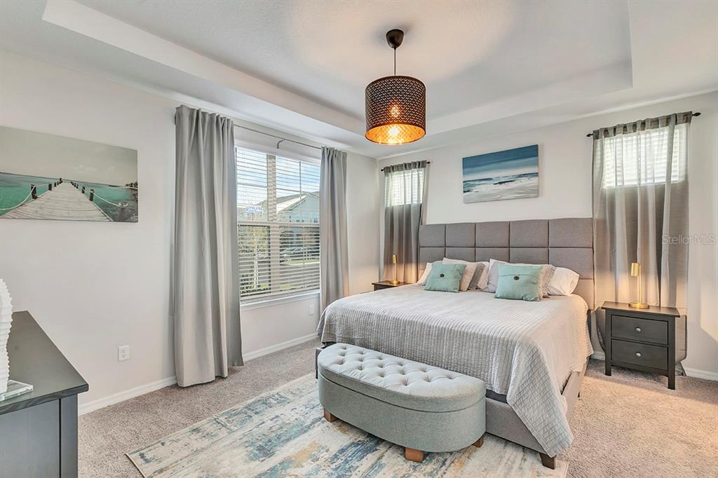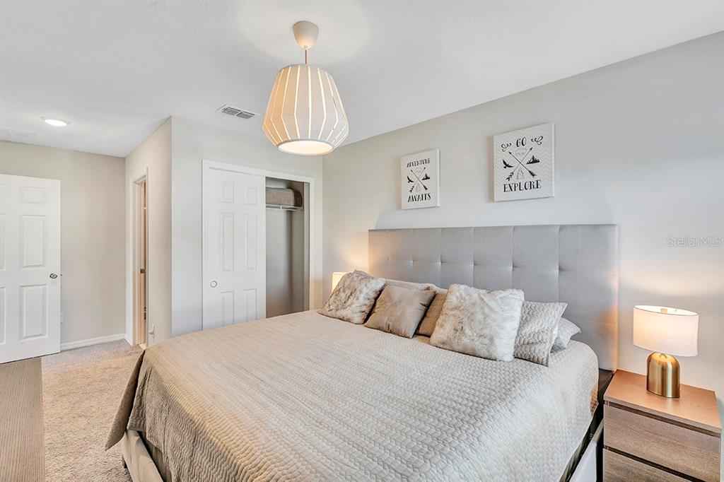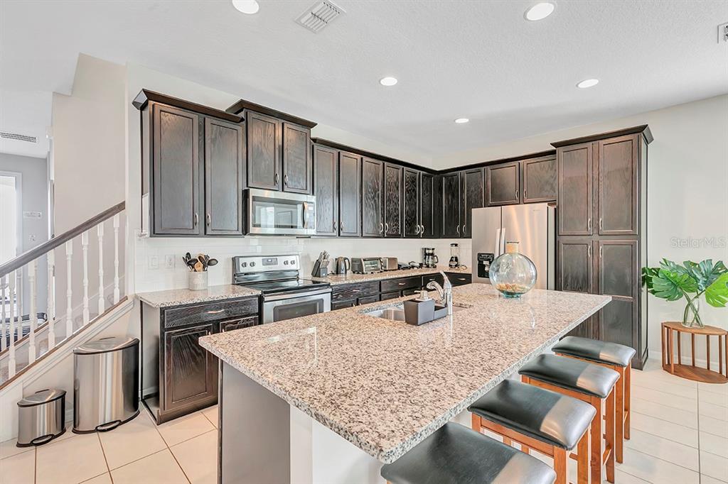 Fully Furnished 5BR/5BA Townhome in Gated Solara Resort. Spacious and Modern, this is a 5-bedroom, 4,5 bathroom open-concept living and dining area with a fully equipped kitchen and stainless steel appliances. Private screened-in patio for relaxing or entertaining, in-unit washer & dryer, smart TVs, high-speed Wi-Fi. Three bedrooms have king-size bed,s and the other 2 have 2 twins. The Solara Resort offers several amenities: heated resort-style pool, splash pad & private cabanas, Surf simulator (FlowRider), gym & fitness lawn, Basketball, soccer & sand volleyball courts, On-site restaurant, coffee bar, and sundries shop, Game room, teen lounge, and playground, 24/7 manned security gate for peace of mind. Perfect for living or investing as a vacation airbnb rental. Both allowed for phase 1 construction. Lastly, this unit is few minutes from the clubhouse.